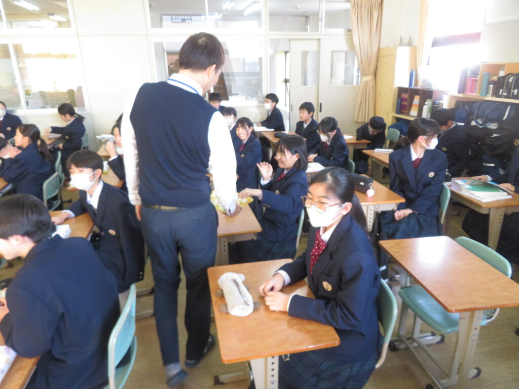 他学年の動きについて、J2のLHRでは、2月4日(水)に実施する「立志式」に向けて着々と準備中でした。保護者の皆様には楽しみに当日をお待ちいただきたいと思います。また、J3では多目的ホールにおいて2月11日(水)から始まる修学旅行の説明がありました。楽しく充実した修学旅行にするためにも、2月3日(火)から始まる最後の定期テストで有終の美を飾ってもらいたいと思います。