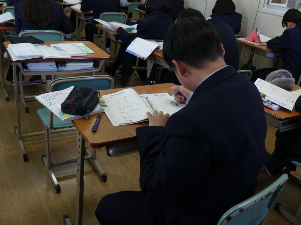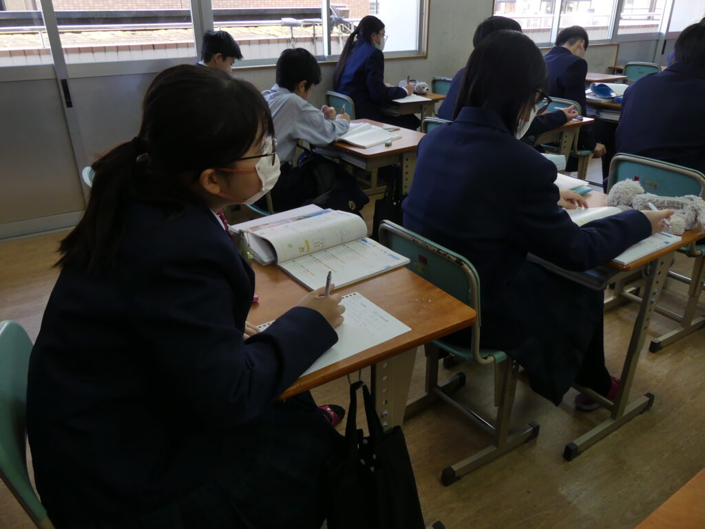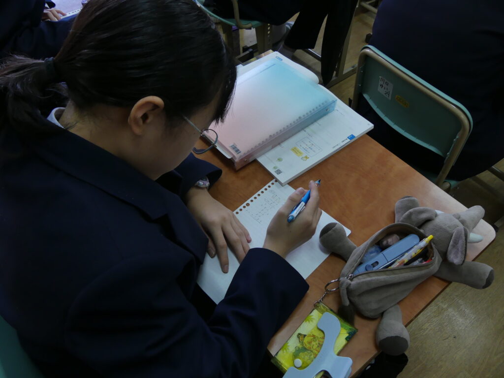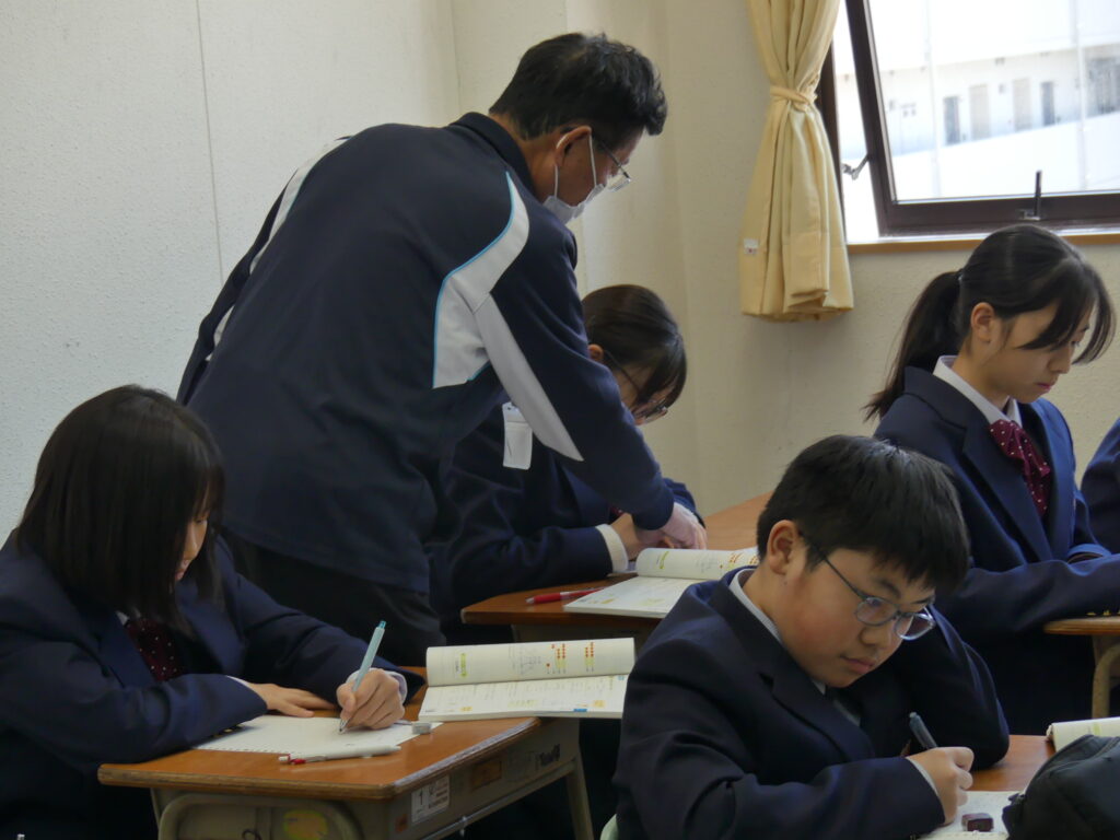 授業の前半では問題を解くのに時間がかかる生徒や、答えを間違えてしまい首をかしげる生徒もいましたが、先生方の丁寧な解説やクラスメイトが率先してアドバイスする姿もあり、苦戦していた生徒もどんどん問題を解けるようになっていました。先生に聞く前にまずは友達同士で確認しあう姿も印象的でした。