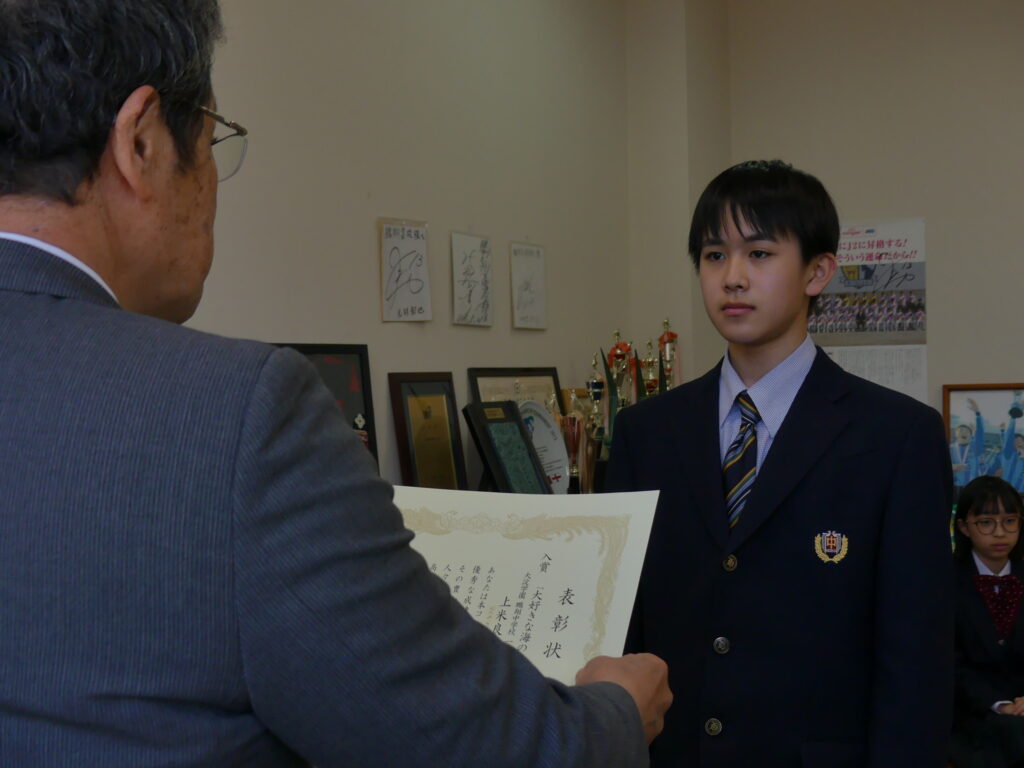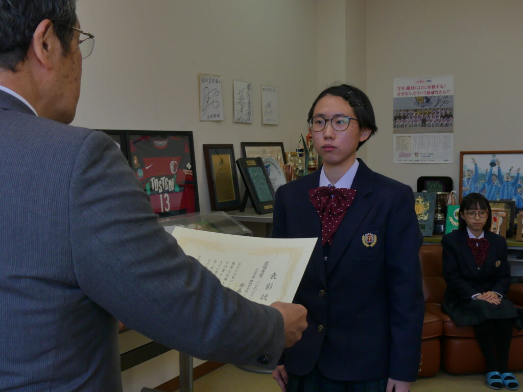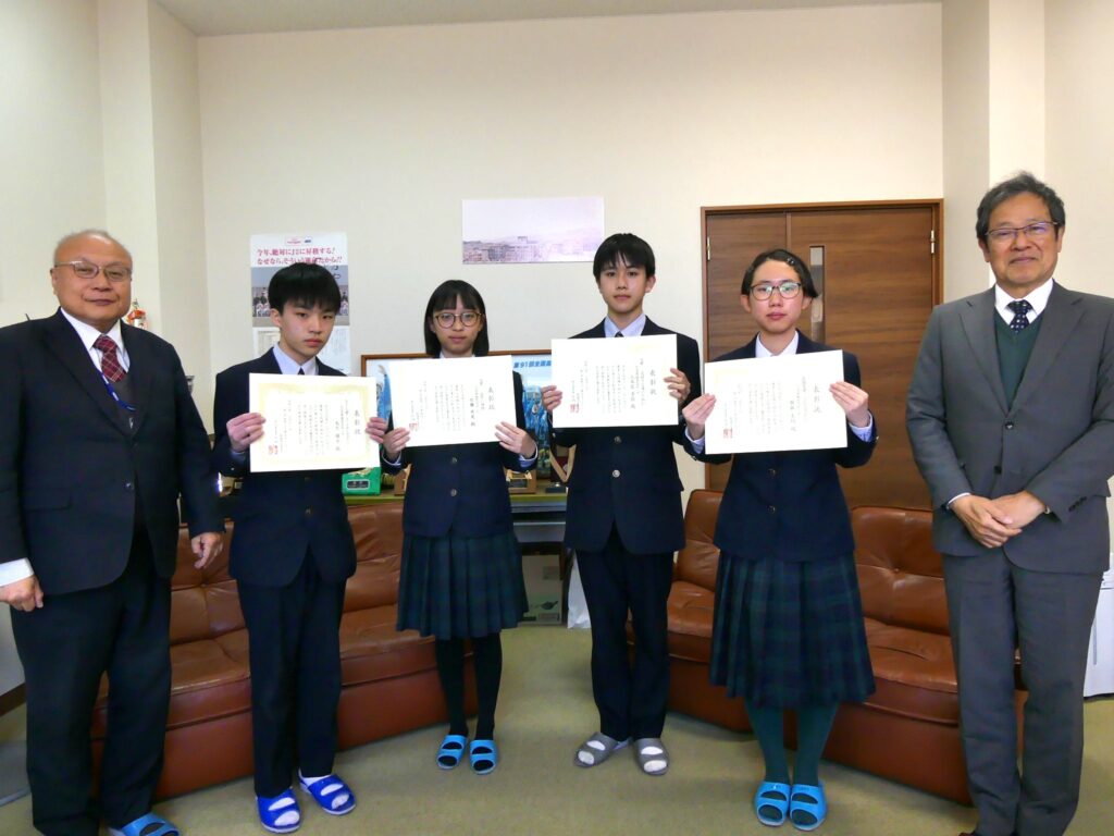 第2回地球さんご賞都城 作文コンクールにおいて、本校生徒が見事受賞し、表彰されました!!