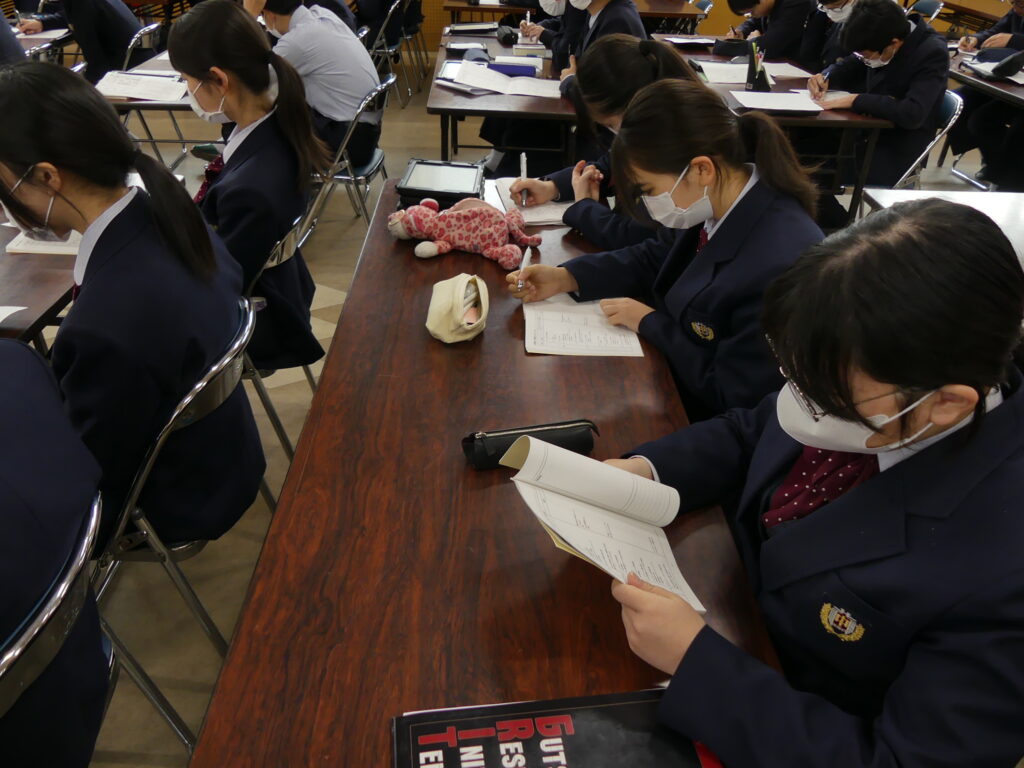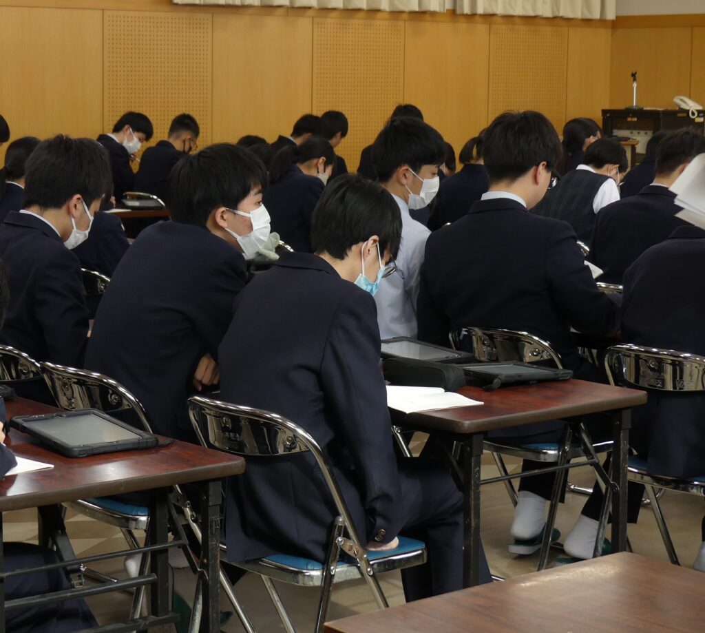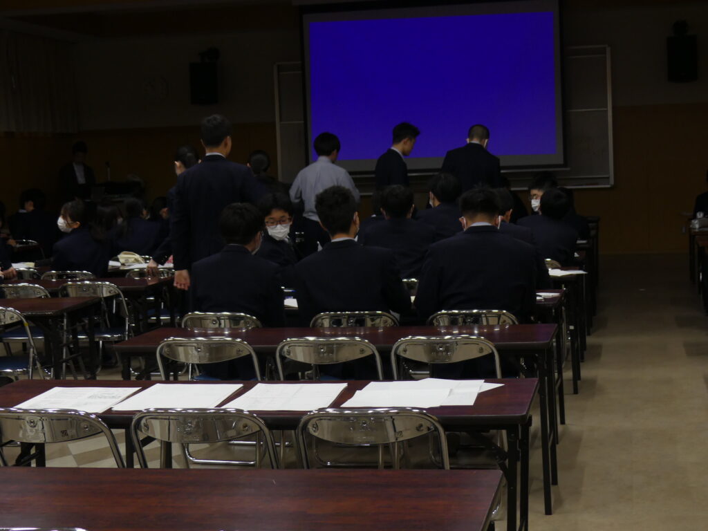 今日は2月11日から修学旅行に行く3年生たちの事前確認・指導がありました。