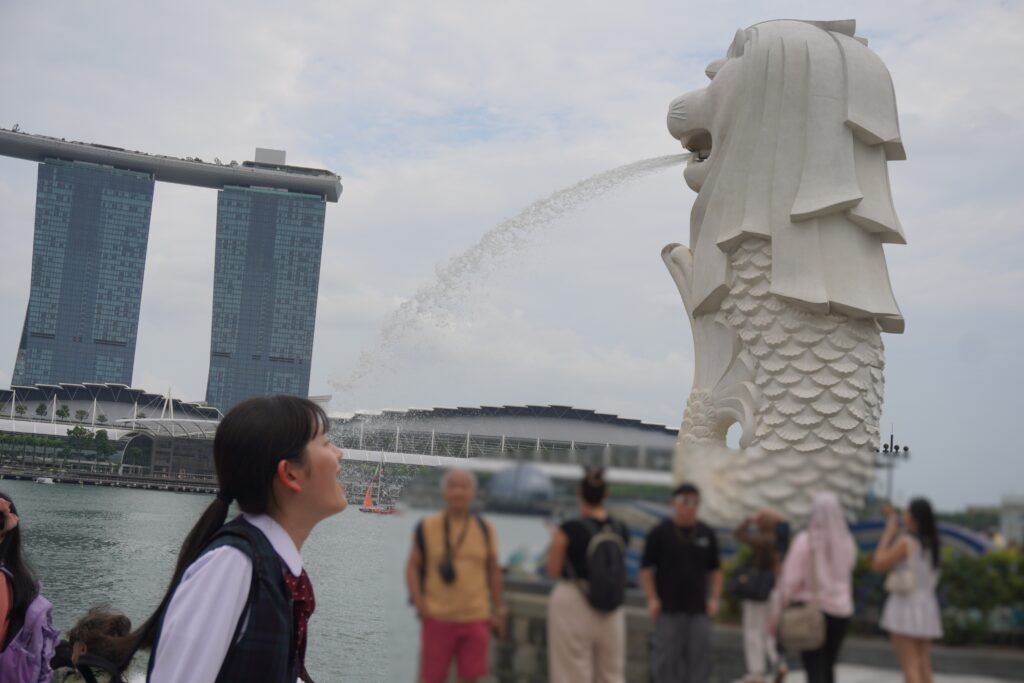 地下鉄を乗り継ぎ、マーライオン公園に到着