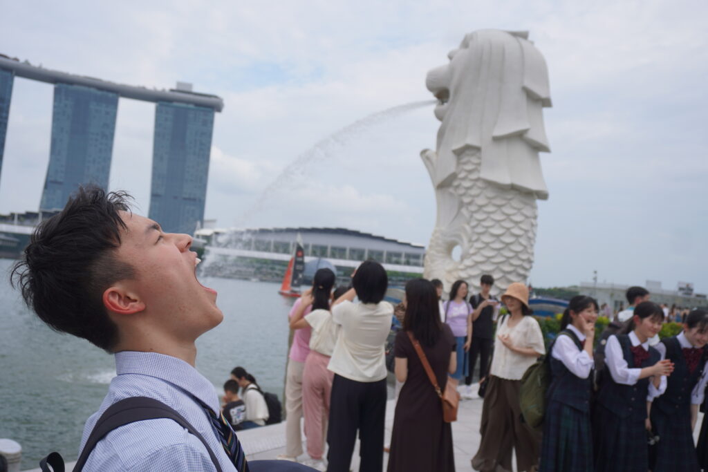 チャンギ空港に離陸し、シンガポールに入国!!地下鉄に乗りマーライオン公園へと向かいます。