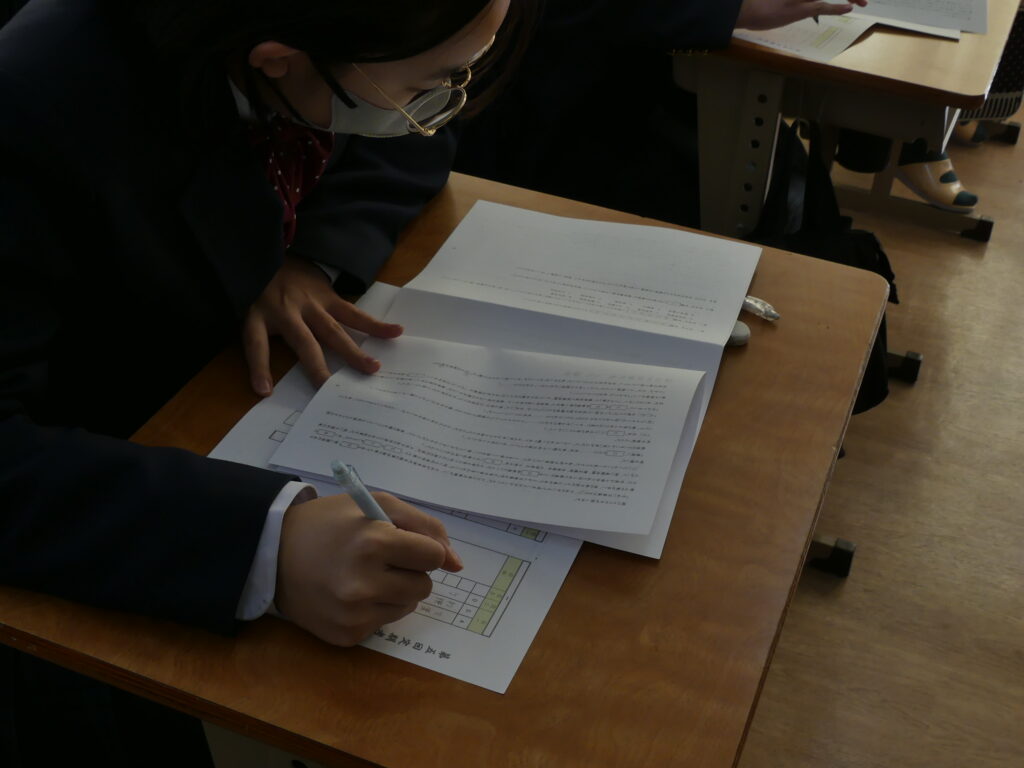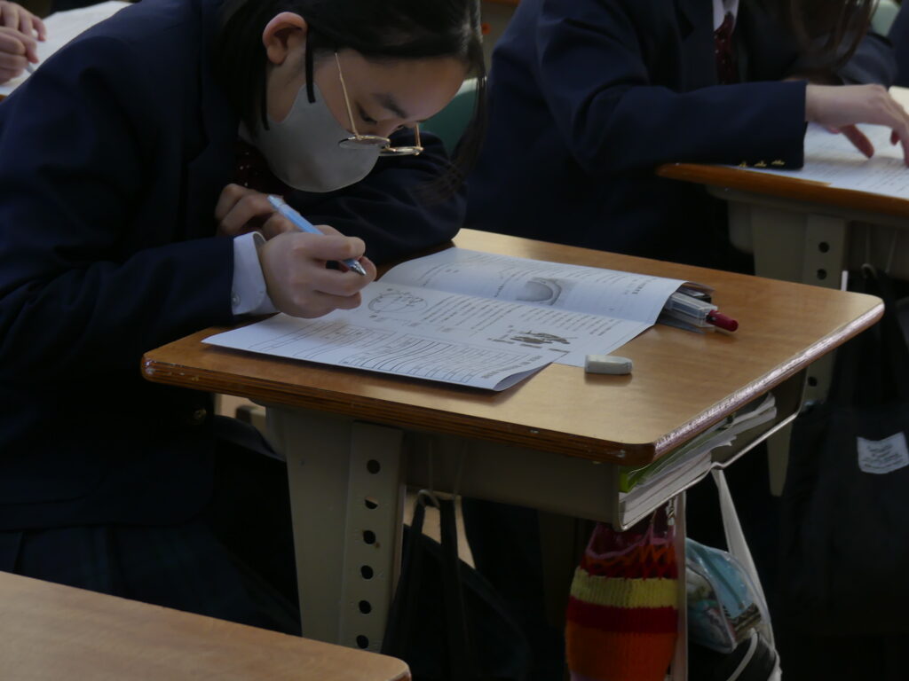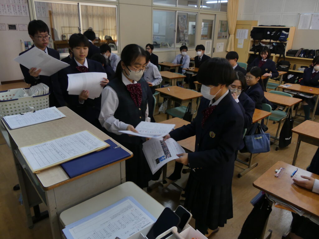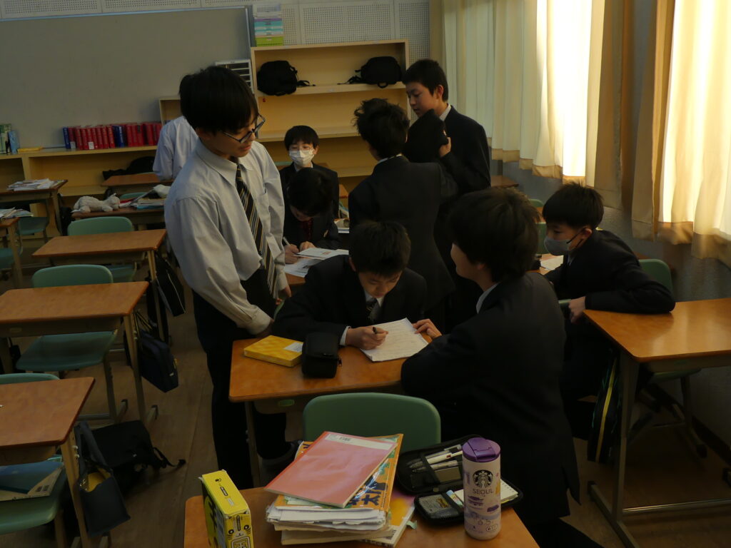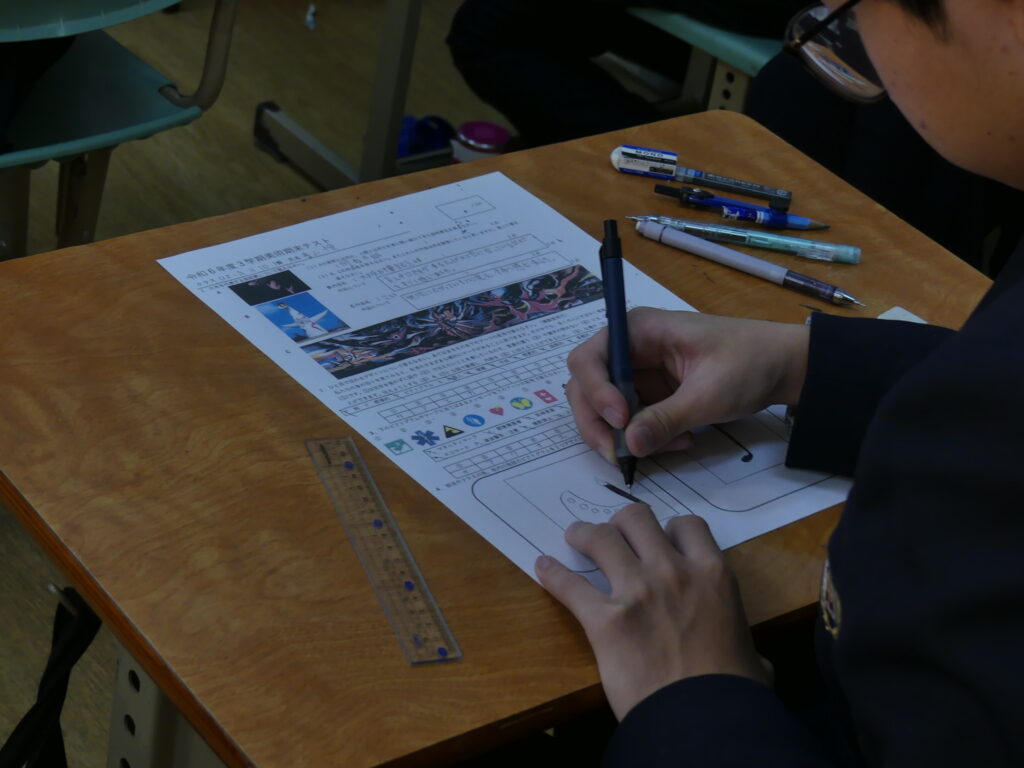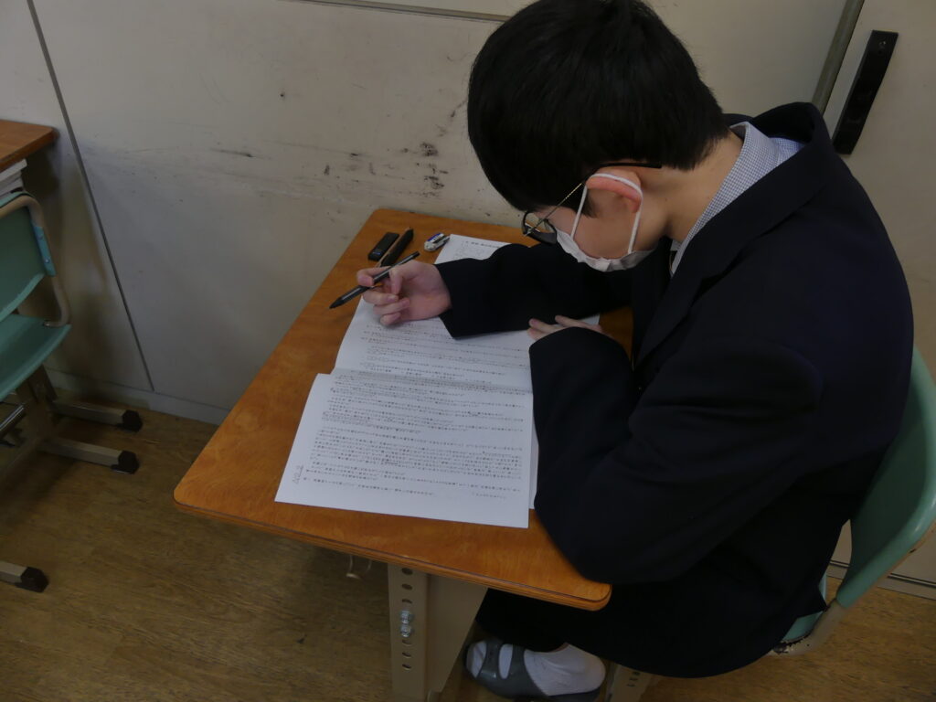 J1生、J2生は本日から2/18(水)まで第5回定期考査です。(今、オーストラリアに修学旅行に行っているJ3生は2/24(火)から)初日の今日はJ1生、J2生ともに国語、美術、理科が行われました。早朝から登校してノートを見直したり、友達と確認し合ったりする姿が見られました。