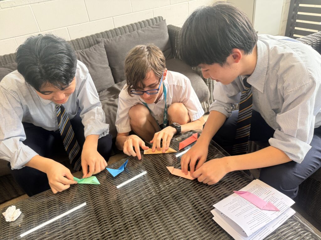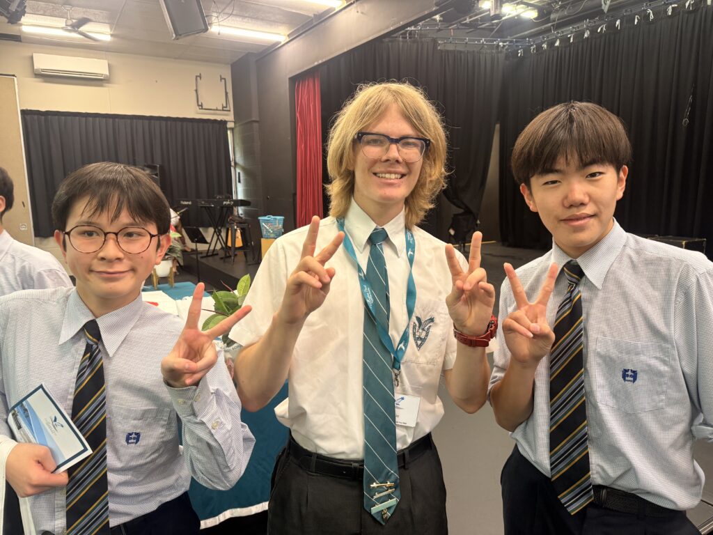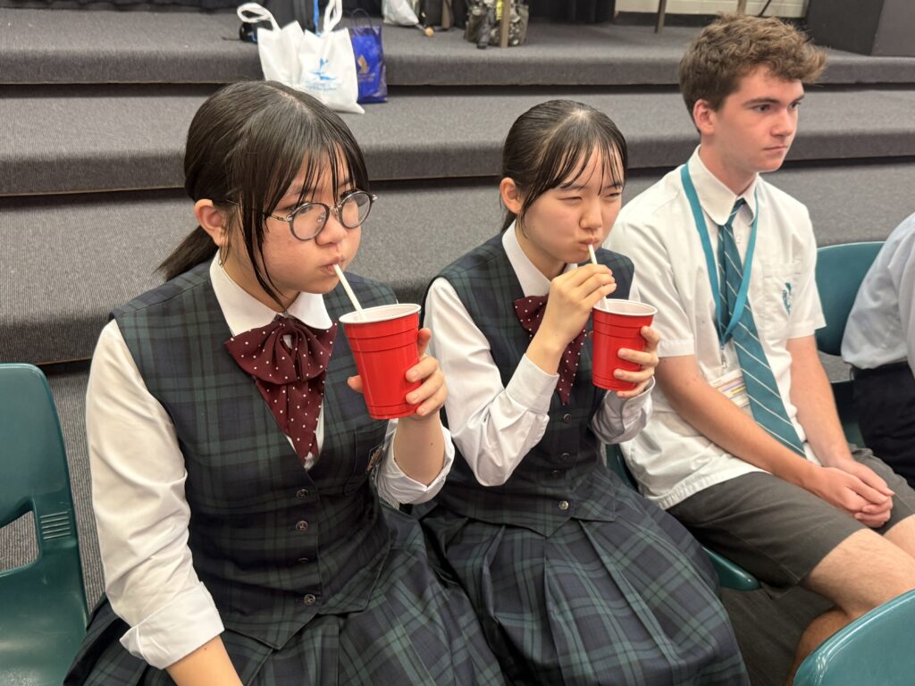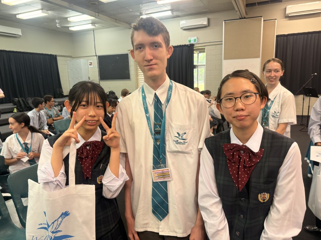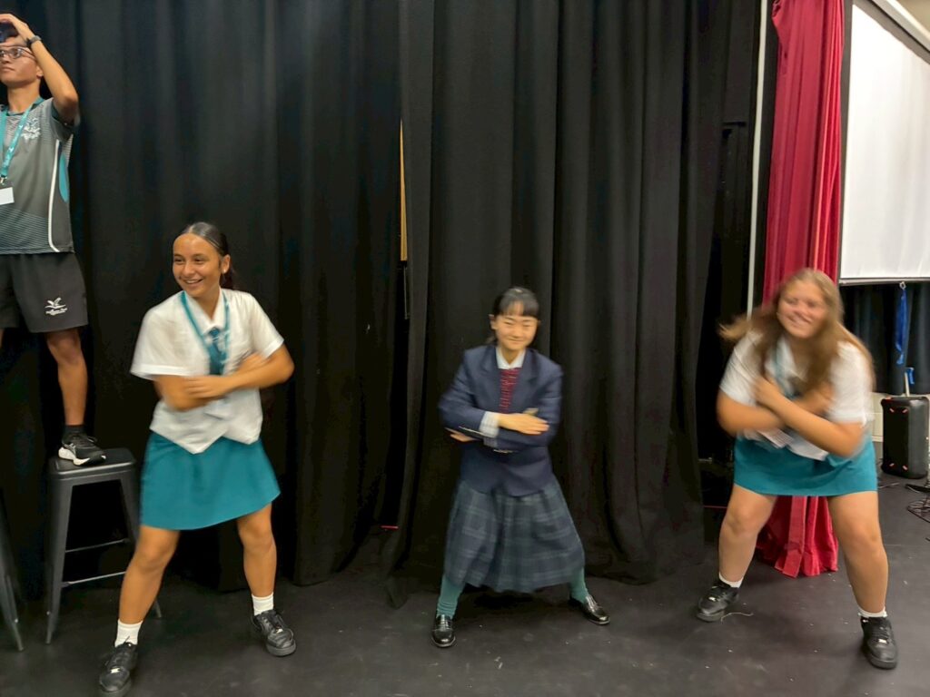 まずはWelcome Ceremonyがあり、本校生徒を代表して黒木ゆき乃さん(都農南小出身)が挨拶を行いました。その後、J3Aの生徒全員で「ソーラン節」を披露しました。