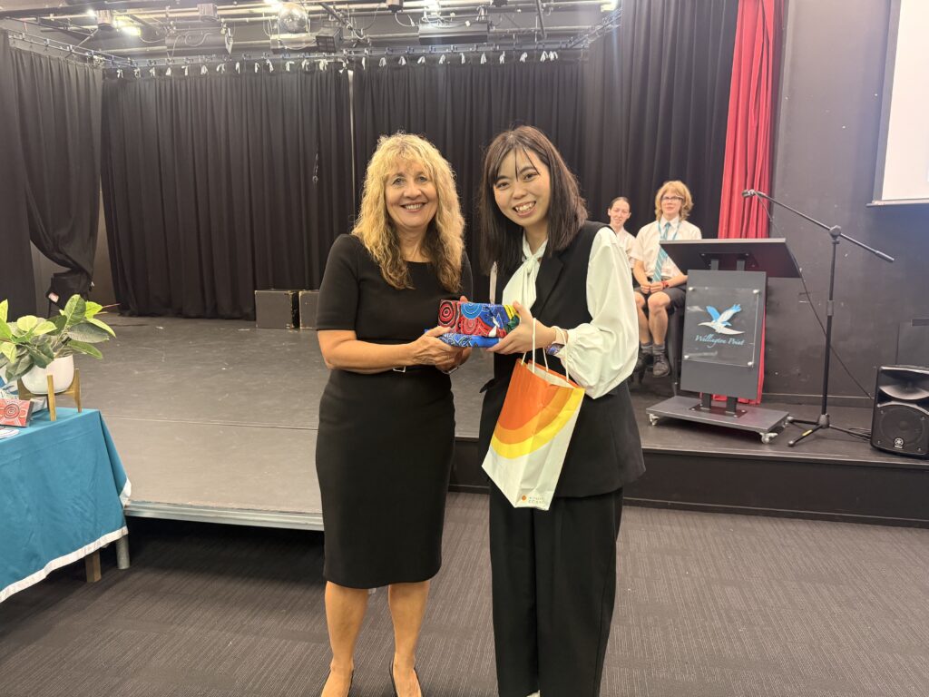 交流をしたWellington Point State High SchoolのMrs Deanne Wallwork教頭先生から鵬翔中学校にギフトをいただきました!