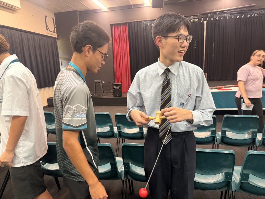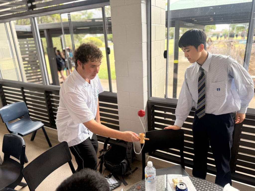 授業後は昼食を一緒に食べ、日本から持ってきたけん玉や折り紙、あやとりをして楽しんでいました。