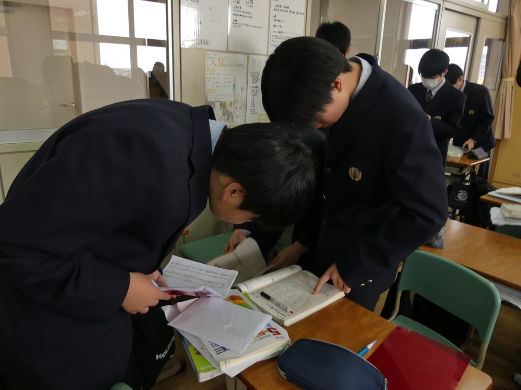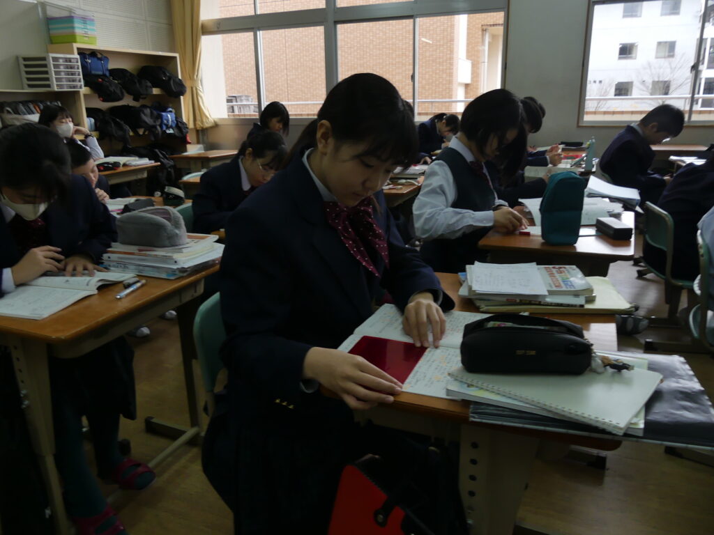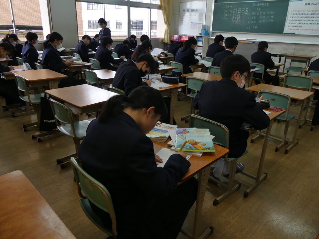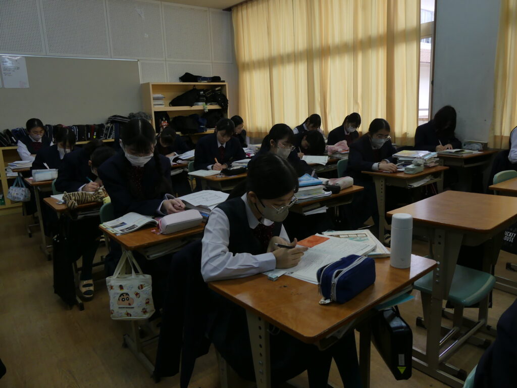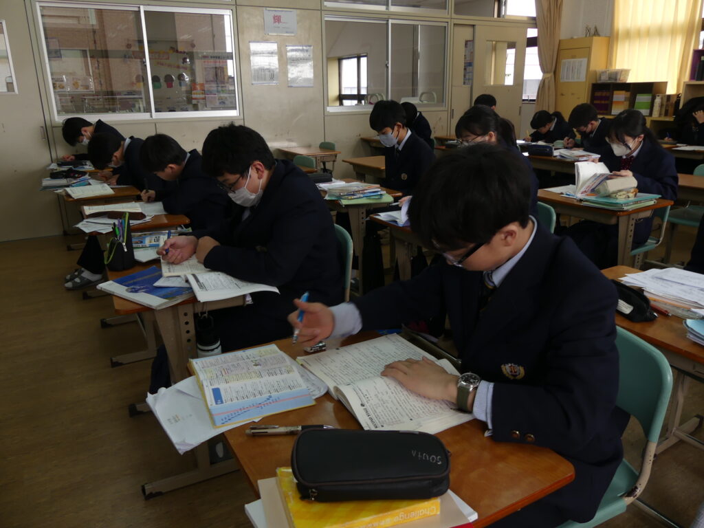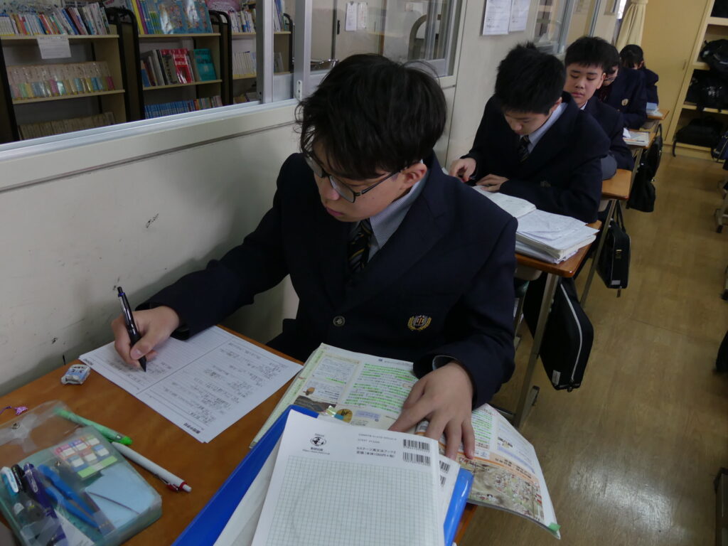 定期考査3日目です。3日目は体力的、精神的に一番大変な時ではないかと思います。今日の時間割は1限目自学、2限目英語、3限目音楽、4限目社会、5.6限自学です。1.5.6限の自学の様子を見てみました。