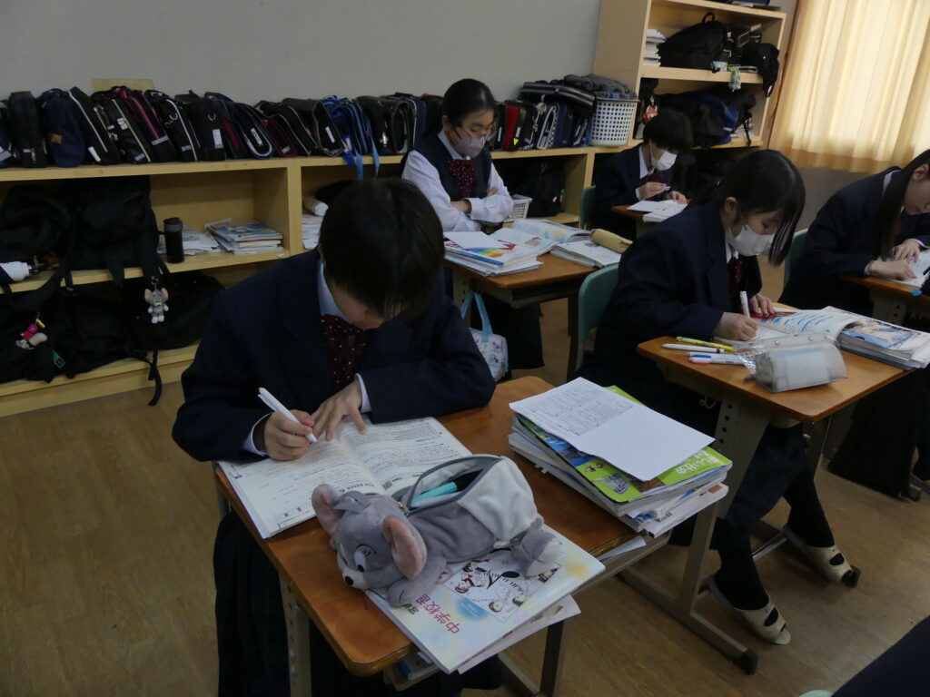 自学の時間をしっかりと使い、1問でも多く解けるように集中力と緊張感をもって勉強していました。休み時間になると、お友達同士で最終確認や、自分でもう一度確認したりとテストにむけて頑張っていました。