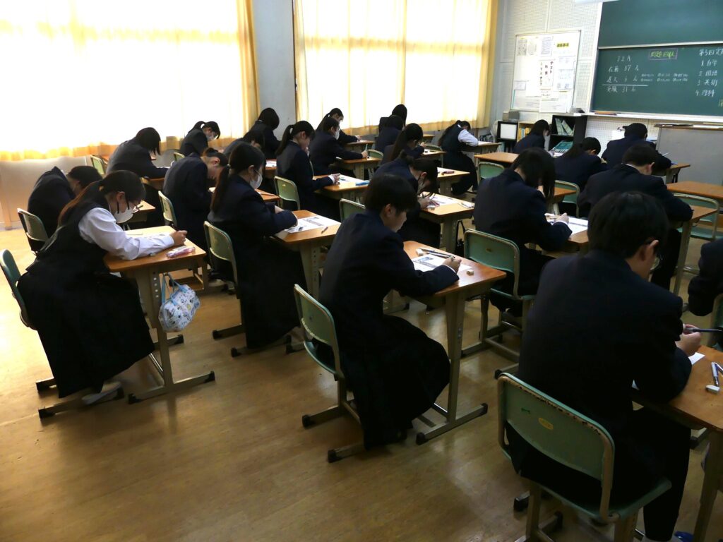今日は第5回定期考査の4日目、最終日でした。J1、J2ともに「保健体育」「技術家庭」「数学②」のテストを受験しましたが、一部の未受験の生徒は、明日以降に追試験が実施される予定です。明日からは朝課外、授業、部活動と、通常の学校生活が再開されます。インフルエンザが本校でも流行していますので、引き続き体調管理に留意して、明日元気に登校してほしいと思います。