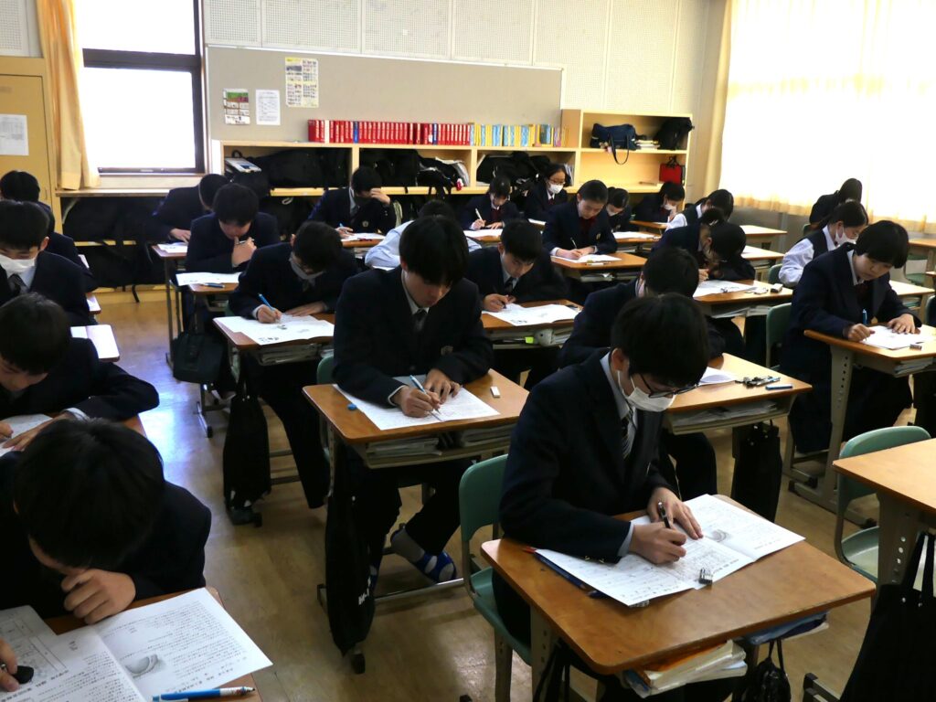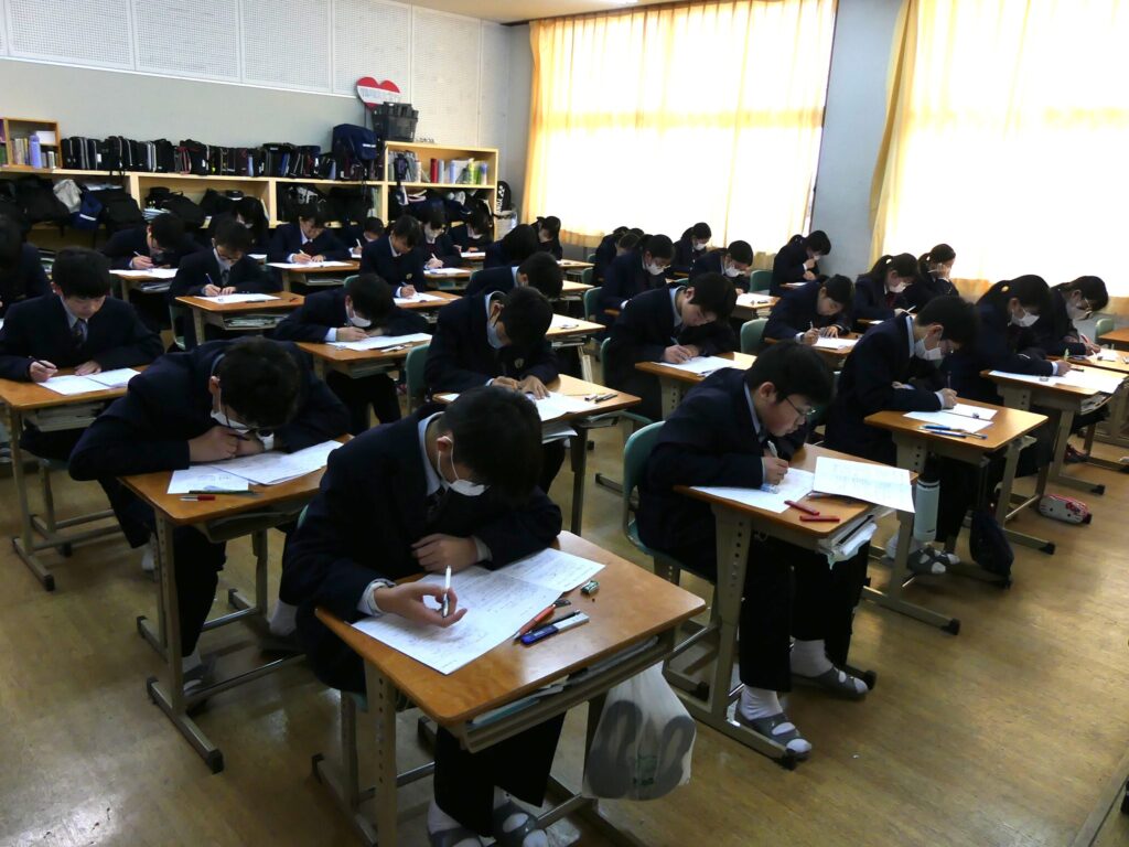 最後に、今回の第5回定期考査期間中の各教室の様子をダイジェストでまとめました。生徒たちの真摯な態度が伝わってきます。今夜はしっかり休養をとって、明日の授業に向けて準備するとともに、第3回英検を受けた生徒の皆さんは2次試験に向けて準備を始めてください。