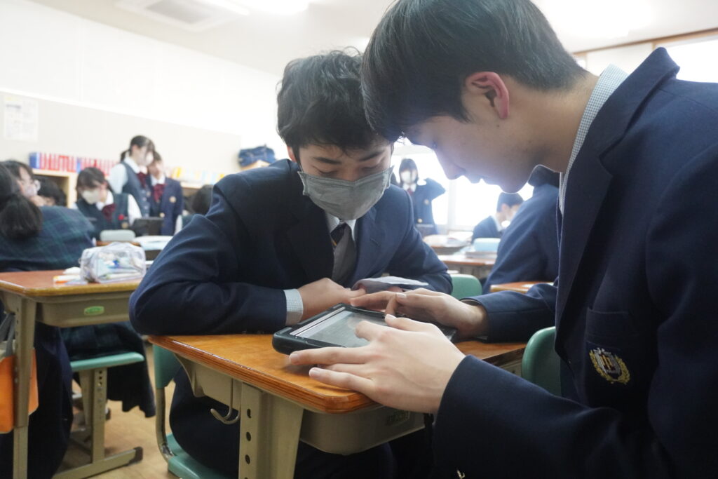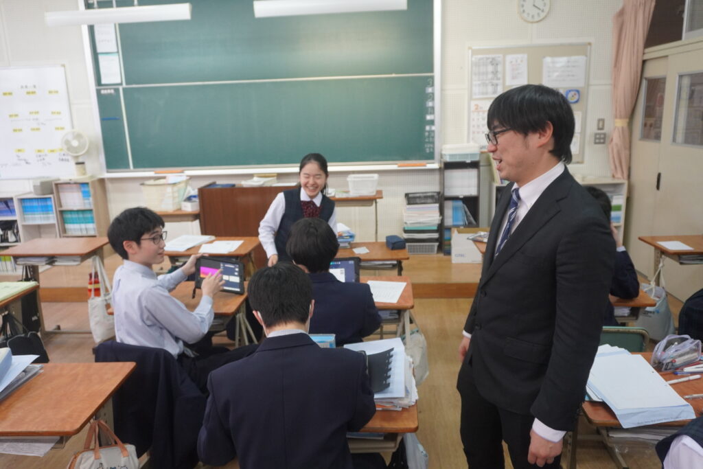 本日7限目、J2-Bは井料田先生の理科の授業でした。グループごとに、生徒たちが授業をするようです!!自分たちで選んだ分野を、生徒たちに授業をするために、スライドや資料作成を行っていました。 井料田先生からアドバイスをもらいながら試行錯誤する姿が見られました。