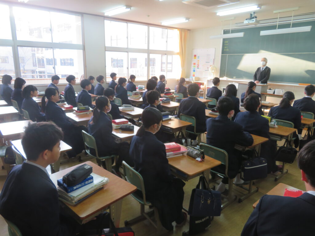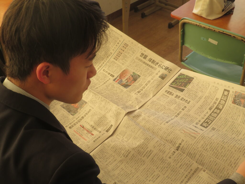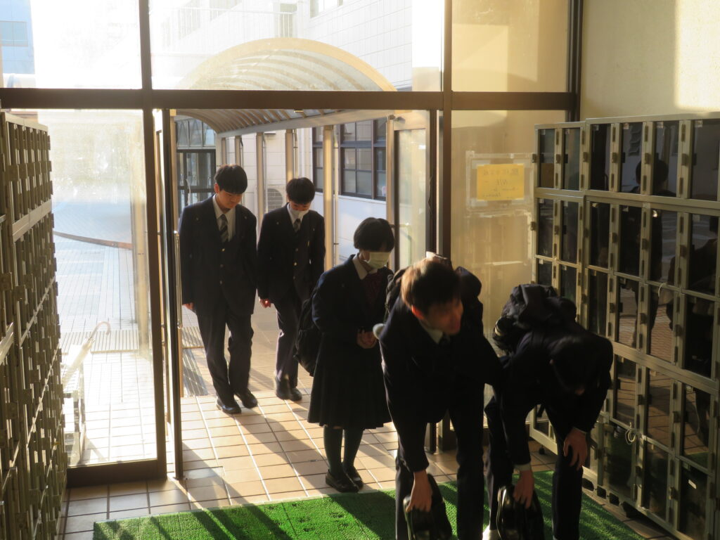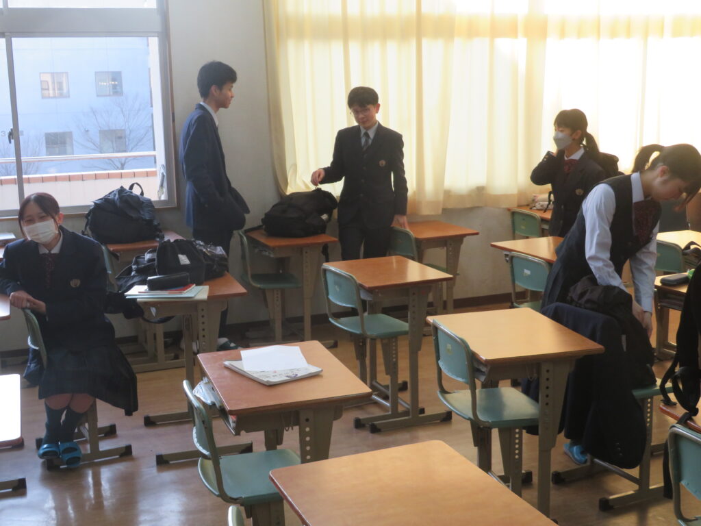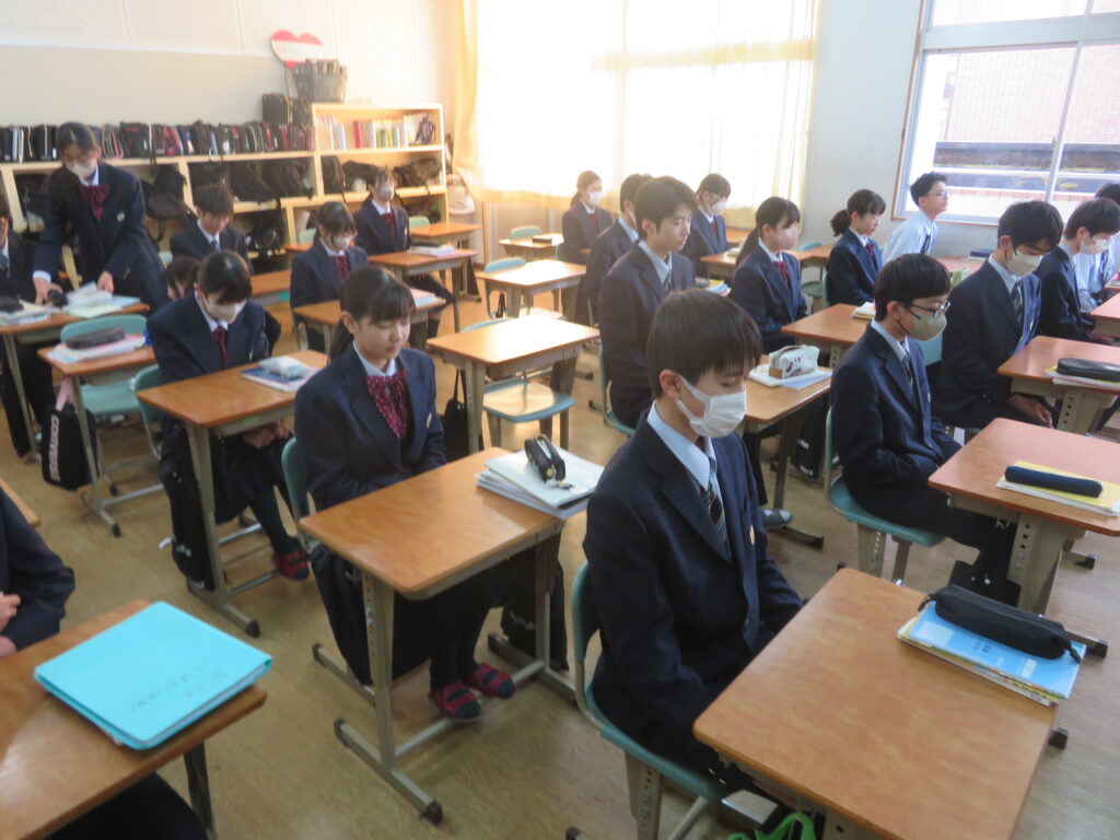 只今の時刻は7:15,早朝の肌寒い空気の中,日が昇るとともに鵬翔中生は各々校舎に集まってきます。JRを利用して登校してくる生徒を中心に7時前には1番乗りの生徒が教室の鍵を開け,カーテンを束ね,窓を開け空気を入れ替えてくれます。7:40に始まる朝の課外の1分前黙想の時間まで,生徒たちはそれぞれの過ごし方をしています。新聞に目を通す生徒,授業の予習をする生徒,読書をする生徒,クラスメイトと語らう生徒,本日のブログはそんな朝の様子です。