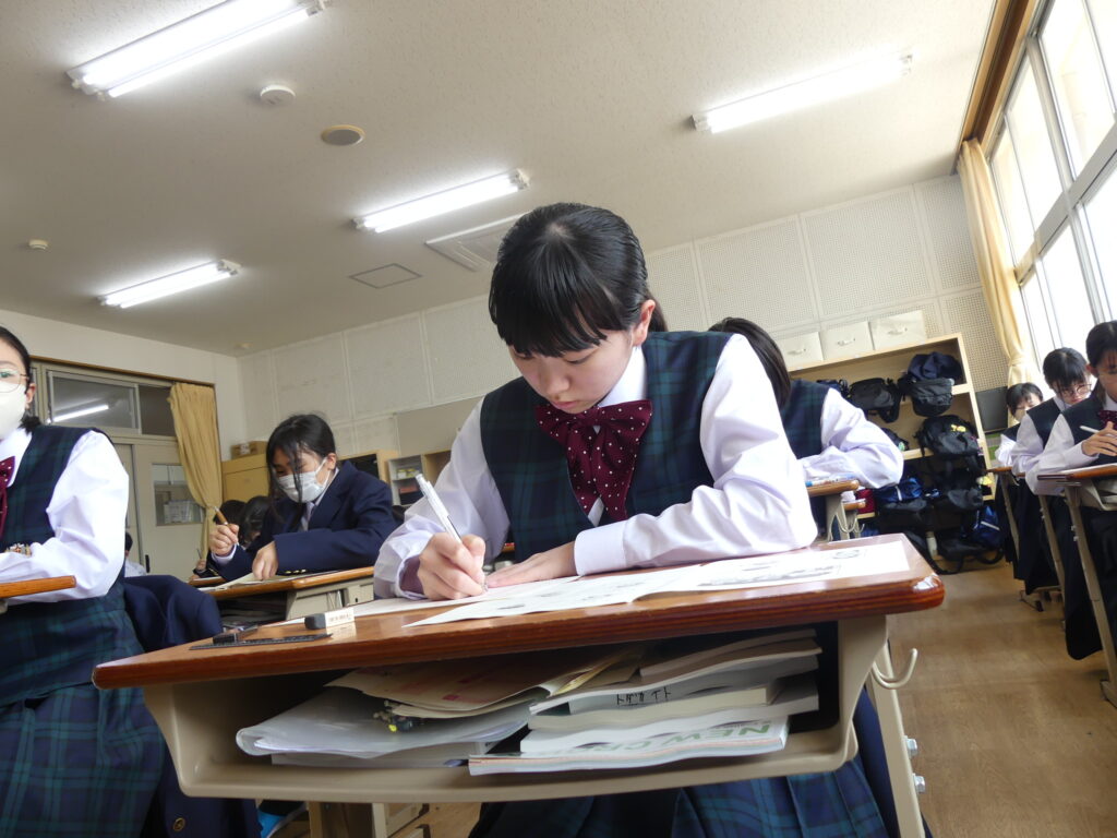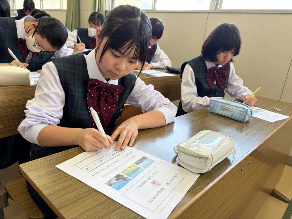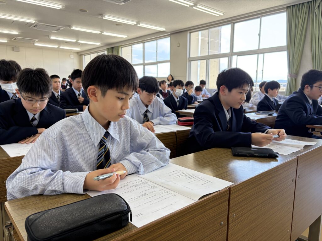 午後、J2・J3生は、校外学習について。J1生は、宿泊研修に向けて事前指導を行いました。