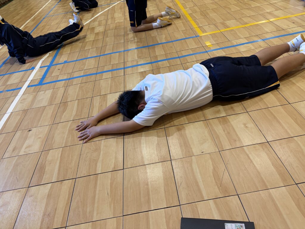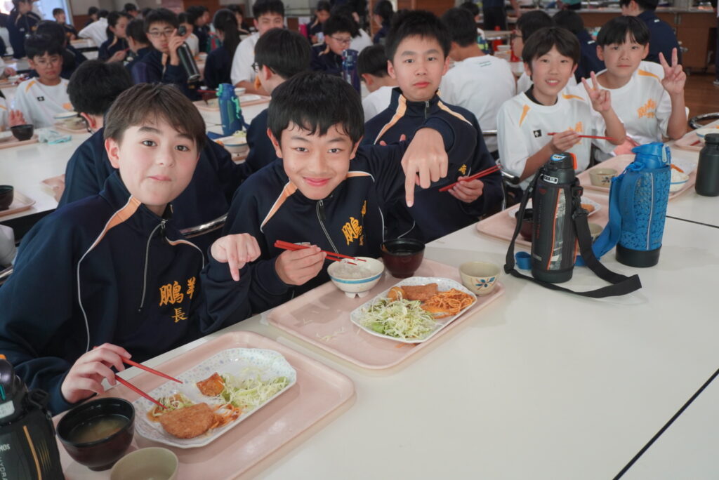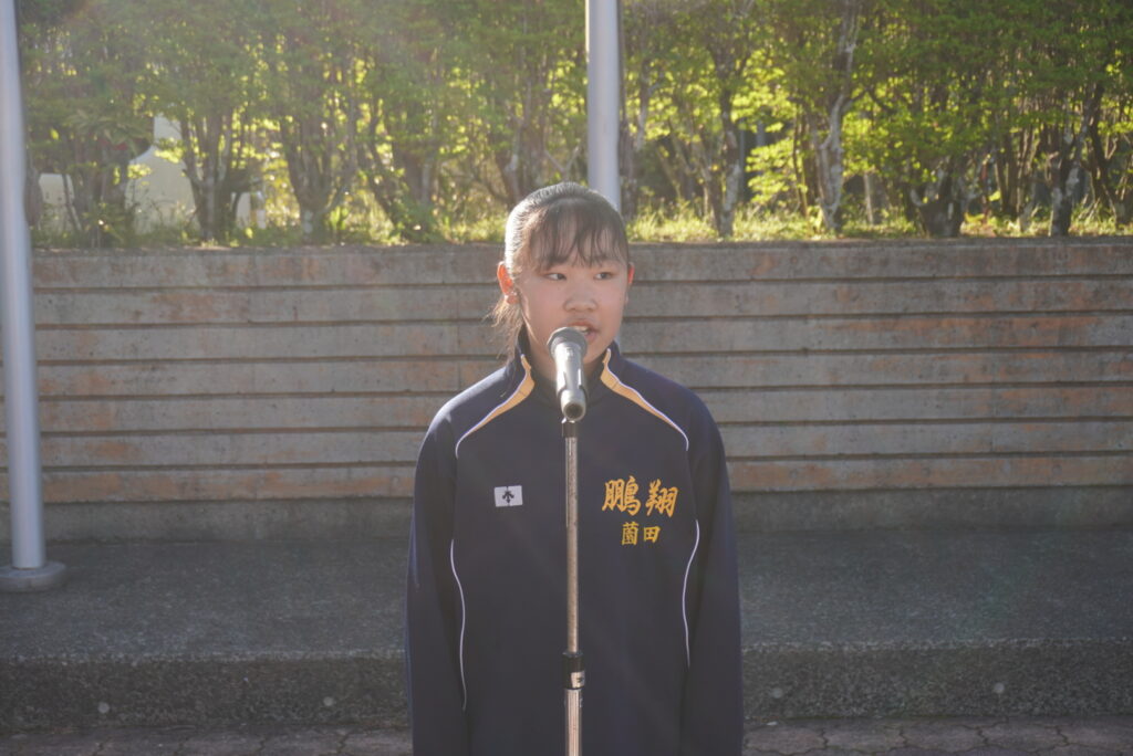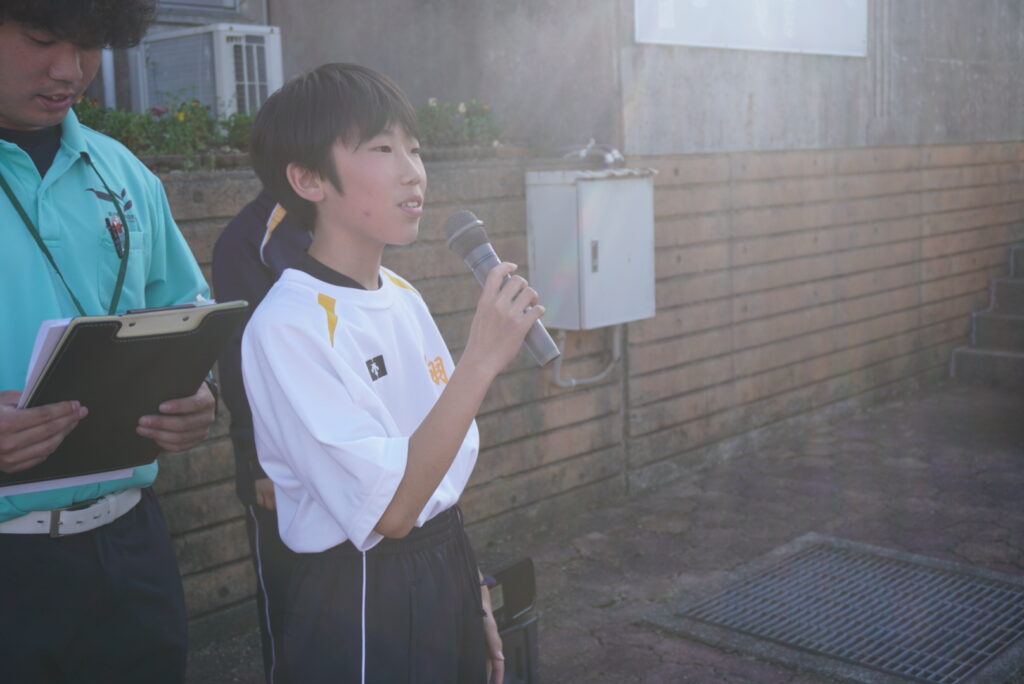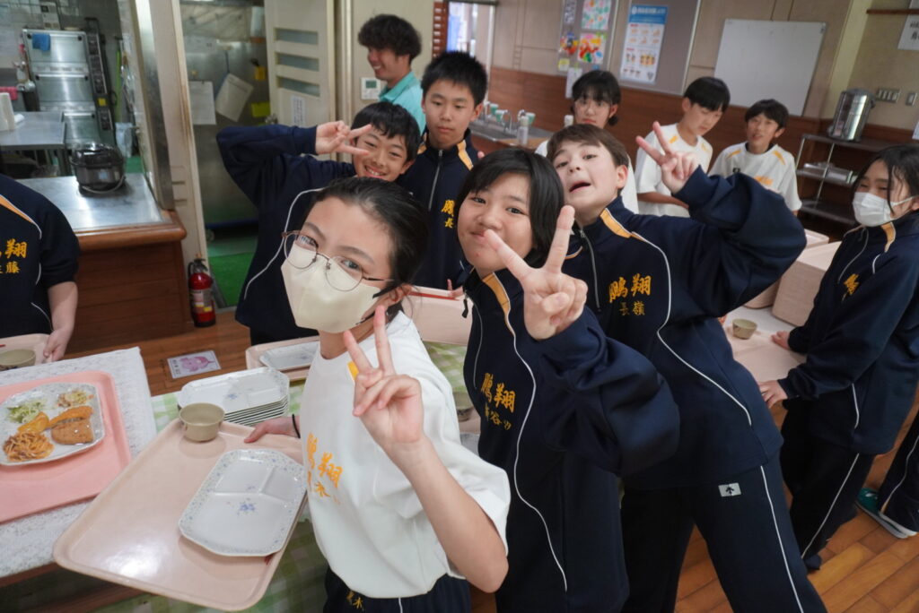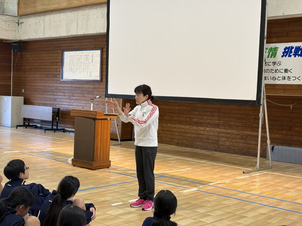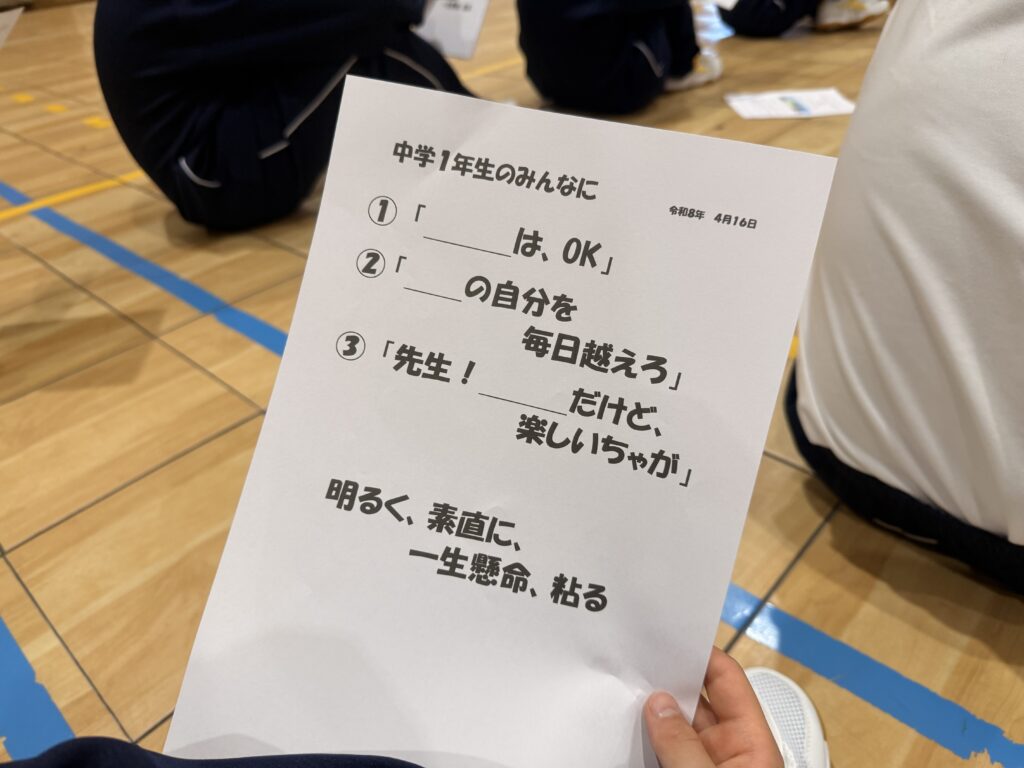 次は、校歌練習です。宮﨑先生がお手本で歌い、それに続いて生徒たちも歌います。最初は自信がなく声も小さかったのですが、徐々に歌声も大きくなっていきました。自信と誇りを持って歌ってほしいと思います‼︎