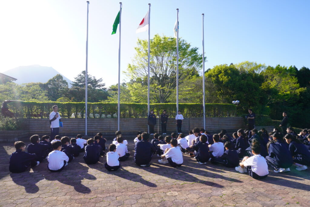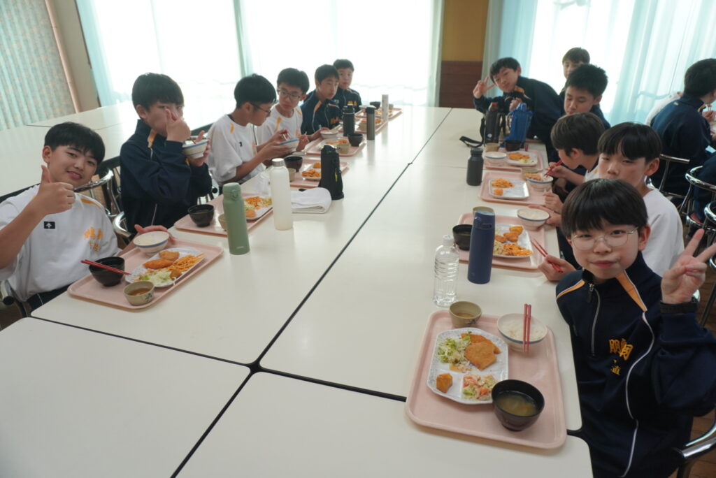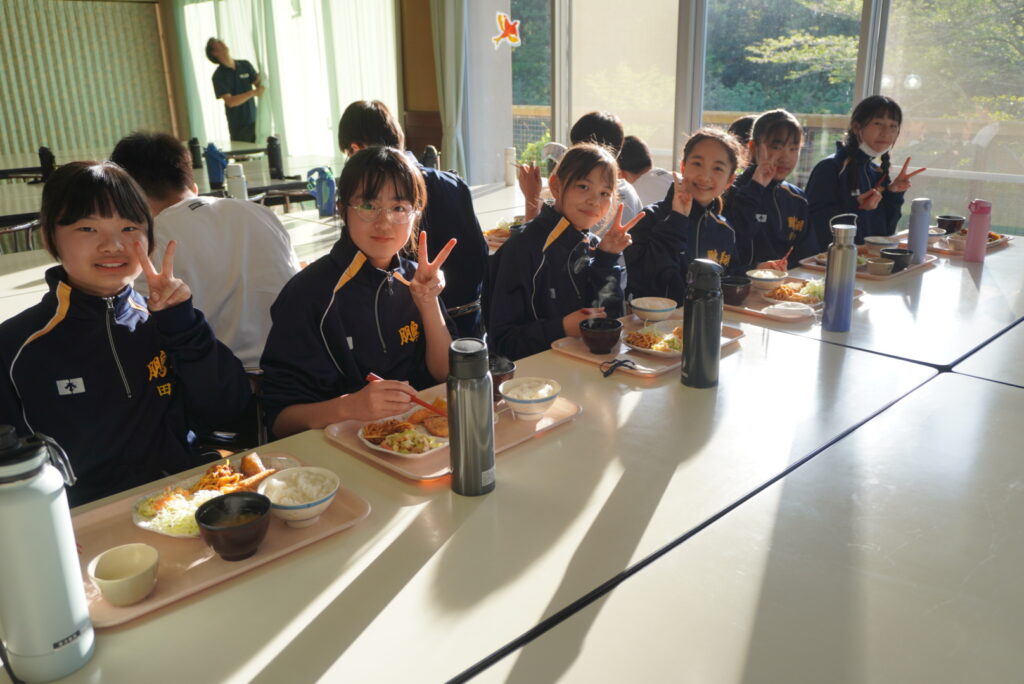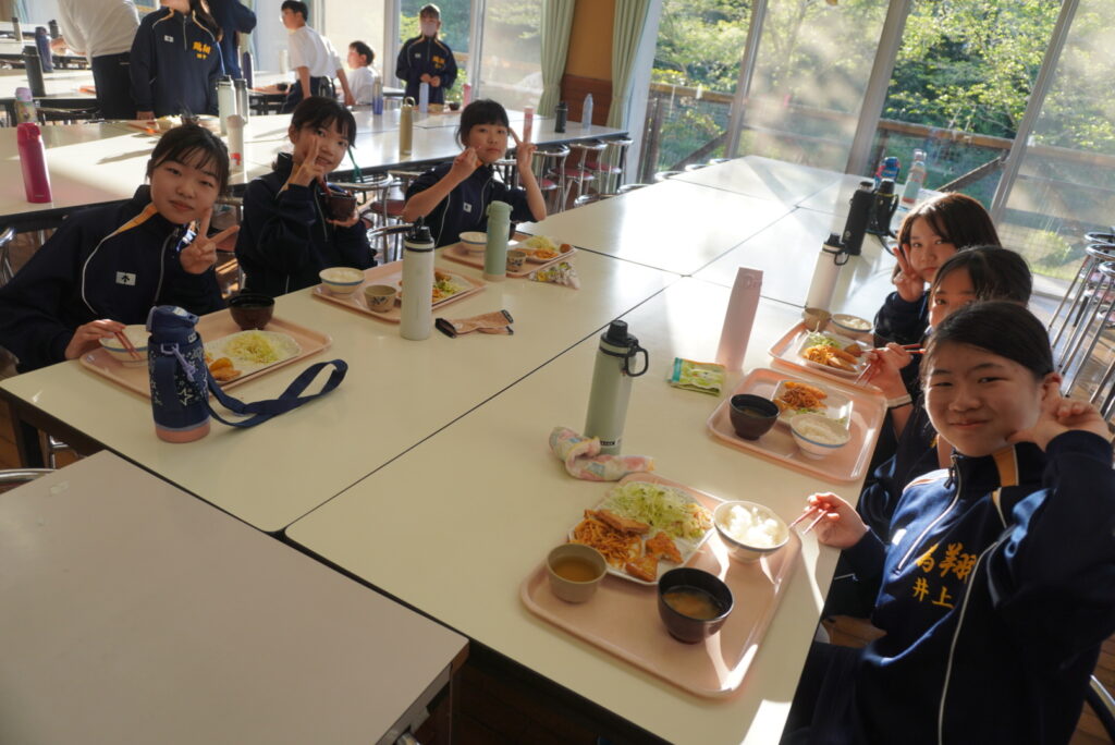 J1生、みんな元気に活動しています。この後は、夕べのつどい、夕食の時間です。