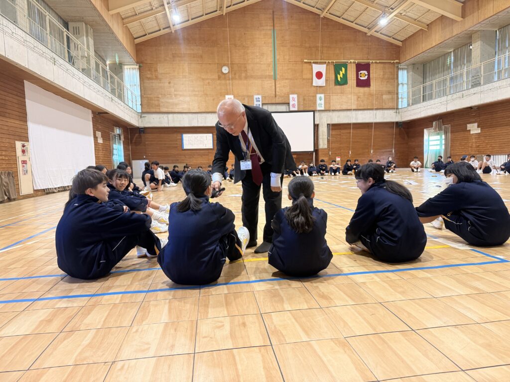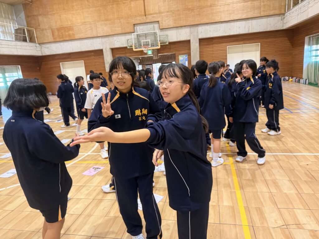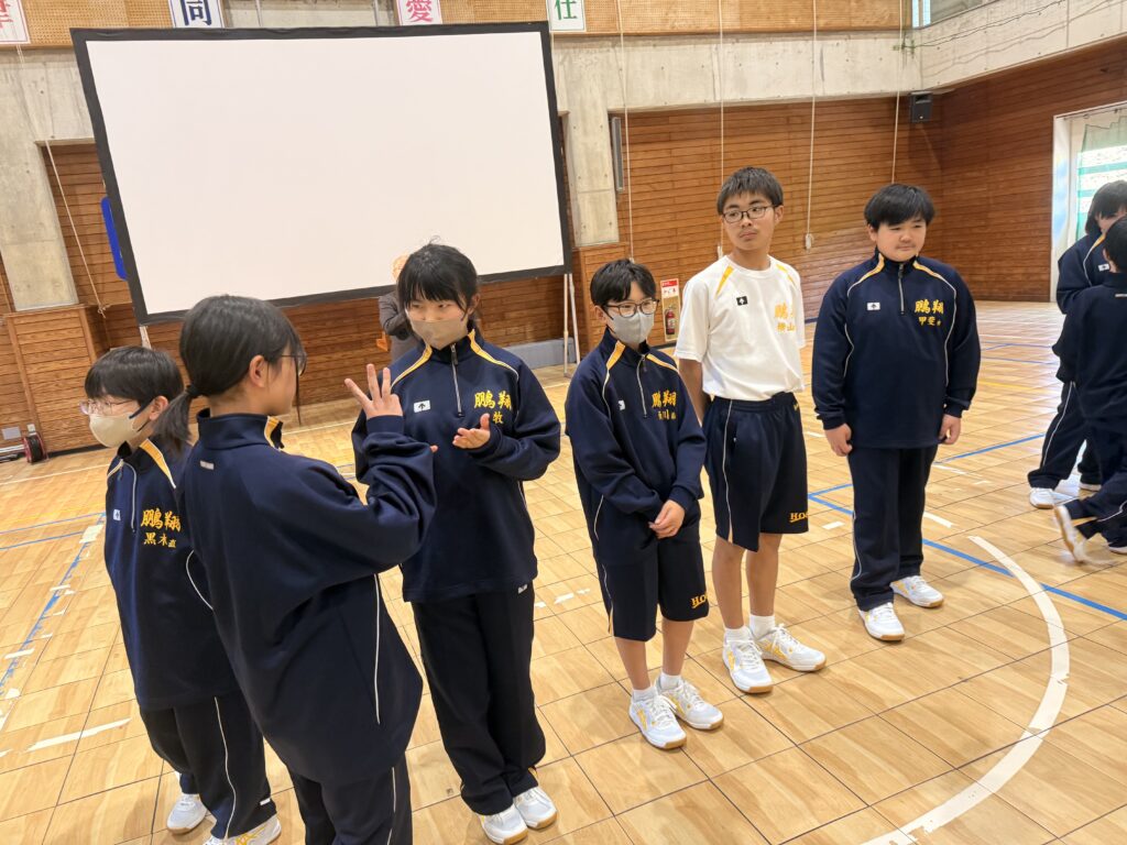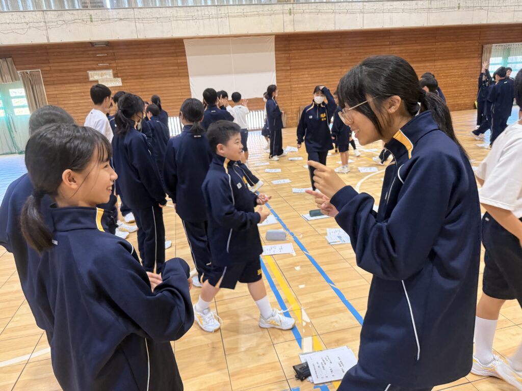 午後の活動は、校長先生の講話から始まりました。80人みんなで言葉を使わずに誕生日順に並びました。手で数字を作りながらみんなんで協力して制限時間の中で並び終えることができました!