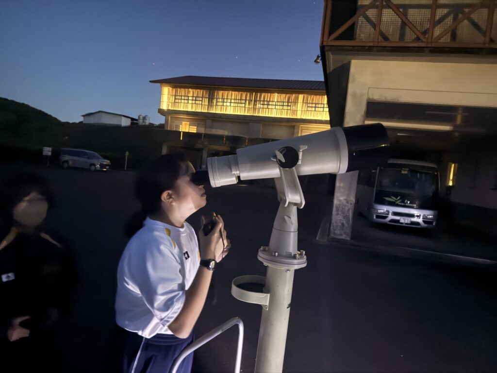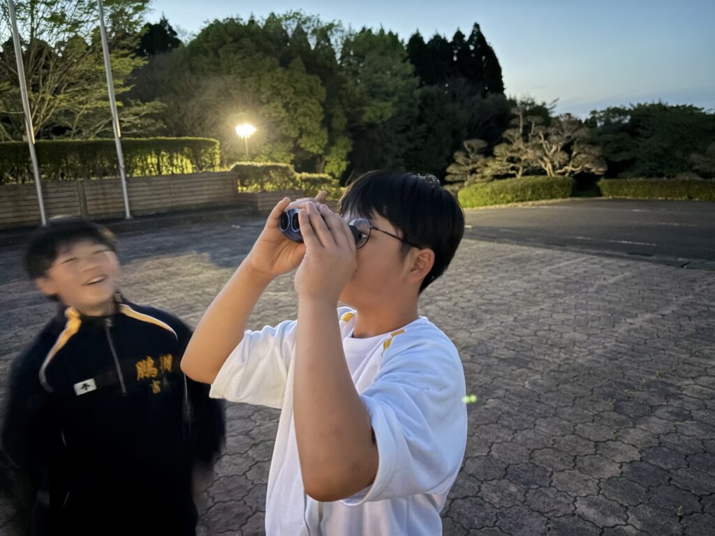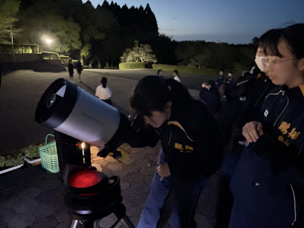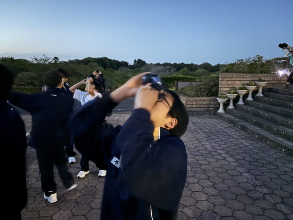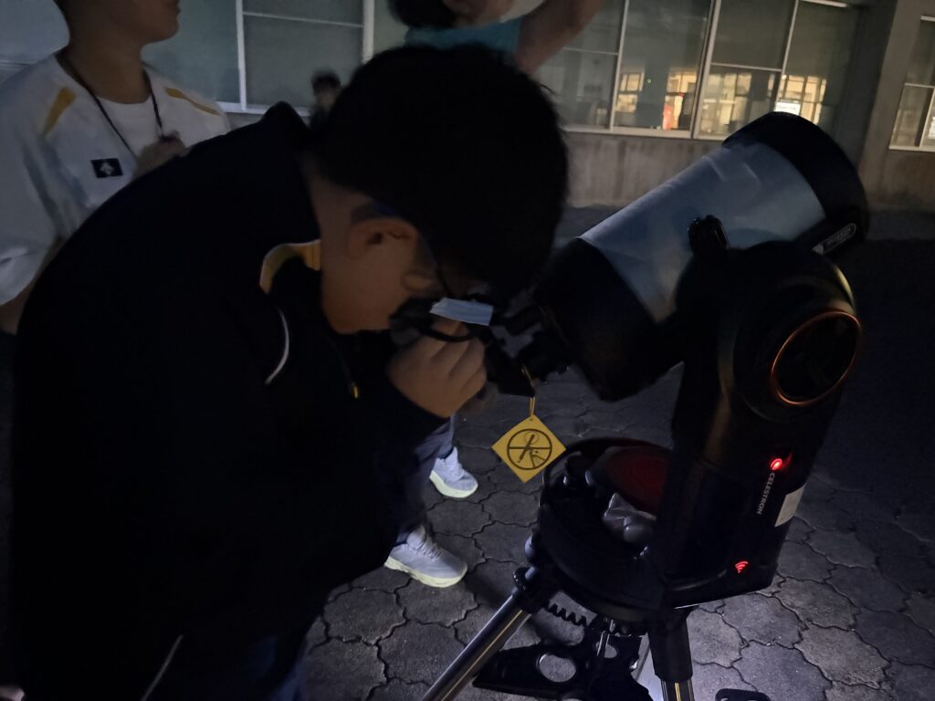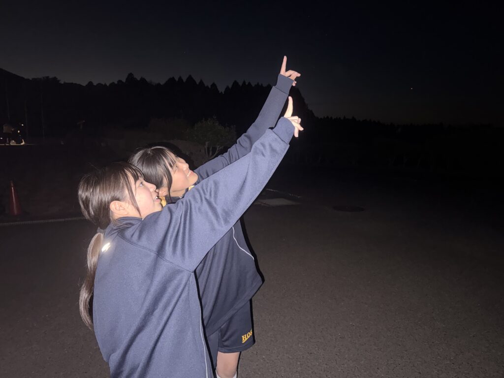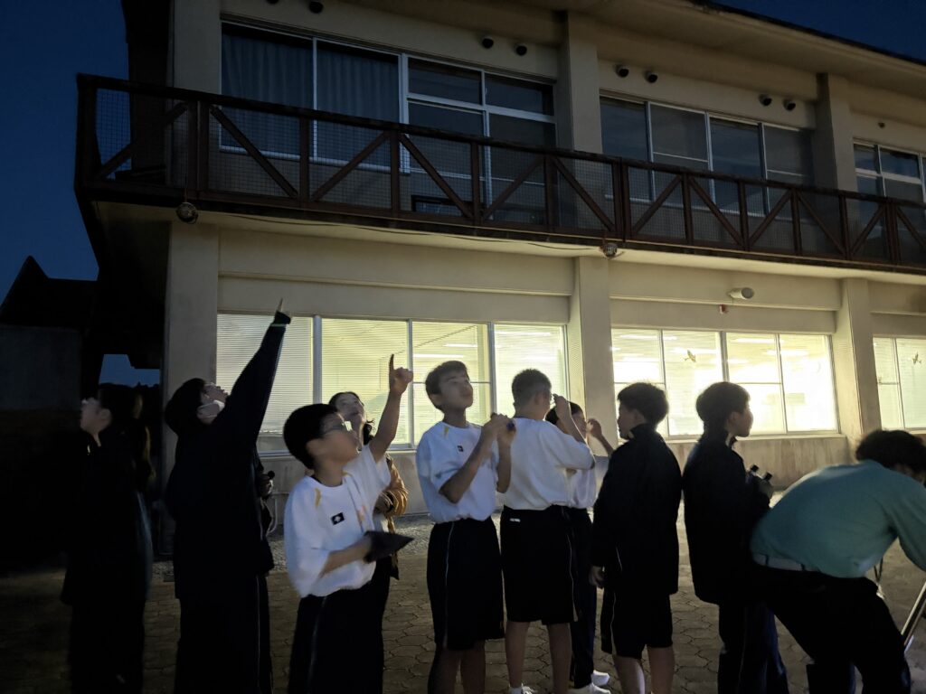 待ちに待った天体観測の時間です‼︎まずはじめに、体育館で説明をしていただき、外にでて実際に観測をしました‼︎