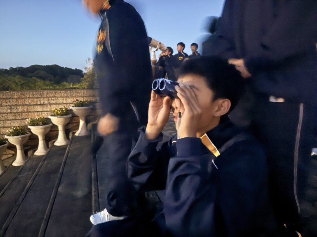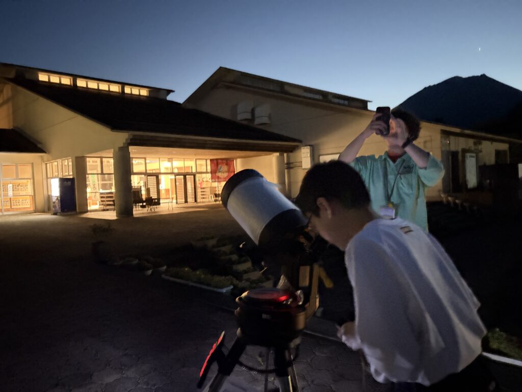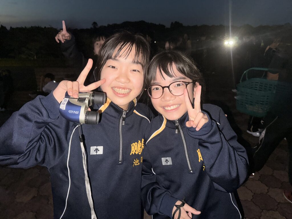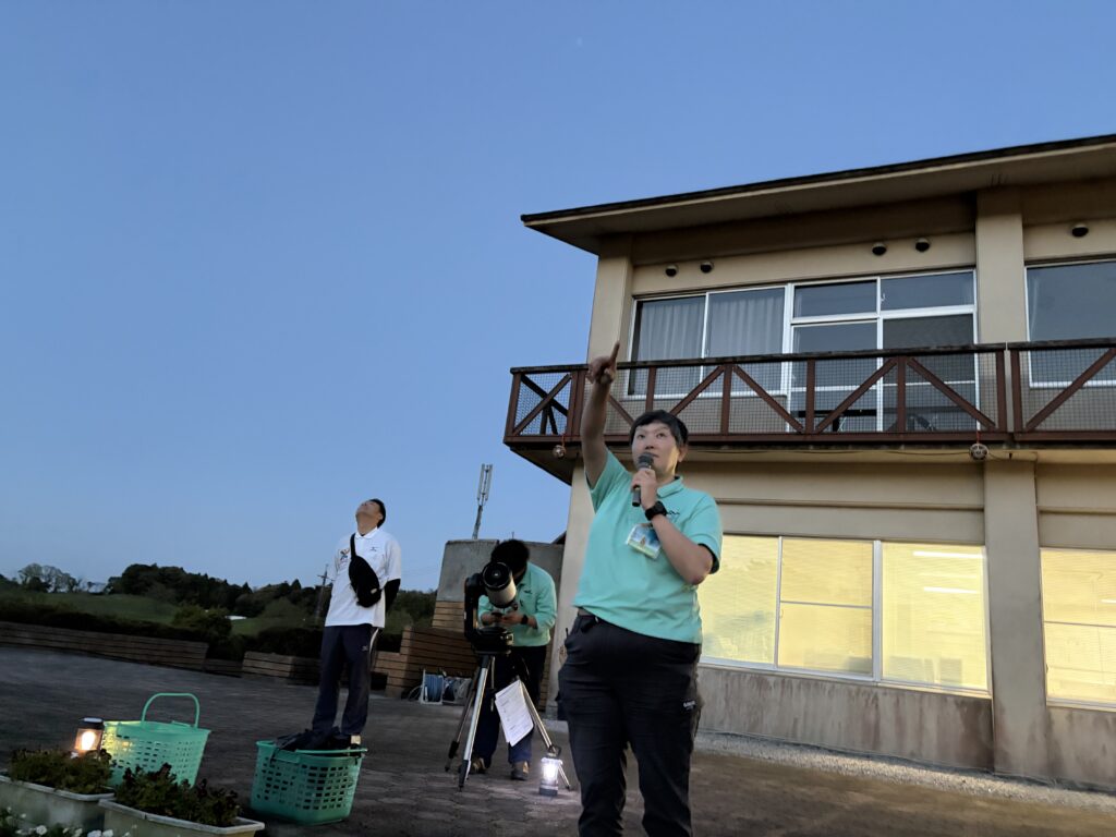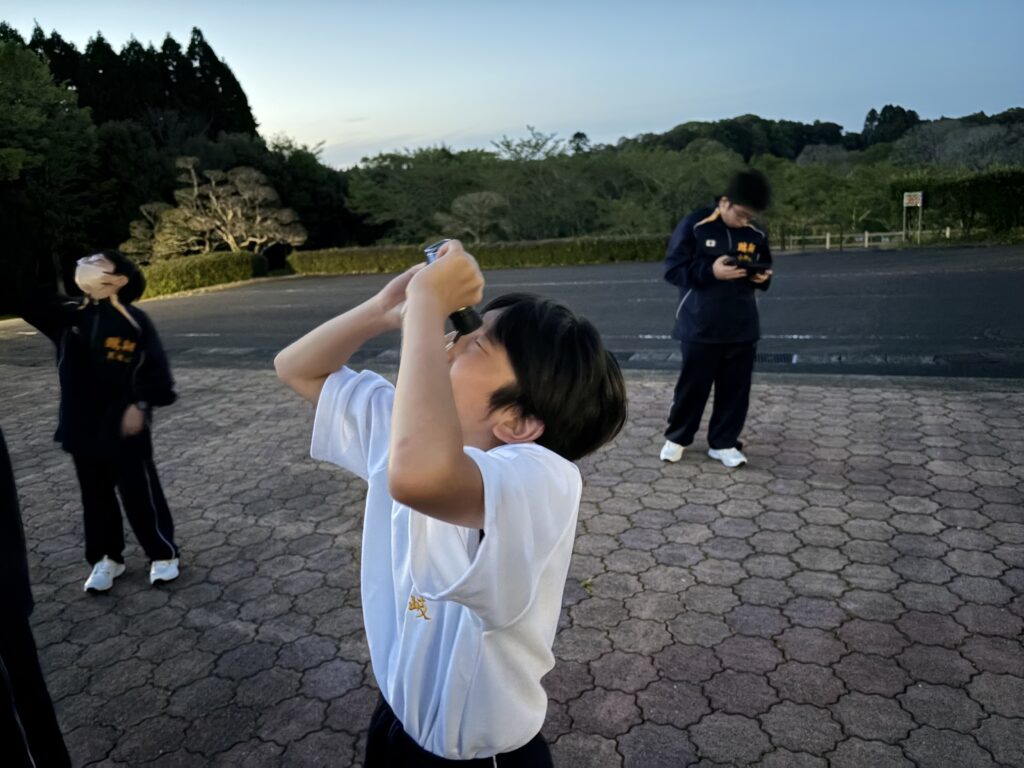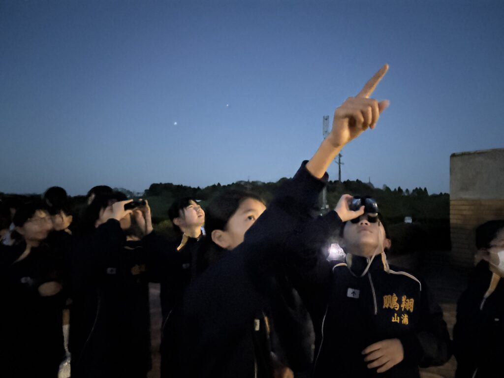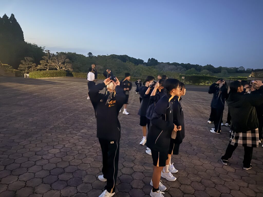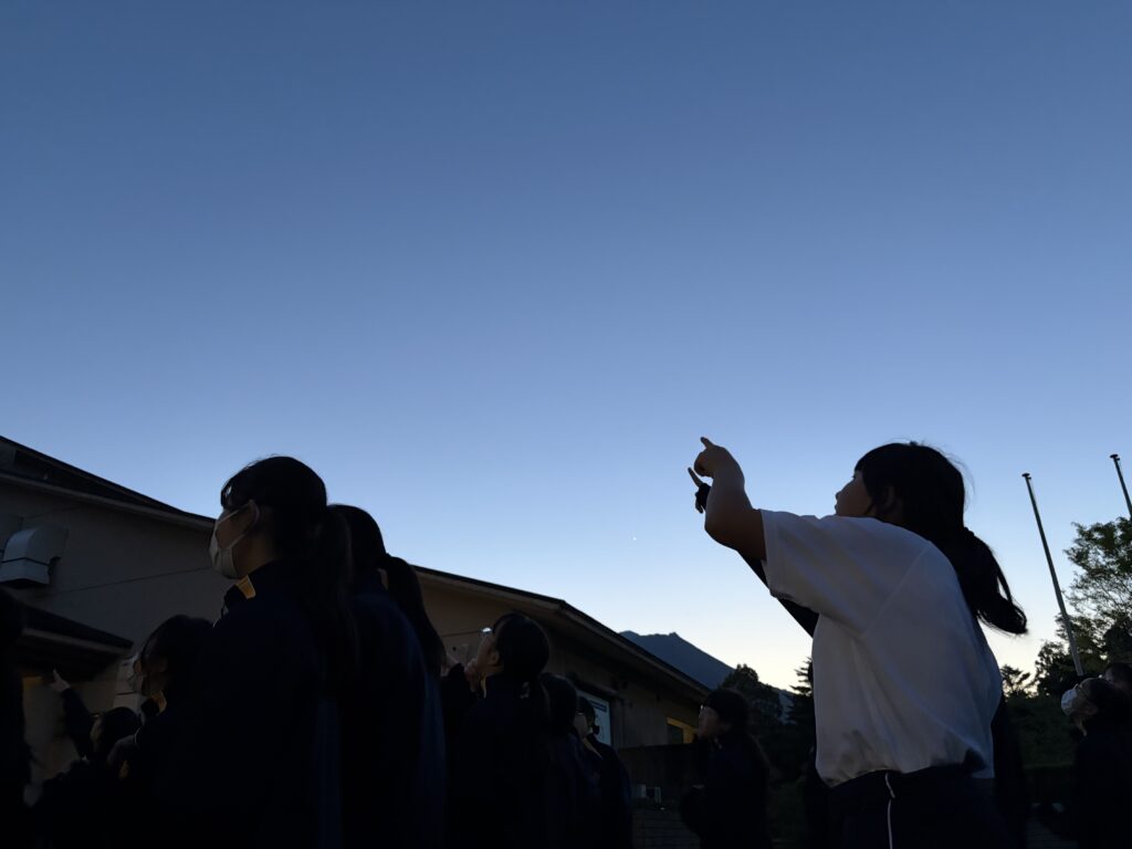 待ちに待った天体観測の時間です‼︎まずはじめに、体育館で説明をしていただき、外にでて実際に観測をしました‼︎