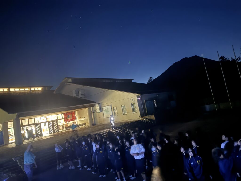 天気が良く、星が綺麗に見えました!天体観測後は入浴を終え、本日最後の活動である生徒心得講話となります。これからの学校生活について安田先生からお話をしていただきました。