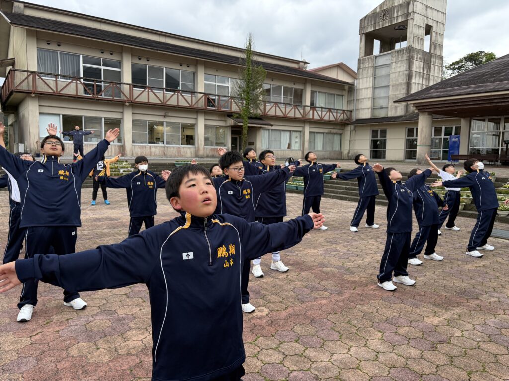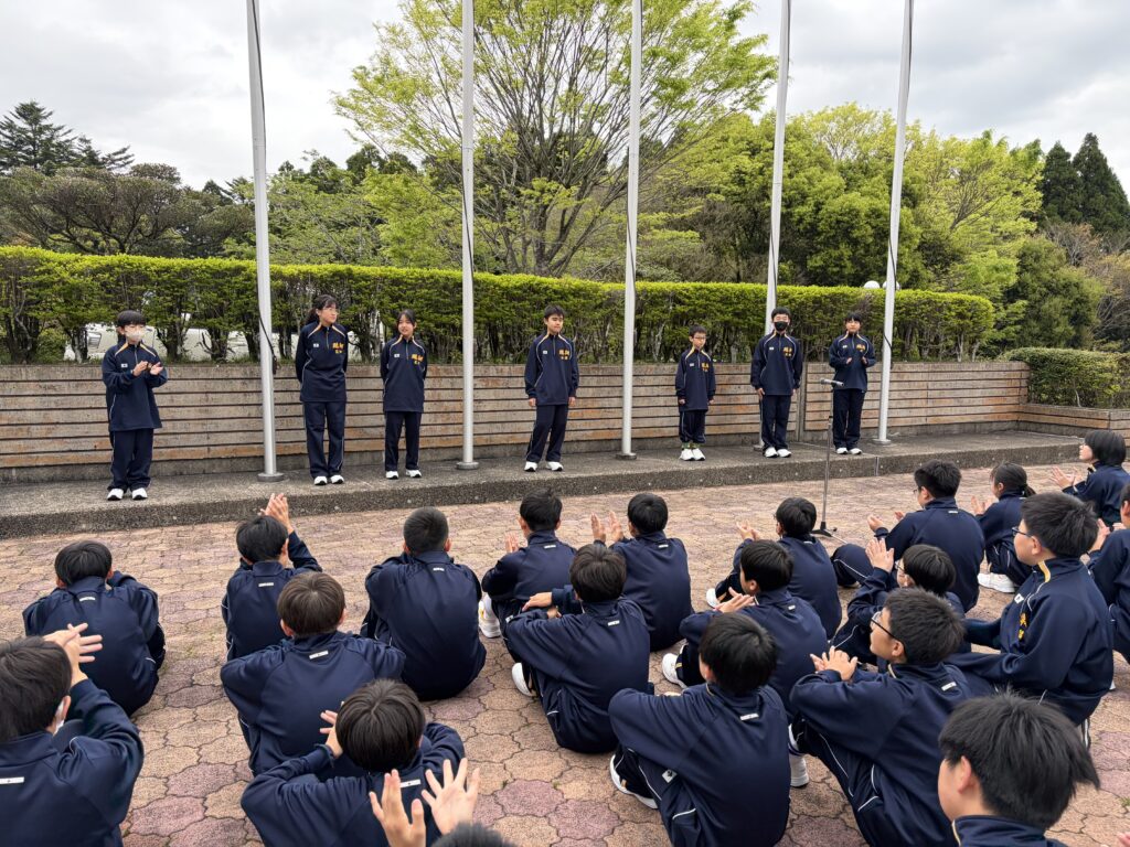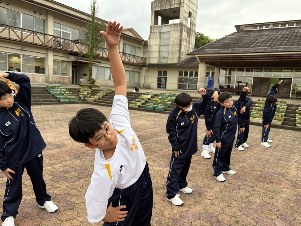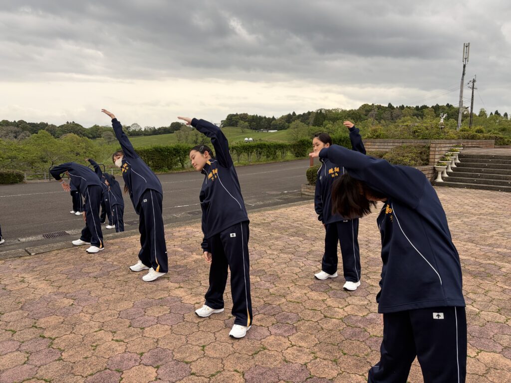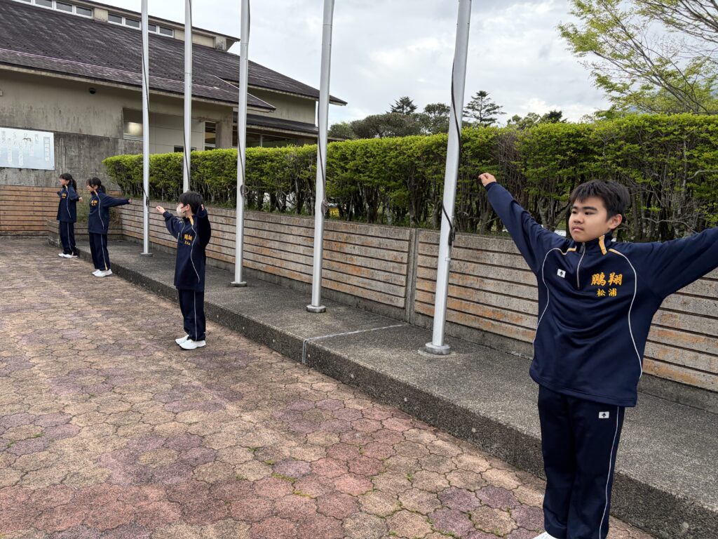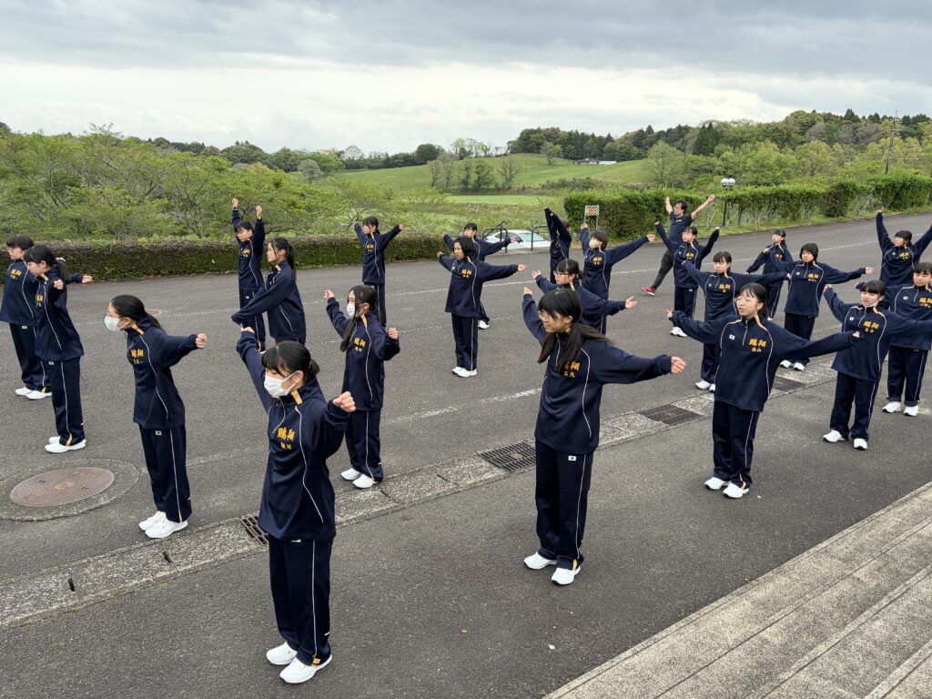 朝の体操:黒木 直さん(大塚小出身)・松浦 光希さん(清武小出身)・尾川 彩実さん(生目台東小出身)・花畑 咲希さん(宮崎南小出身)