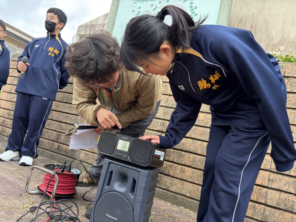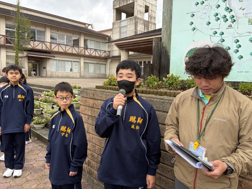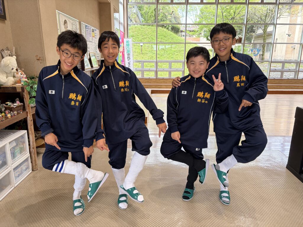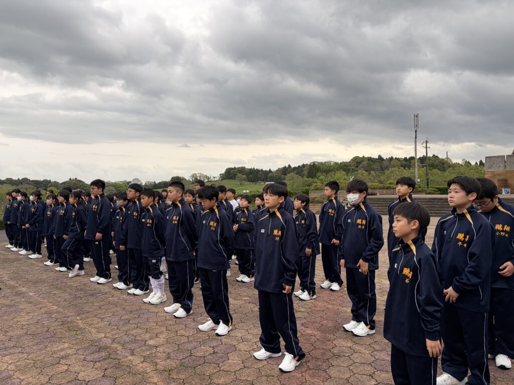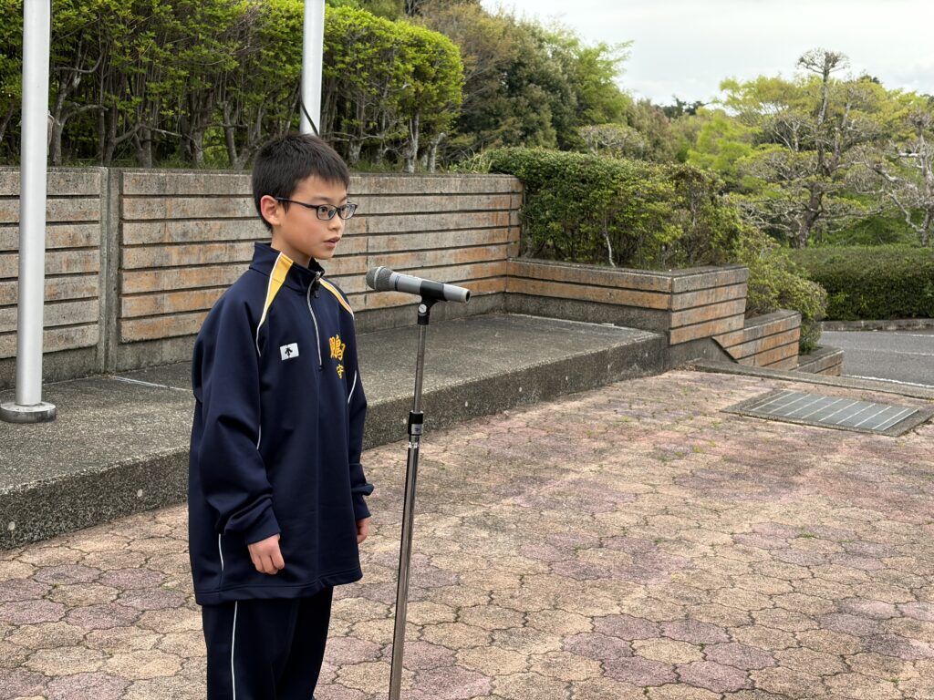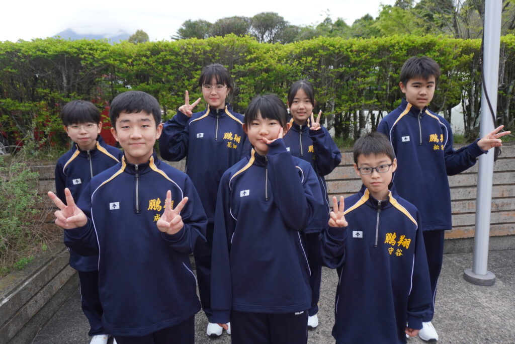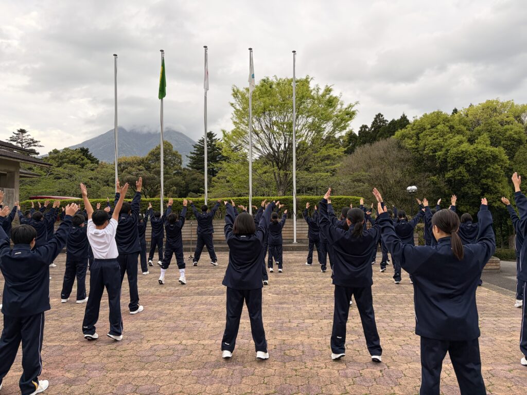 朝の体操:黒木 直さん(大塚小出身)・松浦 光希さん(清武小出身)・尾川 彩実さん(生目台東小出身)・花畑 咲希さん(宮崎南小出身)