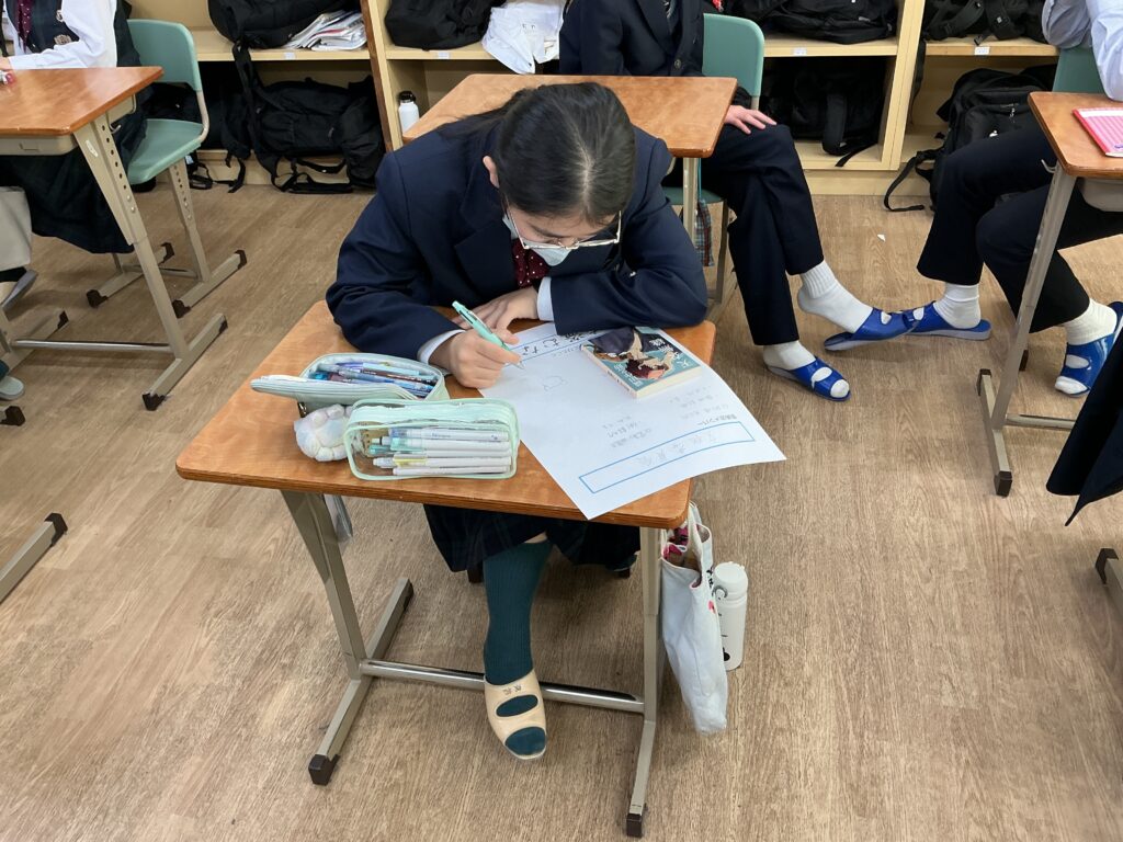 先生方の話をしっかりと聞いて生徒心得、守るべきルールを理解しようと努めました。また、委員会決めやその後のポスター作製、クラス目標設定もみんな積極的に参加できていたように思います。