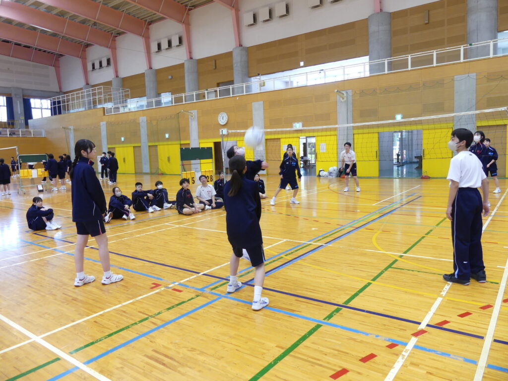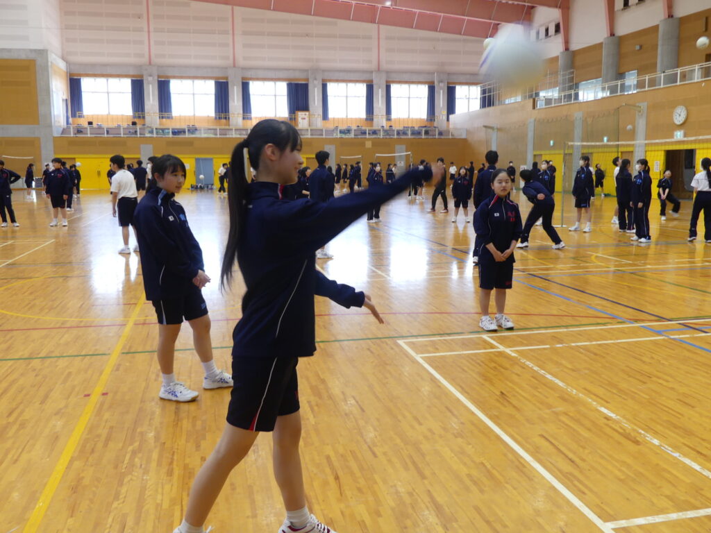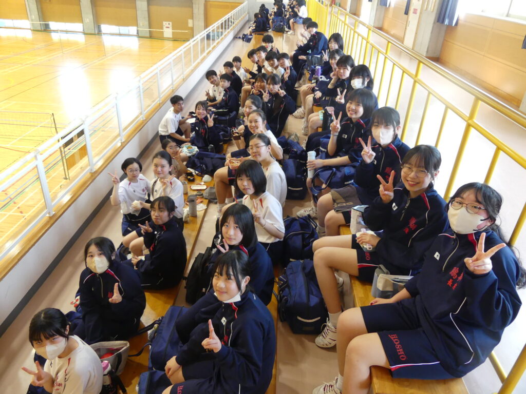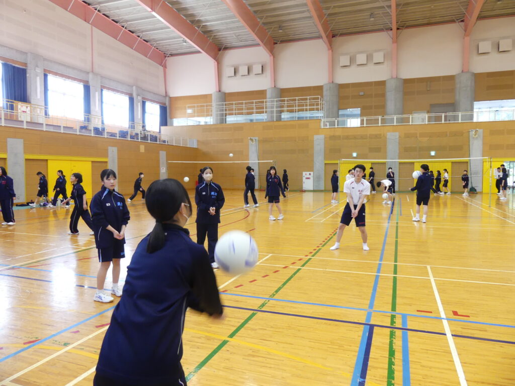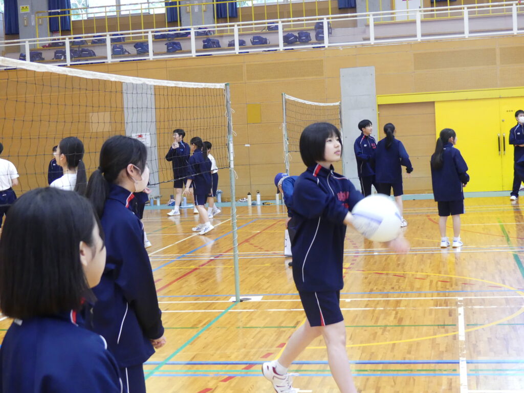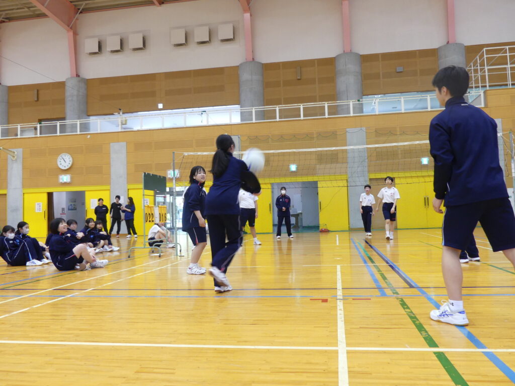 一昨日の木曜日、J2生とJ3生で校外学習を行いました。男女学年の垣根を越えて、助け合い、励まし合いながら、友情を学び、学校生活に必要な生活態度やマナーを身につけるために、ミニバレー大会を、北郷体育館(さくらアリーナ)にて行いました。