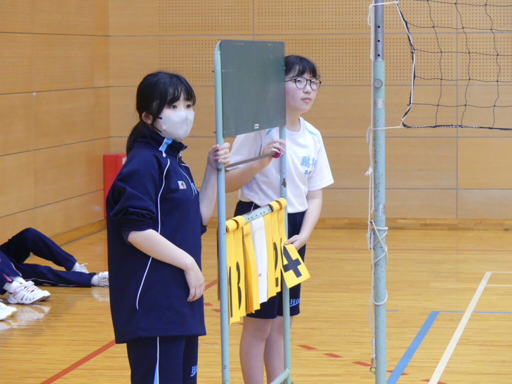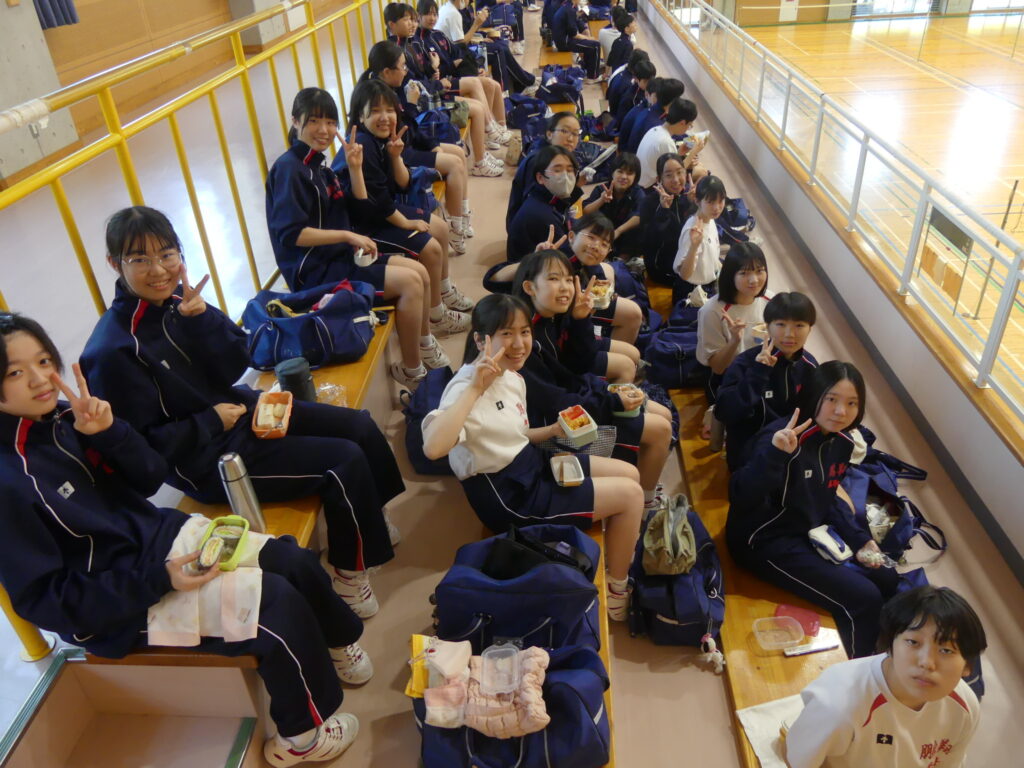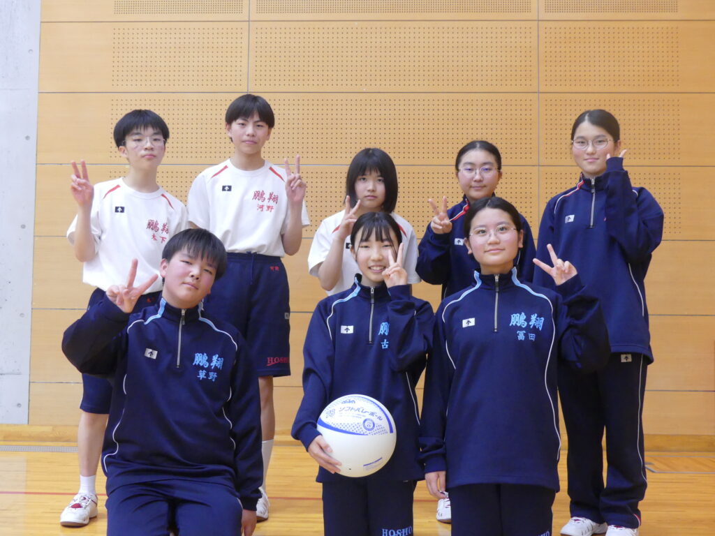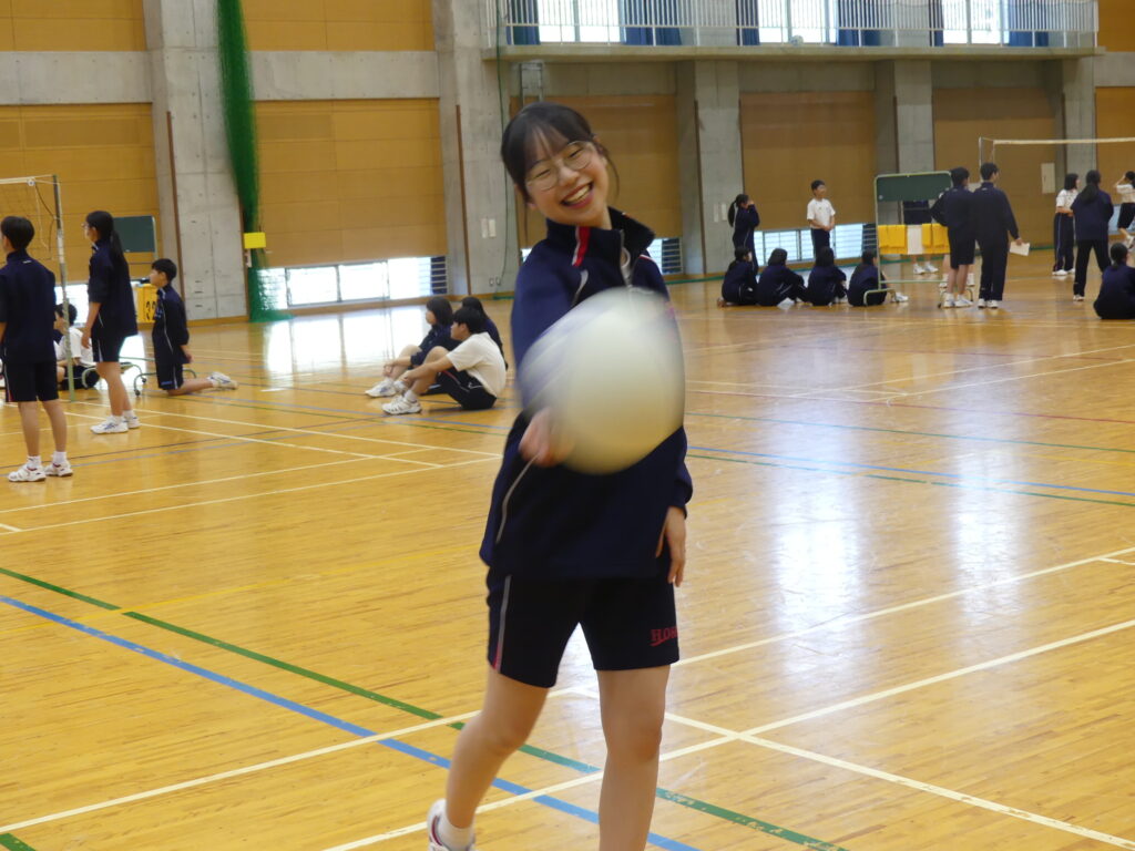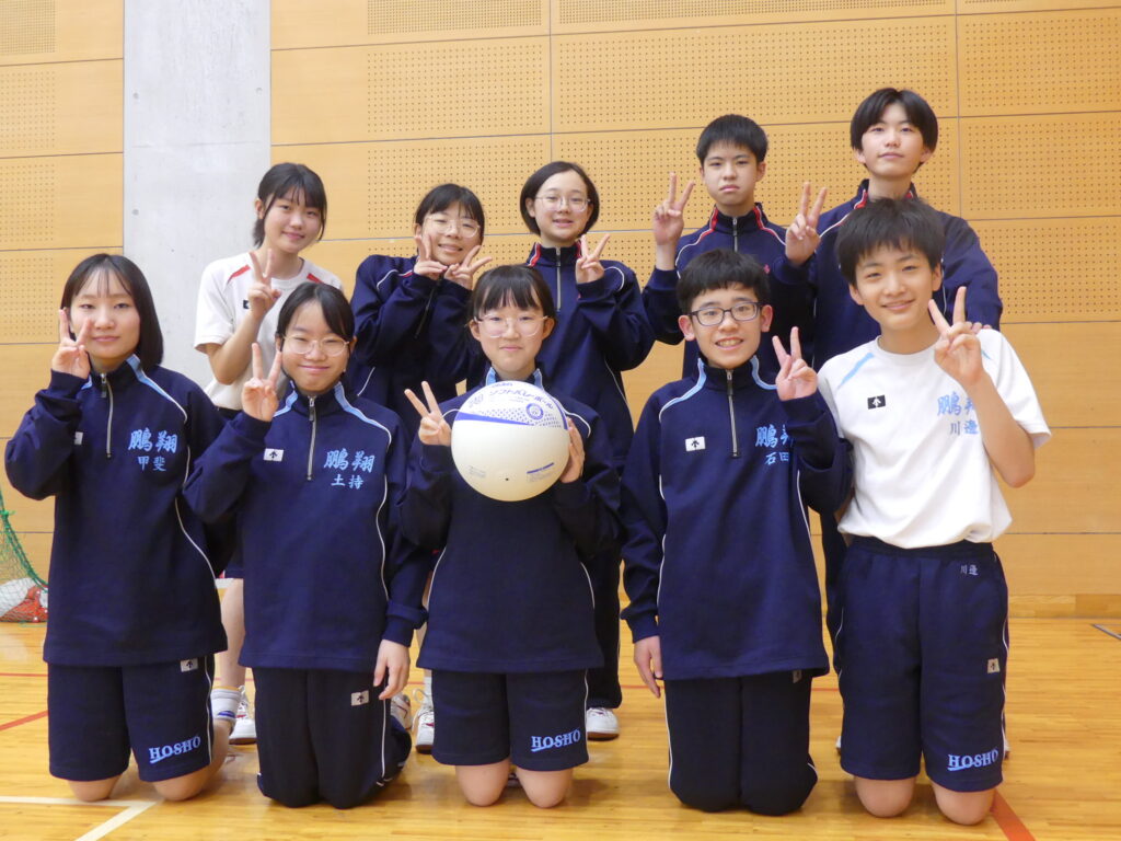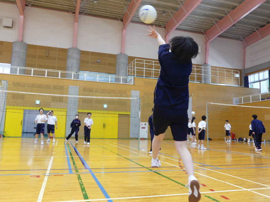 一昨日の木曜日、J2生とJ3生で校外学習を行いました。男女学年の垣根を越えて、助け合い、励まし合いながら、友情を学び、学校生活に必要な生活態度やマナーを身につけるために、ミニバレー大会を、北郷体育館(さくらアリーナ)にて行いました。