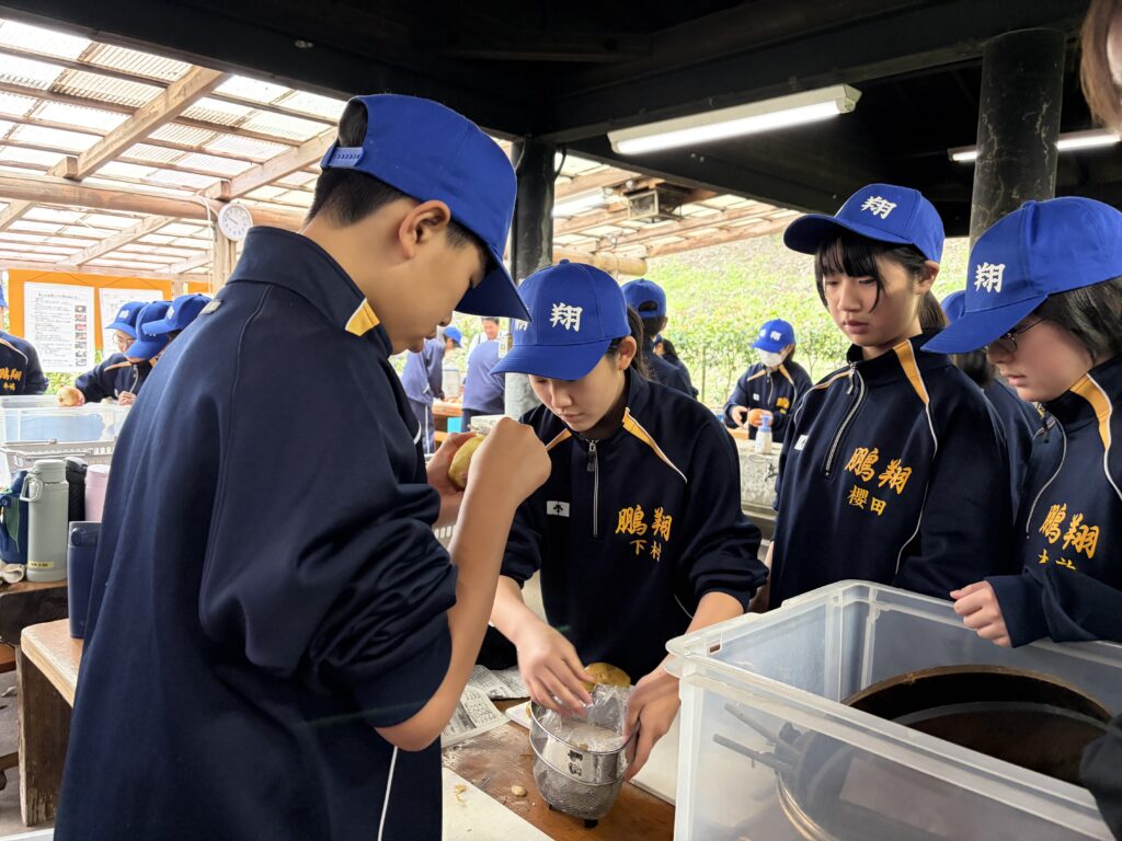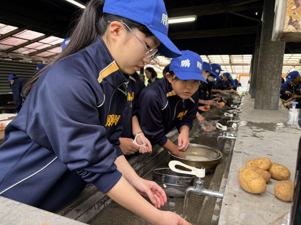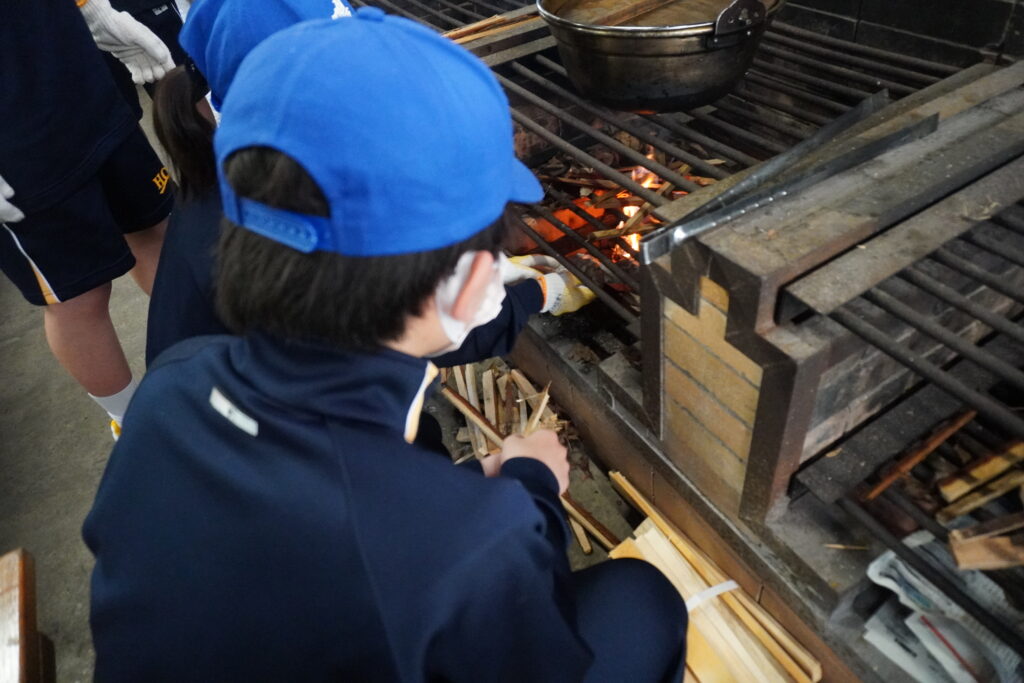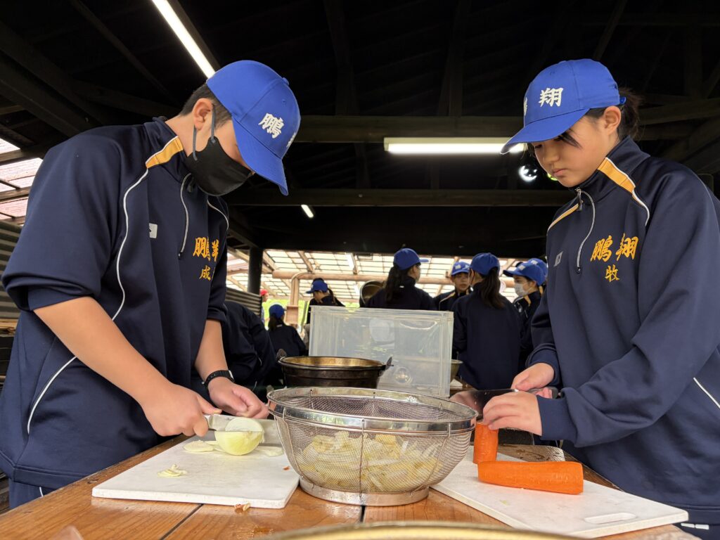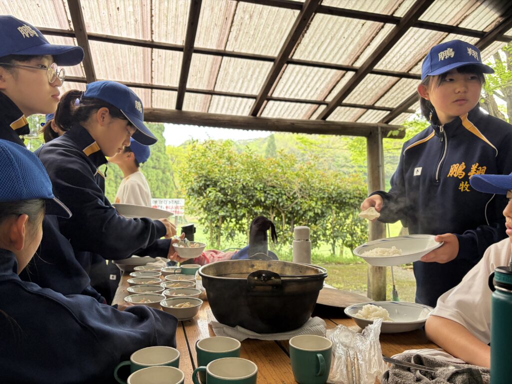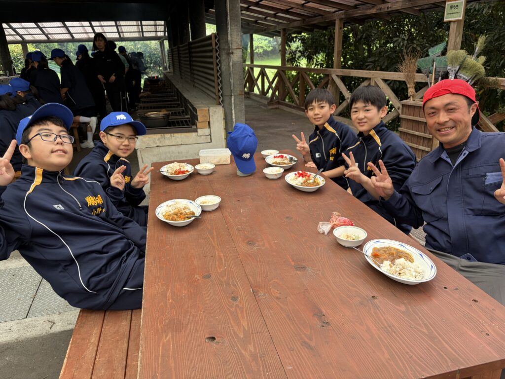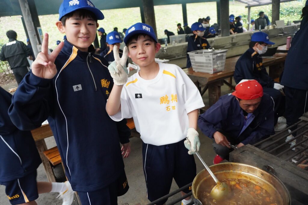朝食後、お世話になったお部屋の清掃・荷物の整理をし、楽しみにしていた野外炊飯災害カレー作りの時間です‼︎火おこしから後片付けまで、班のみんなで協力して災害カレーを作りました。