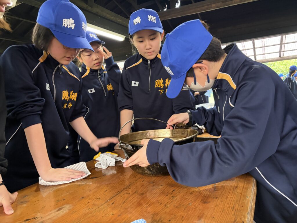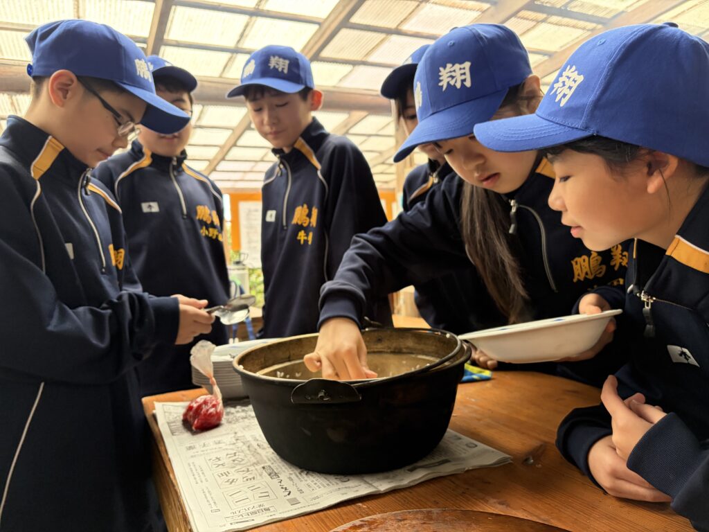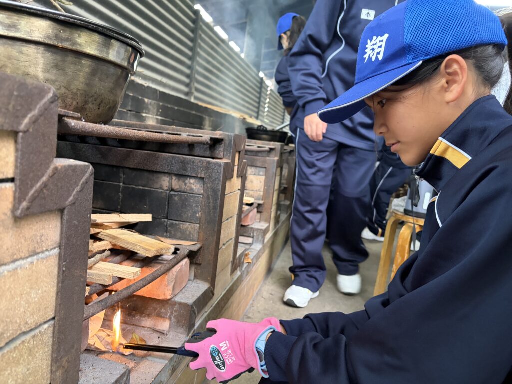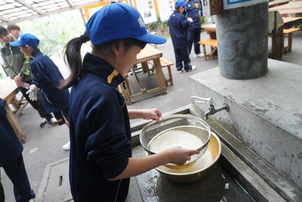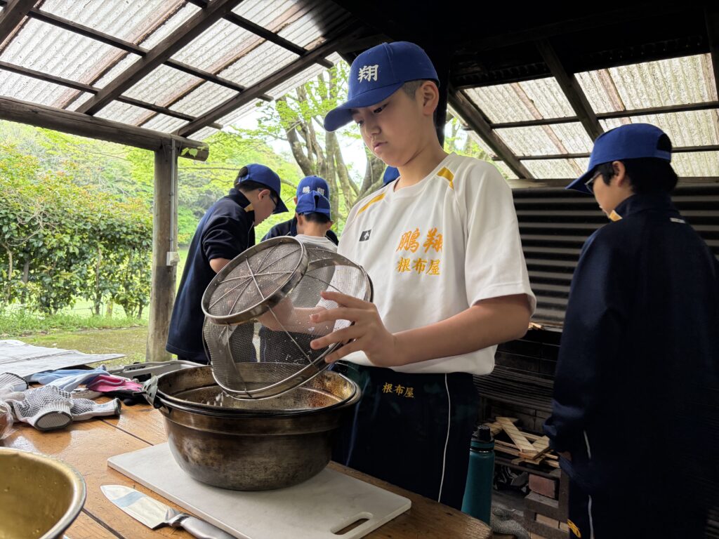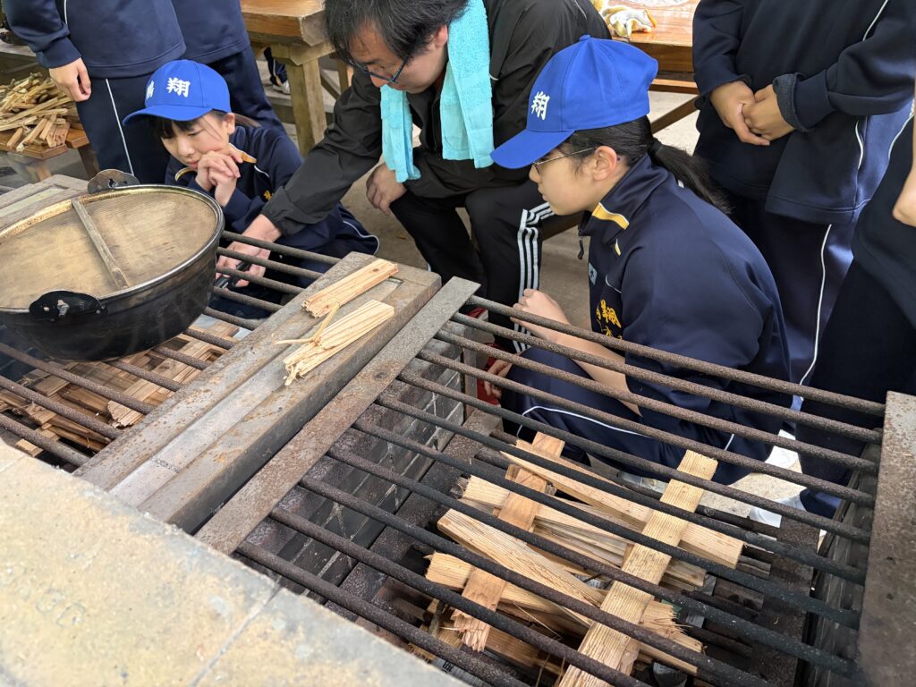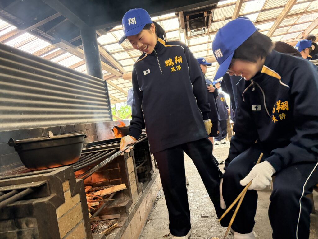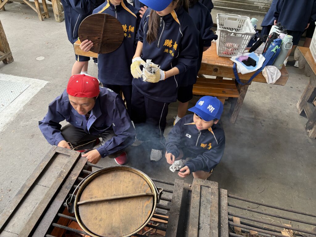 朝食後、お世話になったお部屋の清掃・荷物の整理をし、楽しみにしていた野外炊飯災害カレー作りの時間です‼︎火おこしから後片付けまで、班のみんなで協力して災害カレーを作りました。