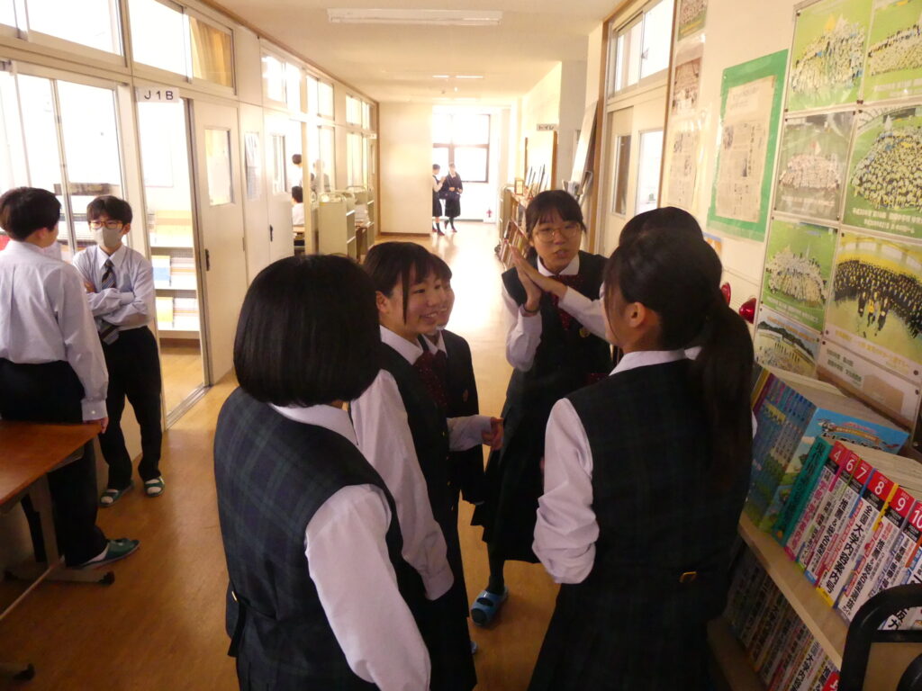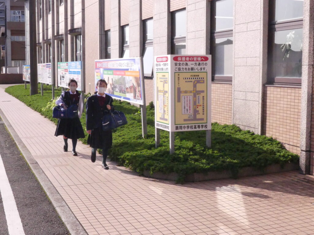 最近のブログでは鵬翔中生の朝の様子がよく載っていて,今日も7時過ぎからJ1生中心に何か掲載する被写体を探してカメラ片手に学校内を歩いていると,元気な「おはようございます。」の声とともにカメラに向かってポーズを取る生徒が多くいました。J1生も大分慣れてきたのか笑顔でクラスメイトや先輩たちとともに話しかけてくれました。楽しく学校生活が遅れることが何よりです。本日はそんな朝の様子をJ1生中心に。※撮影の途中立ち寄った中高一貫の先輩(高校生)も一部載ってます。