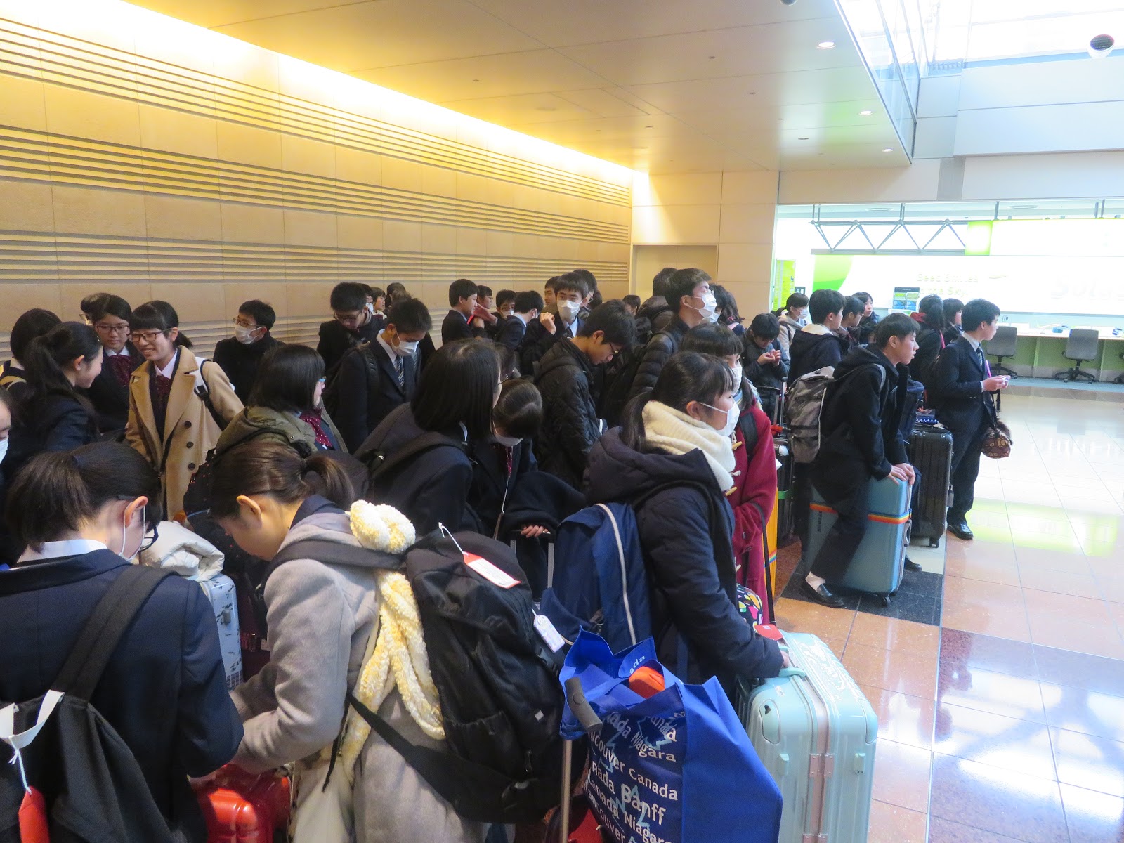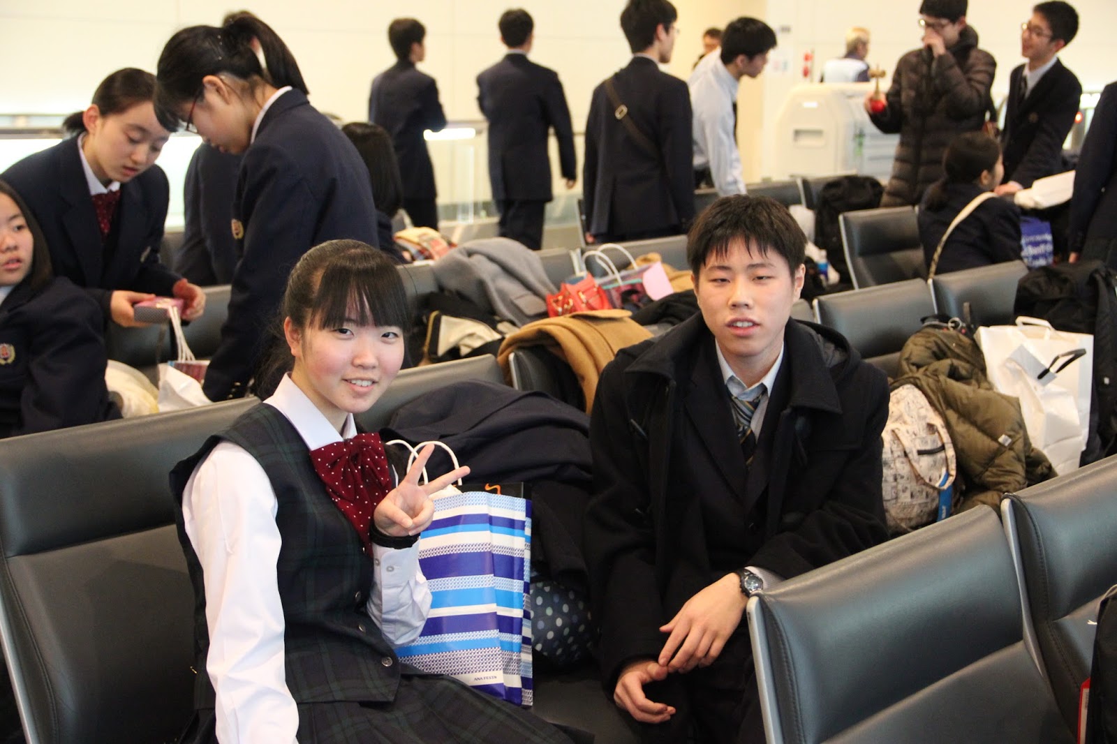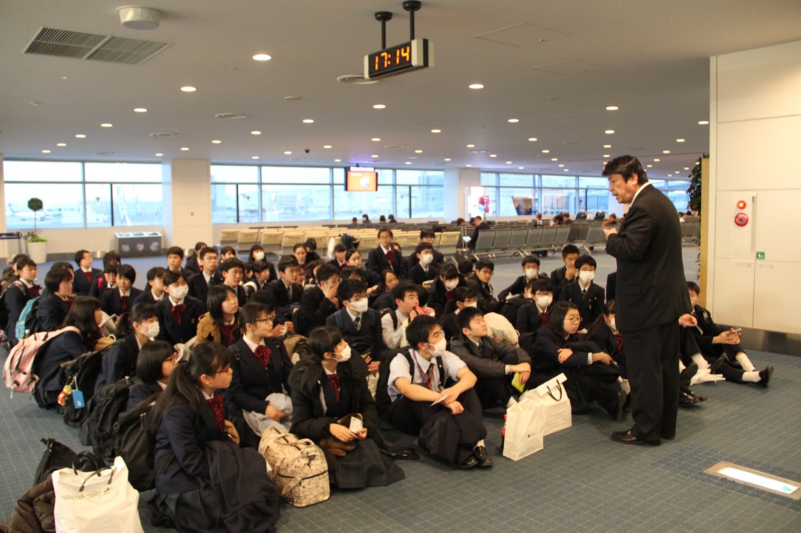 大勢の保護者が迎える中、全員が無事にANA613便にて「宮崎ブーゲンビリア空港」に到着しました。到着後、解団式行われ、学校長(川﨑基宏校長先生)よりご挨拶を頂きました。