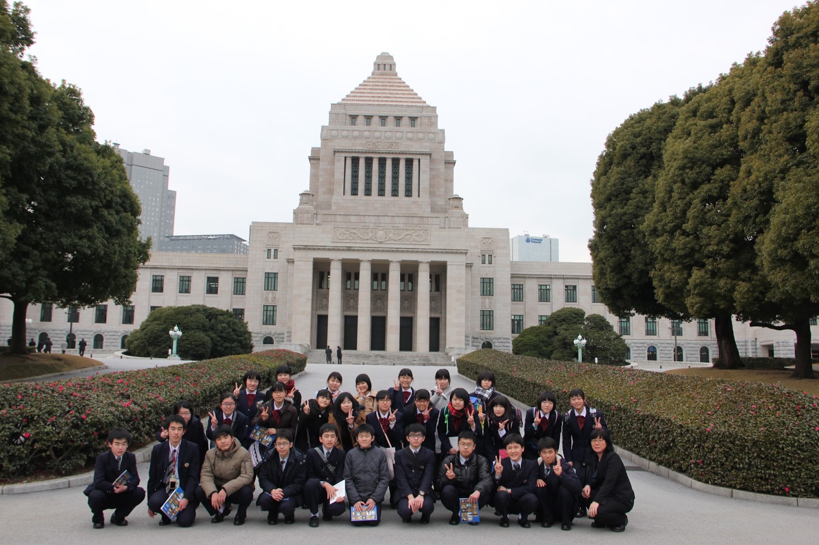 「国会議事堂」では、「選挙権の18歳への年齢引き下げ」が実際に始まっていることから政治へ興味を示す者や、「新しい大学入試制度」への関心が高いことから、日本政治が実際に行われる国会議事堂を見学することで自身の資質向上ができ、それぞれの将来の目標の再確認ができました。