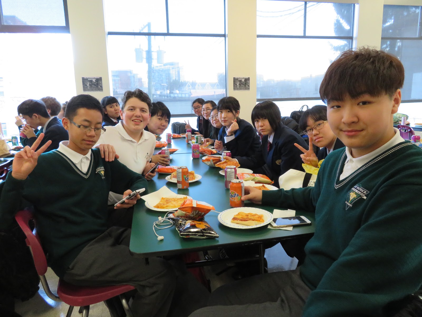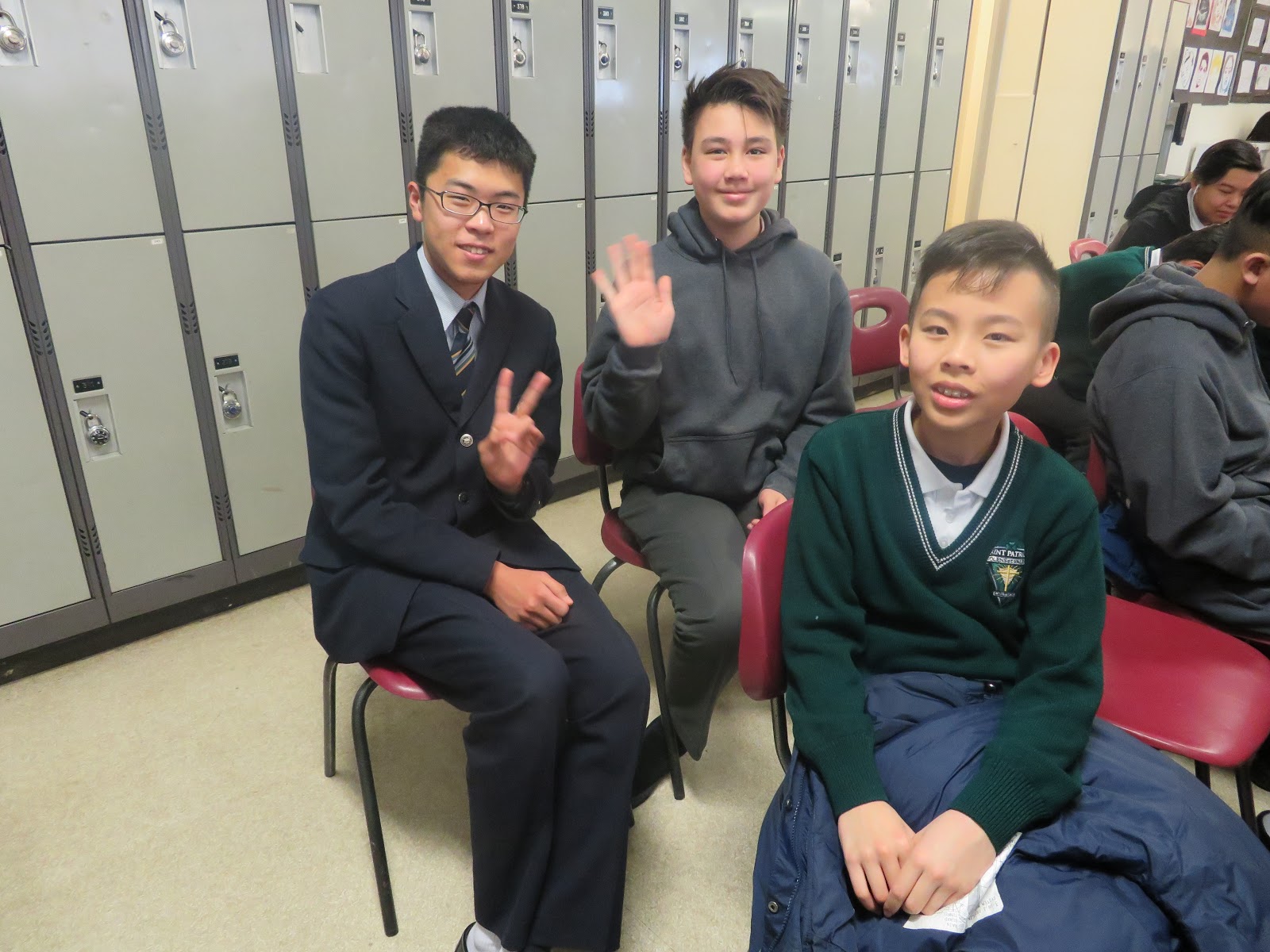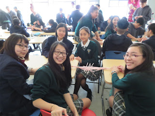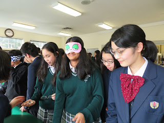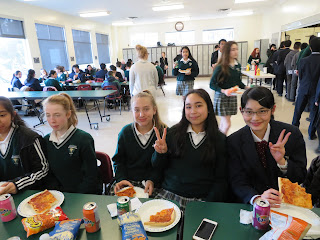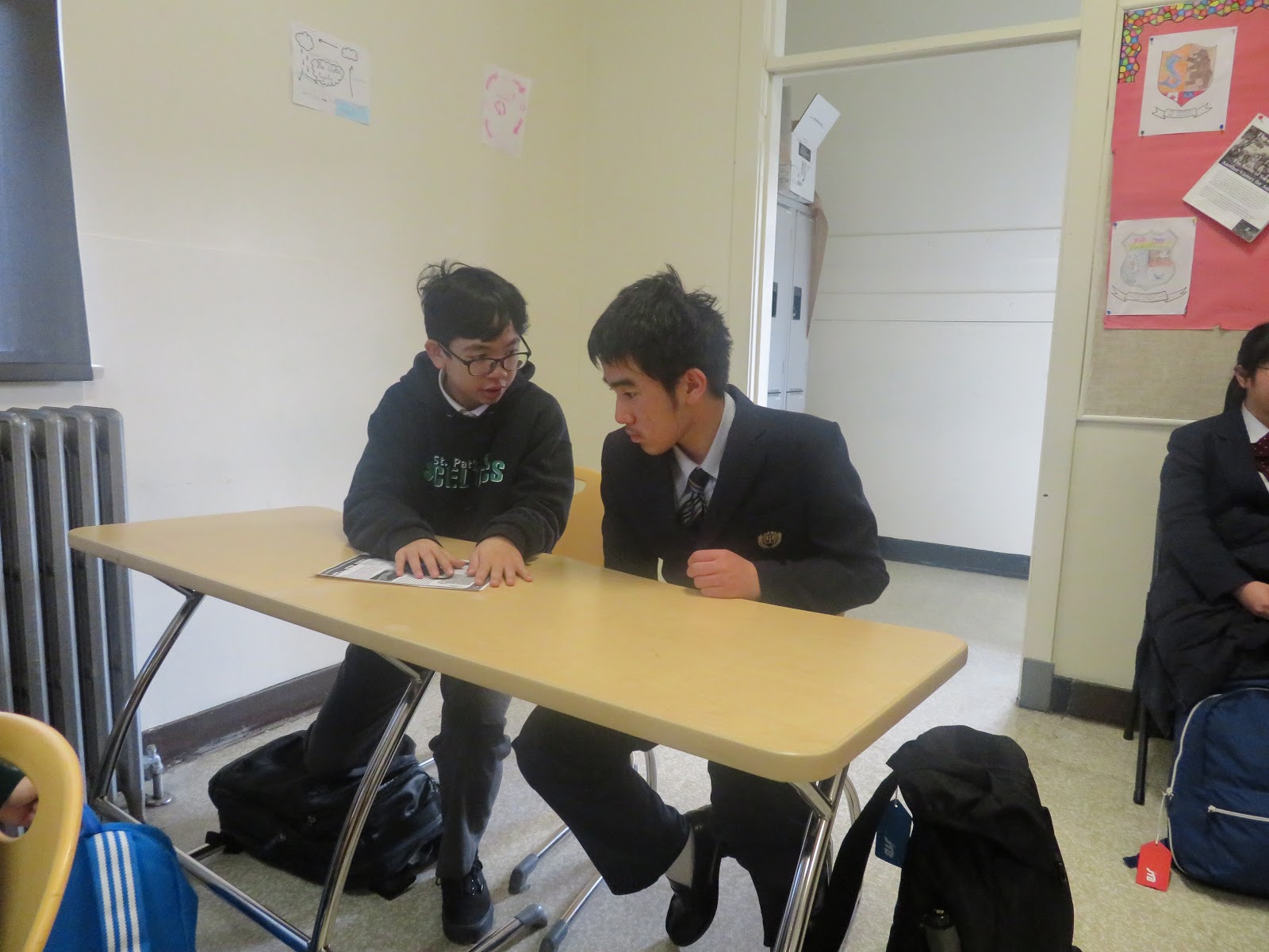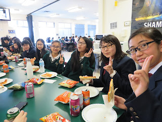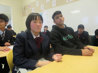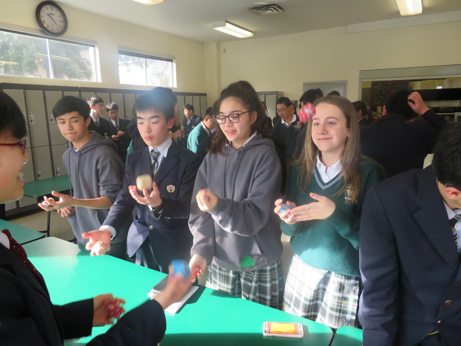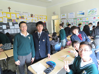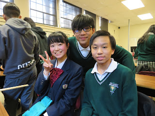 学校交流会では、はじめに「セント・パトリック・リージョナル・セカンダリー・スクール」の生徒より音楽の贈り物がありました。本校からも歌をはじめ、空手、お手玉、折り紙、福笑い、けん玉、そしてマジックをお礼に贈りました。その後、「体験授業」をバディと共に学習を行いました。その後、ランチタイムがあり仲良く食事をし、交流をさらに深めることができました。