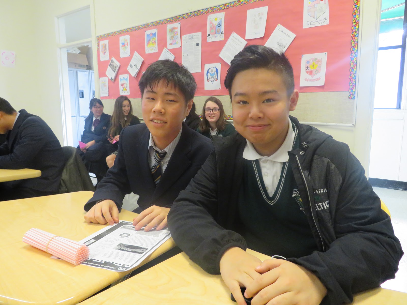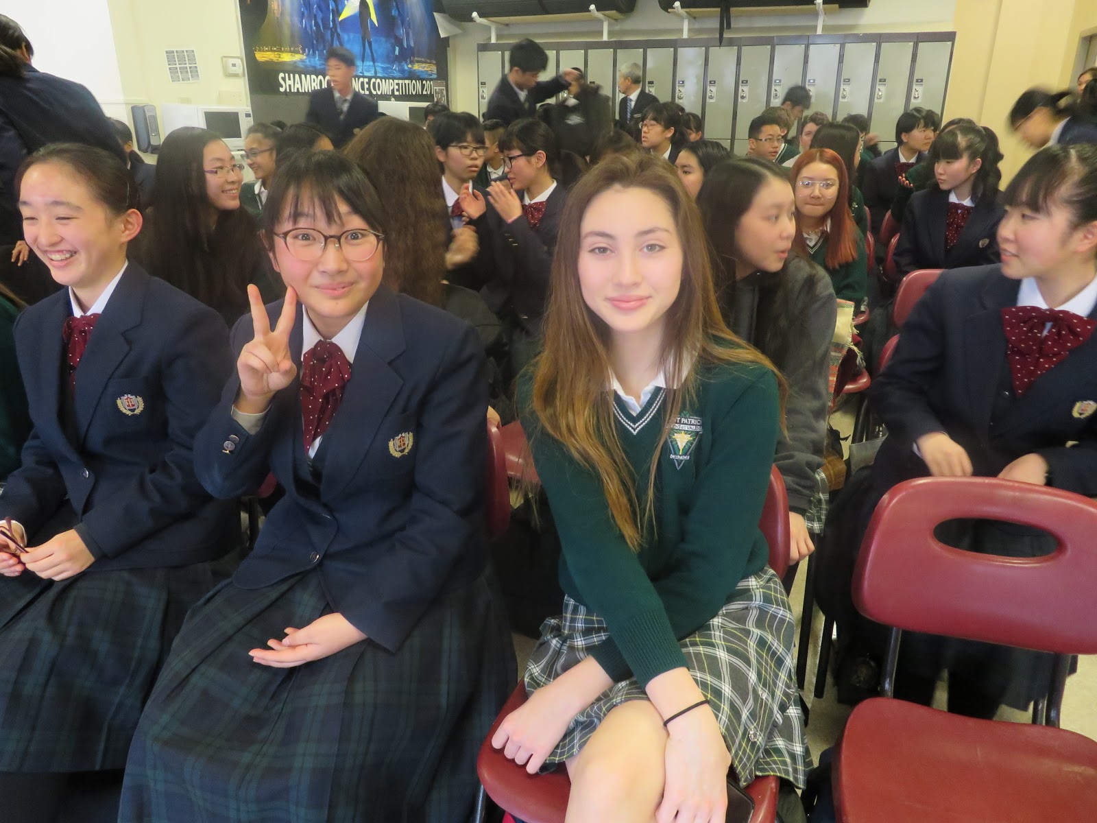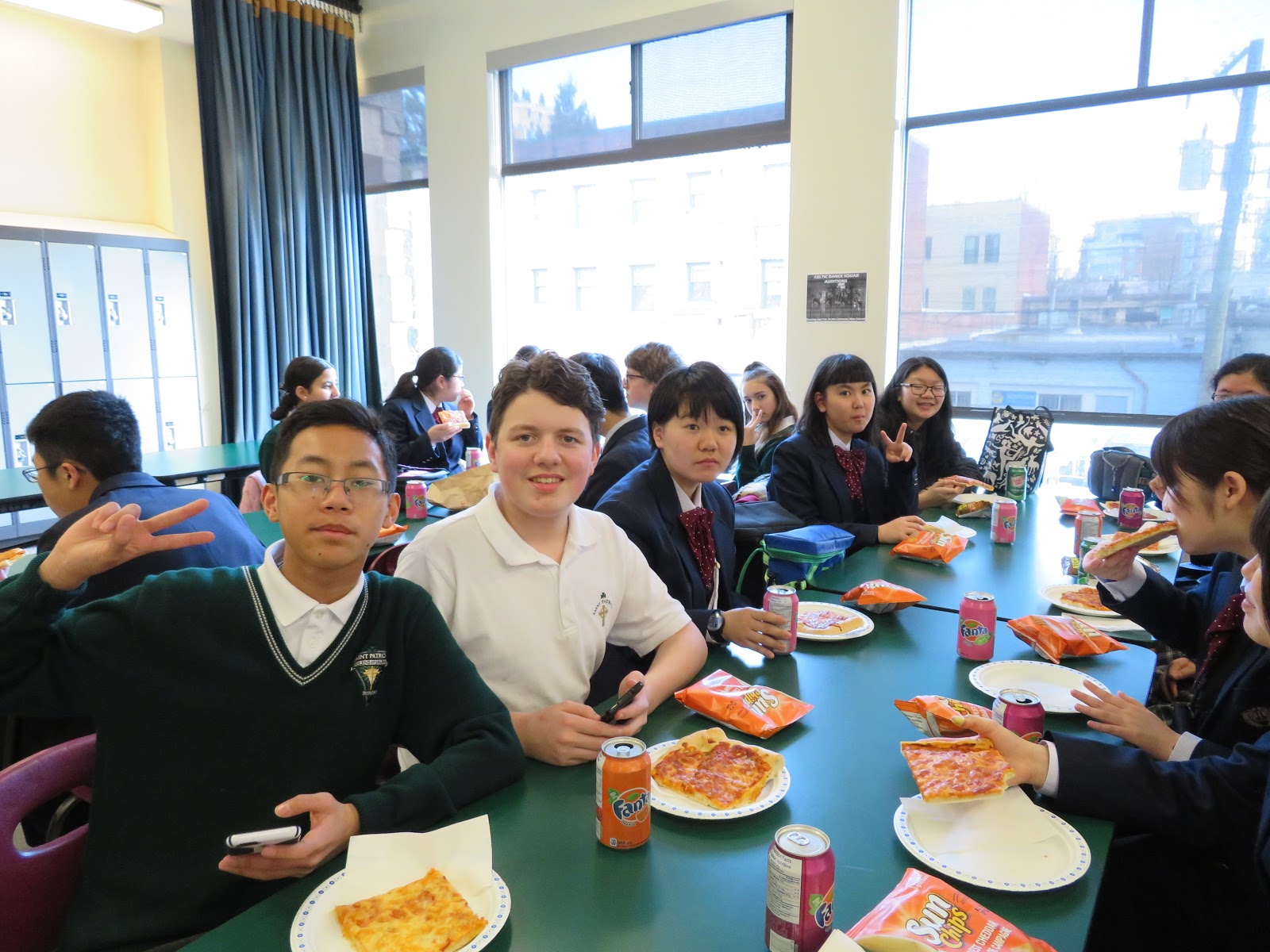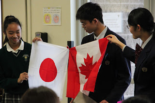 学校交流会では、はじめに「セント・パトリック・リージョナル・セカンダリー・スクール」の生徒より音楽の贈り物がありました。本校からも歌をはじめ、空手、お手玉、折り紙、福笑い、けん玉、そしてマジックをお礼に贈りました。その後、「体験授業」をバディと共に学習を行いました。その後、ランチタイムがあり仲良く食事をし、交流をさらに深めることができました。