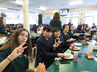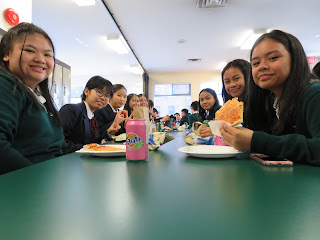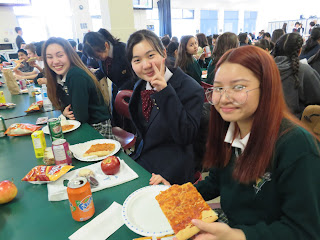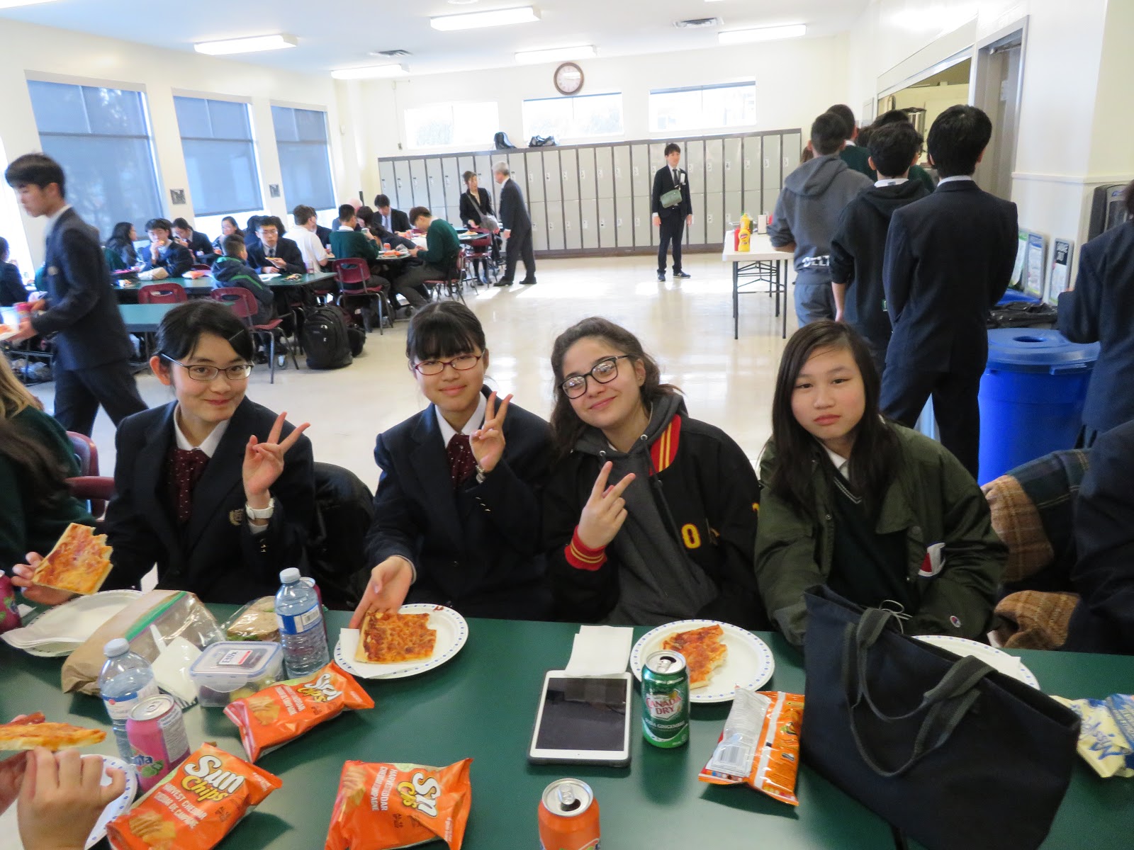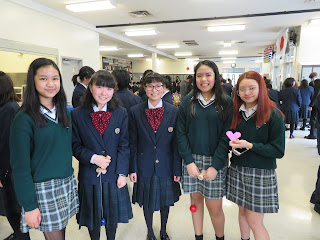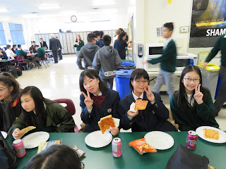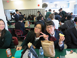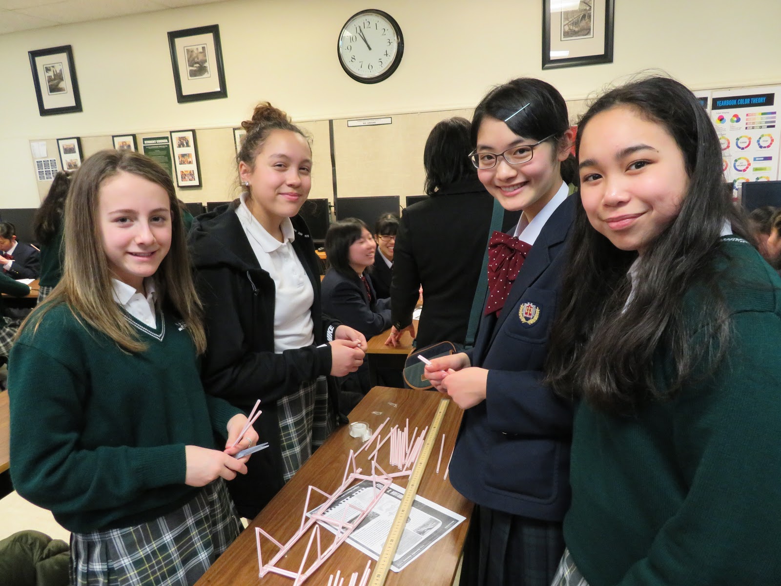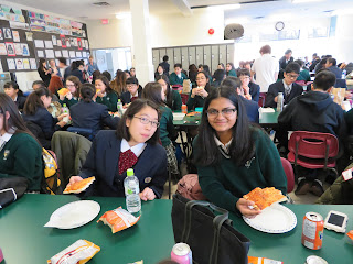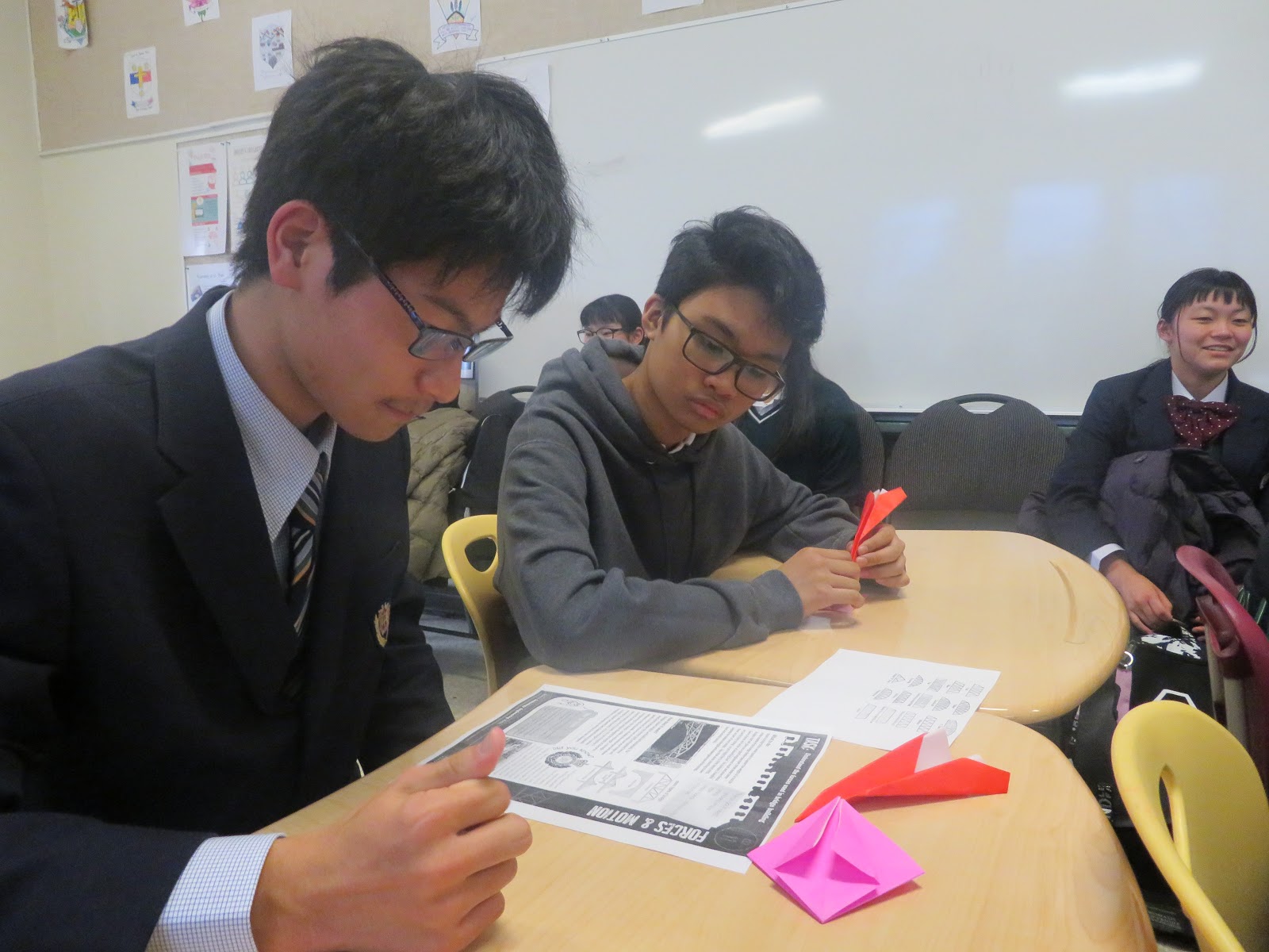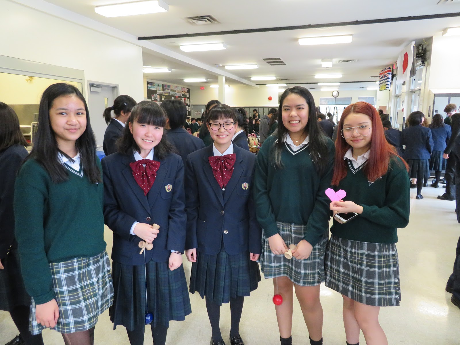 学校交流会では、はじめに「セント・パトリック・リージョナル・セカンダリー・スクール」の生徒より音楽の贈り物がありました。本校からも歌をはじめ、空手、お手玉、折り紙、福笑い、けん玉、そしてマジックをお礼に贈りました。その後、「体験授業」をバディと共に学習を行いました。その後、ランチタイムがあり仲良く食事をし、交流をさらに深めることができました。
