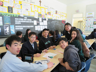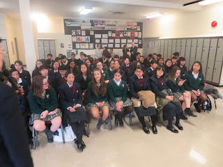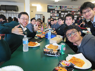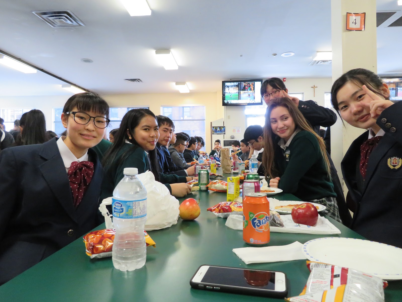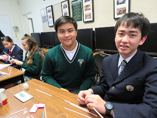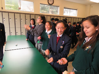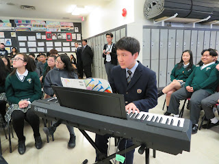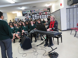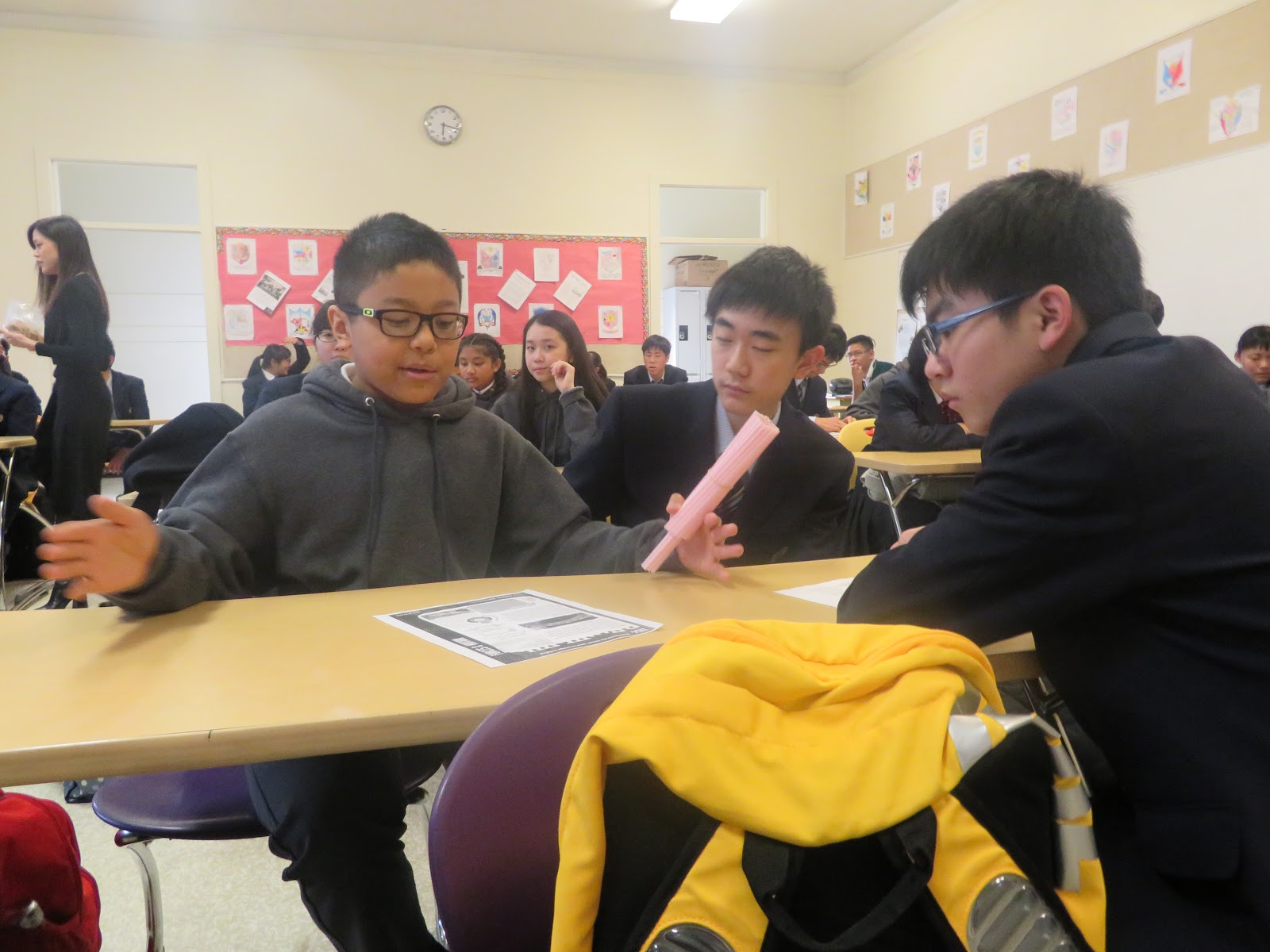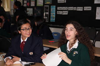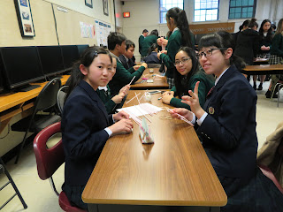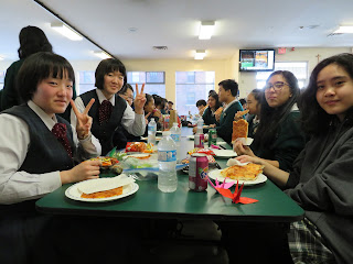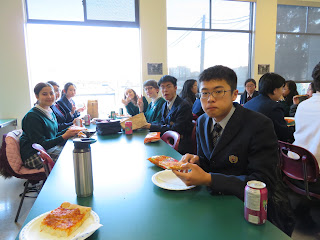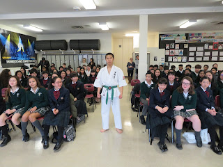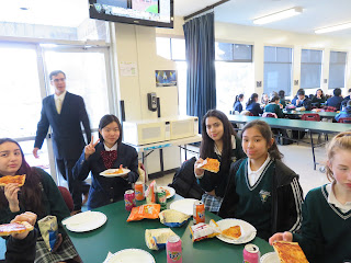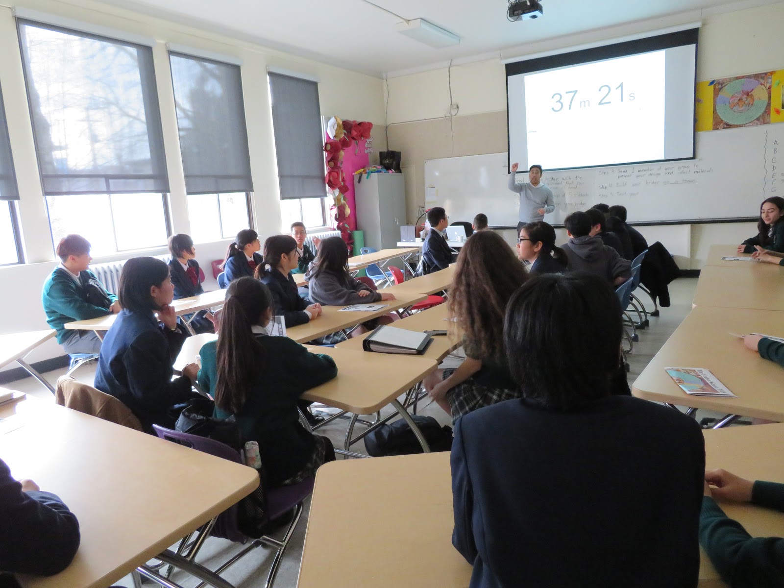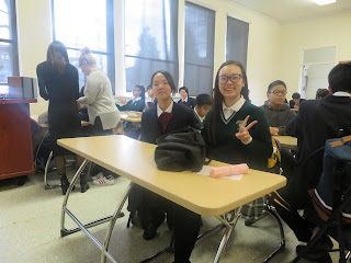 学校交流会では、はじめに「セント・パトリック・リージョナル・セカンダリー・スクール」の生徒より音楽の贈り物がありました。本校からも歌をはじめ、空手、お手玉、折り紙、福笑い、けん玉、そしてマジックをお礼に贈りました。その後、「体験授業」をバディと共に学習を行いました。その後、ランチタイムがあり仲良く食事をし、交流をさらに深めることができました。