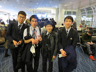 J3生は一人ひとり出国手続きを無事に済ませました。搭乗ゲート(NO109)でトイレ休憩、水分補給、手荷物整理などをしながら時間を調整し、カナダ・バンクーバーに21:45発(日本時刻)のNH116便でこれから向かいます。