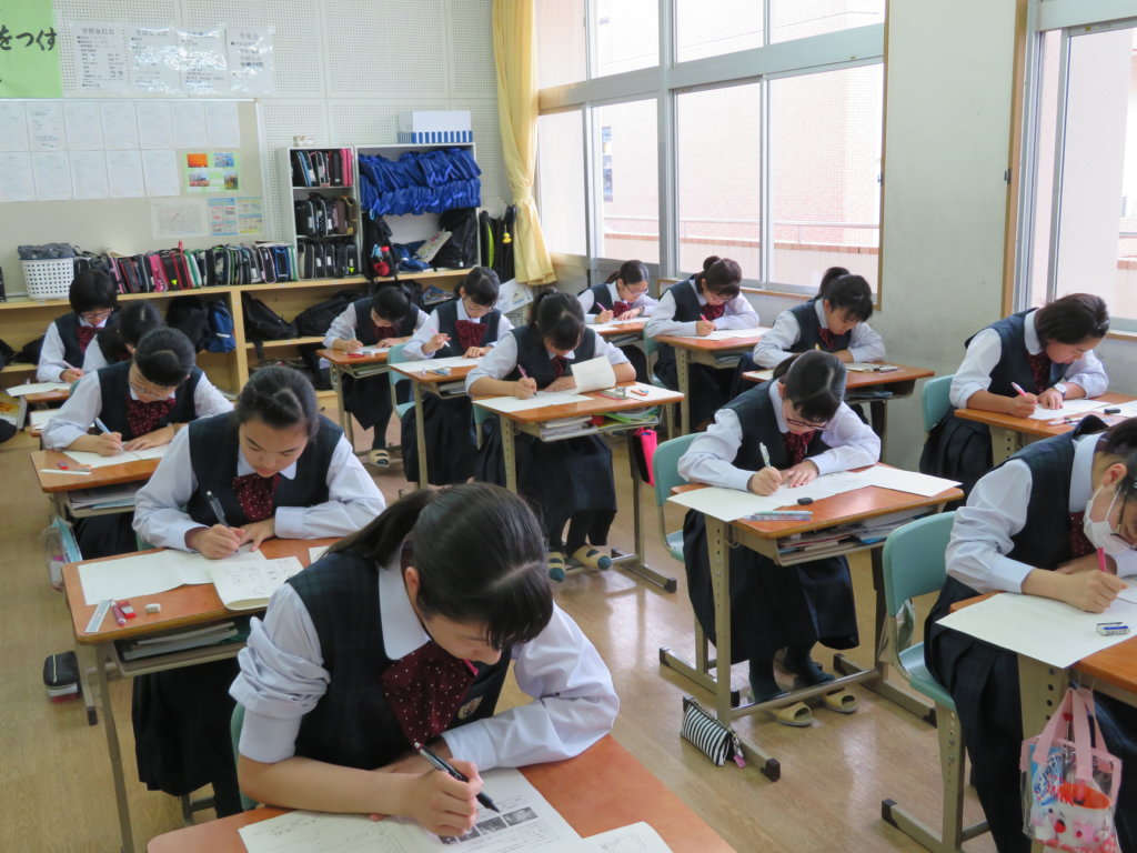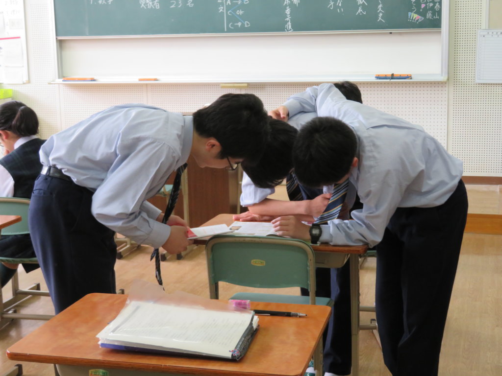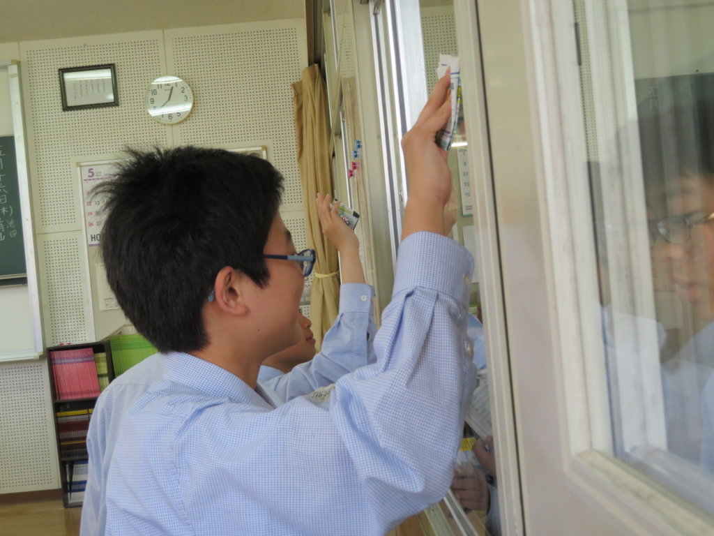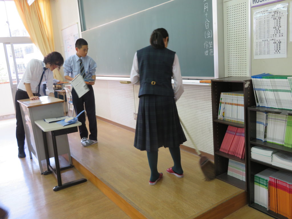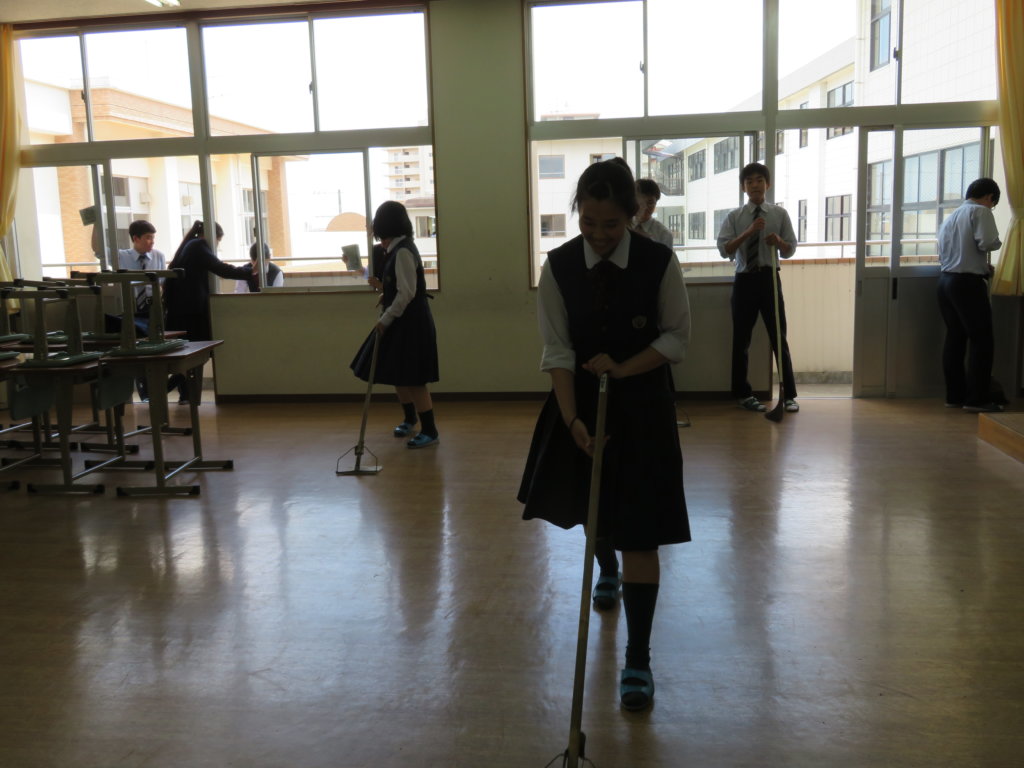 今日は第1回定期考査の2日目でした。教科は、社会・理科・数学です。どの教科も実力が発揮できたでしょうか。結果が楽しみですね! 休み時間も友だちと確認をしたり、最終確認をしたりする様子も見られました! テスト終了後は清掃もしっかりと頑張りました!