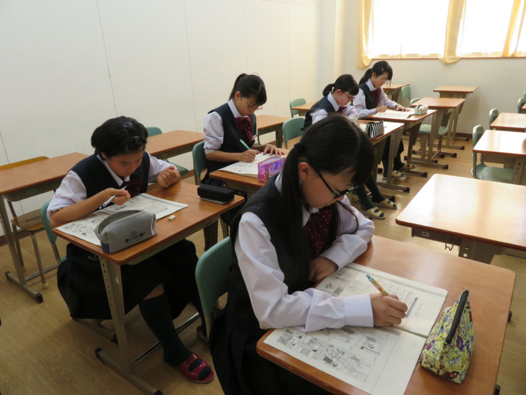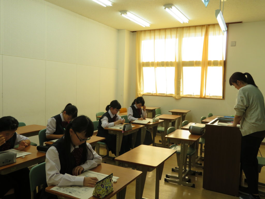 現在、放課後の時間を利用し、対策講座が行われています。それぞれの級に分かれ、リスニングの練習などを行っています。