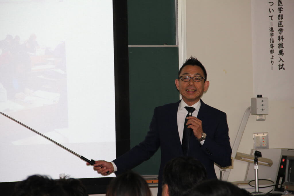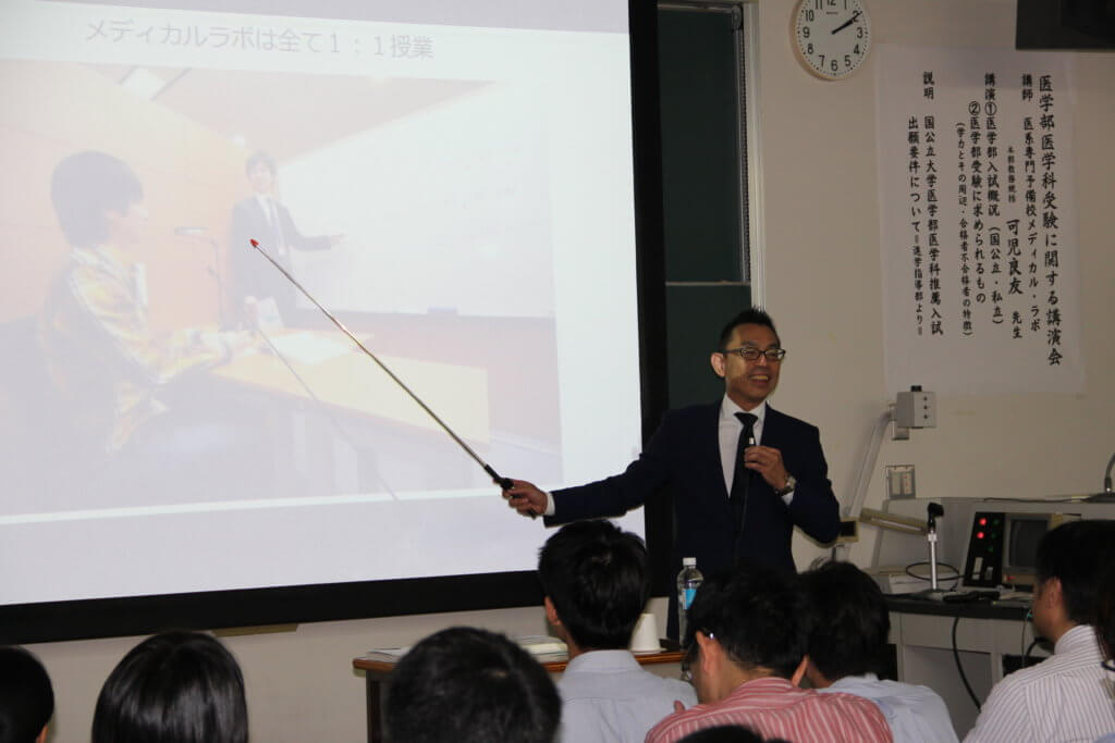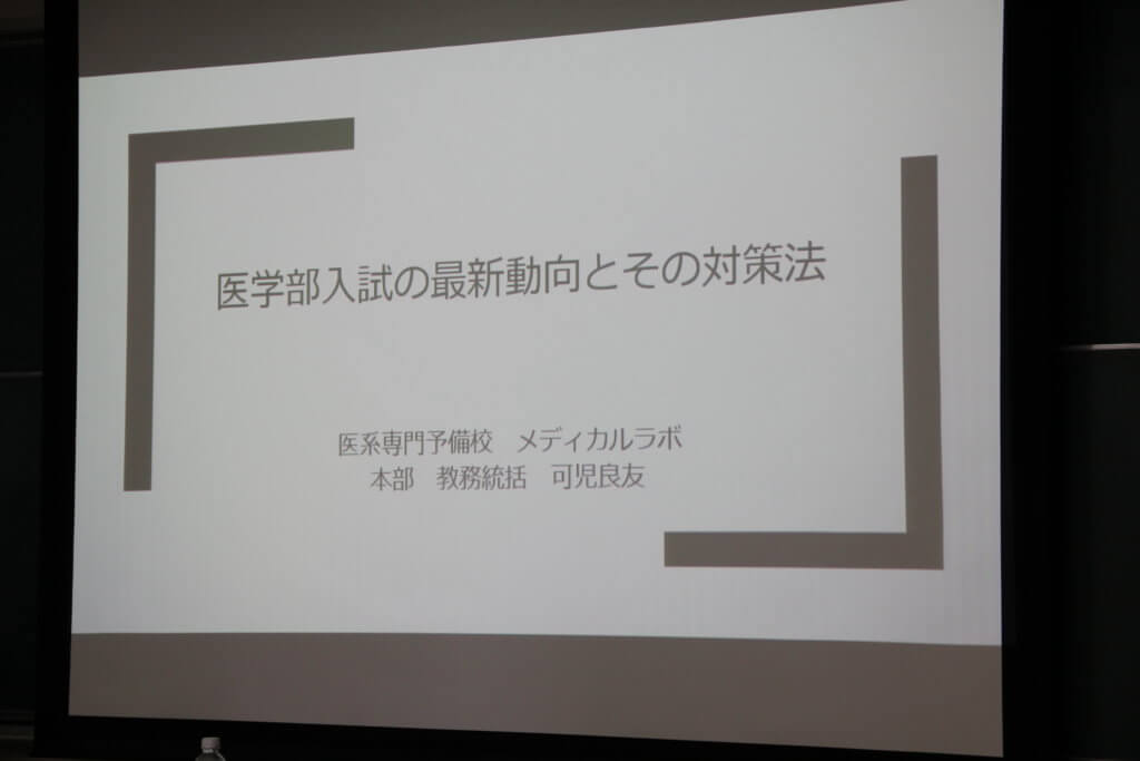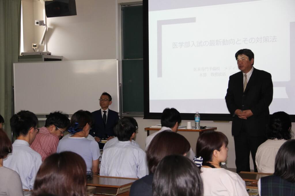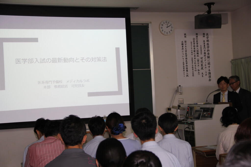 先日、医系専門予備校メディカルラボ本部教務統括の可児良友様をお招きし、「医学部入試の最新動向とその対策法」という演題でご講話していただく場を設定しました。