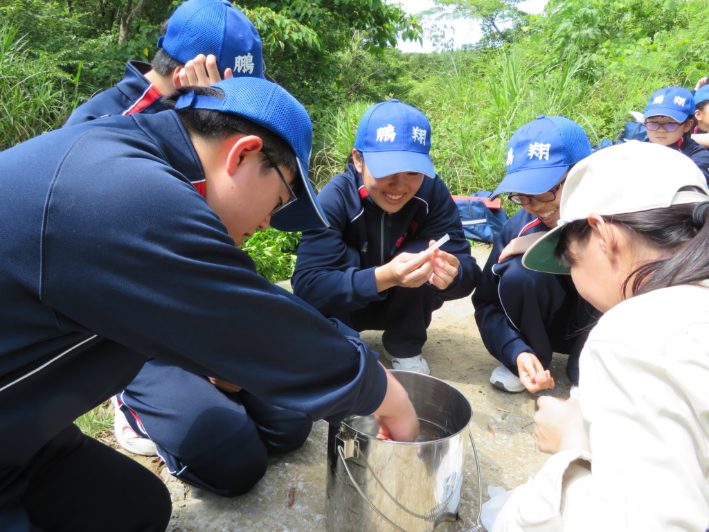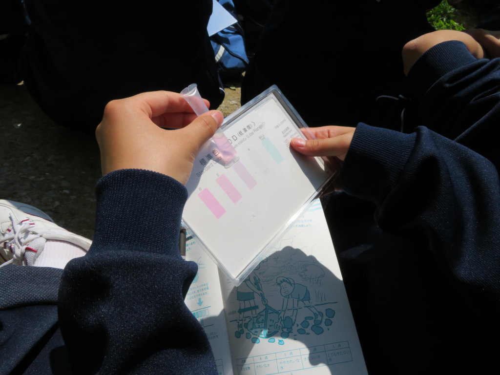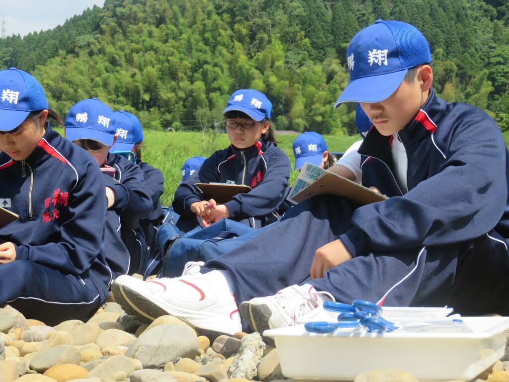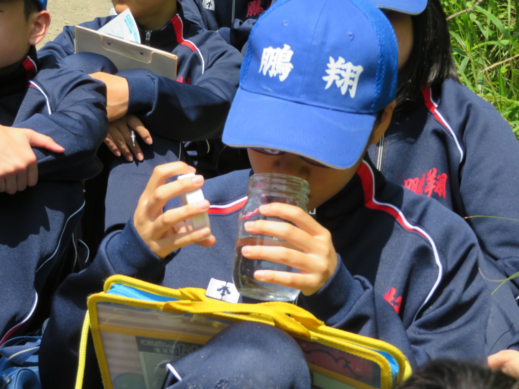 鵬翔中学校では、毎年、大淀川河川流域3地点に分かれて水質調査を行っています。