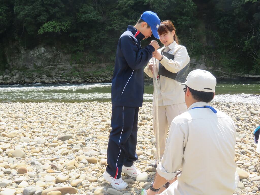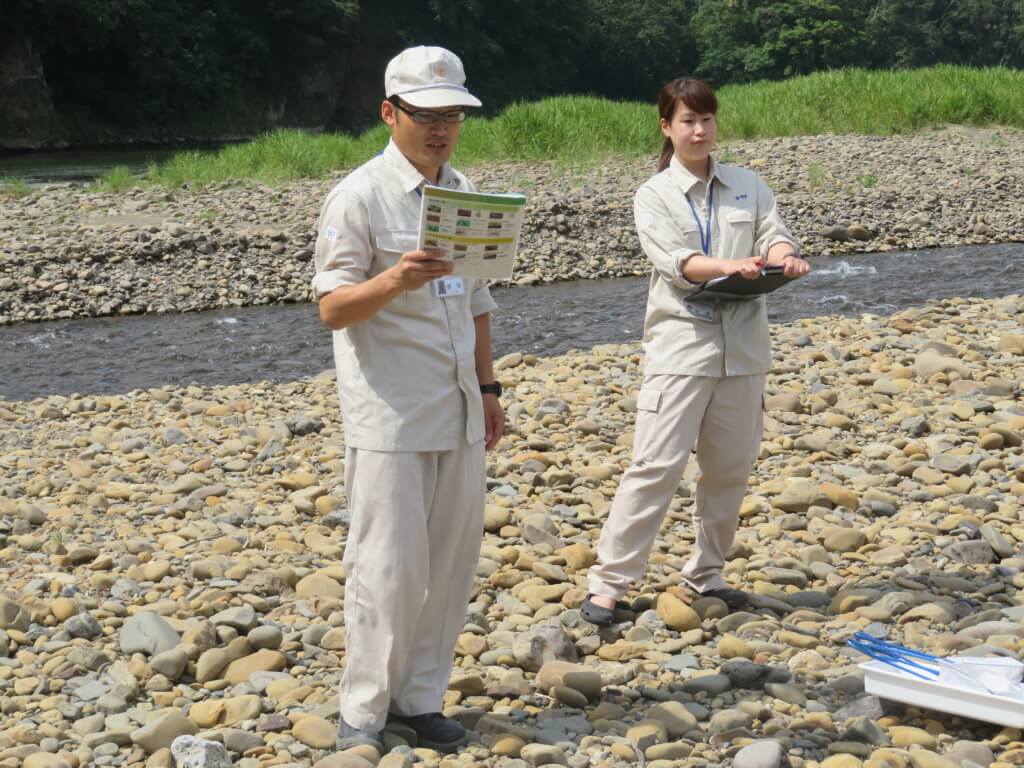 上流 浦之名川(川口橋付近) 職員:野間比呂志さん、渡邉愛里さん