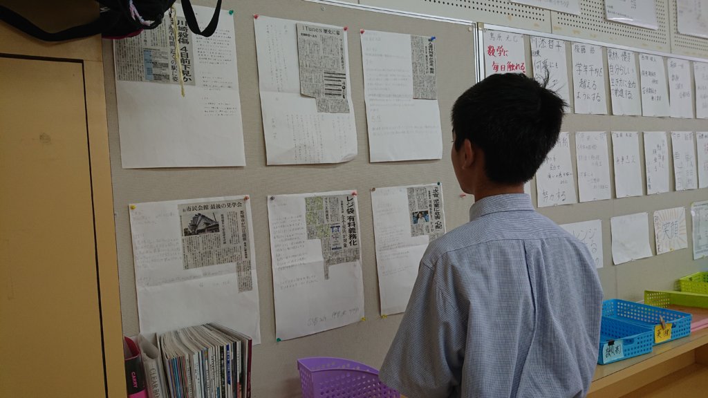 各クラス、それぞれの新聞をまとめ、掲示を行っています。