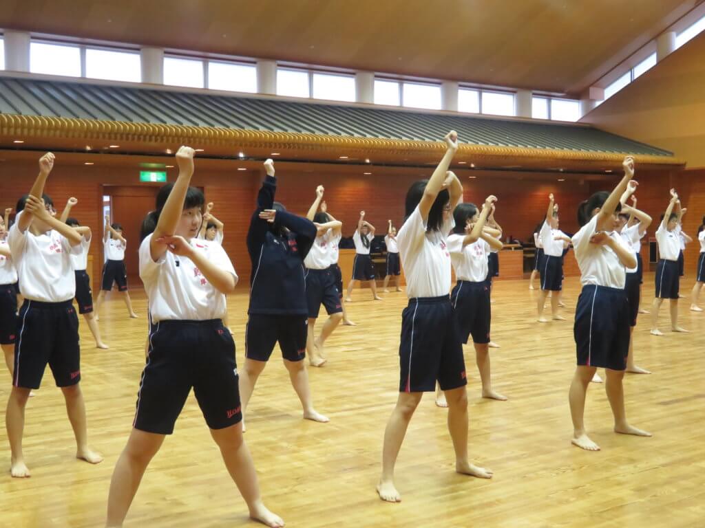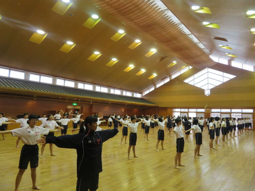 ラジオ体操やよさこいソーランの確認をしたり、自分の位置の確認をしたりしました。
