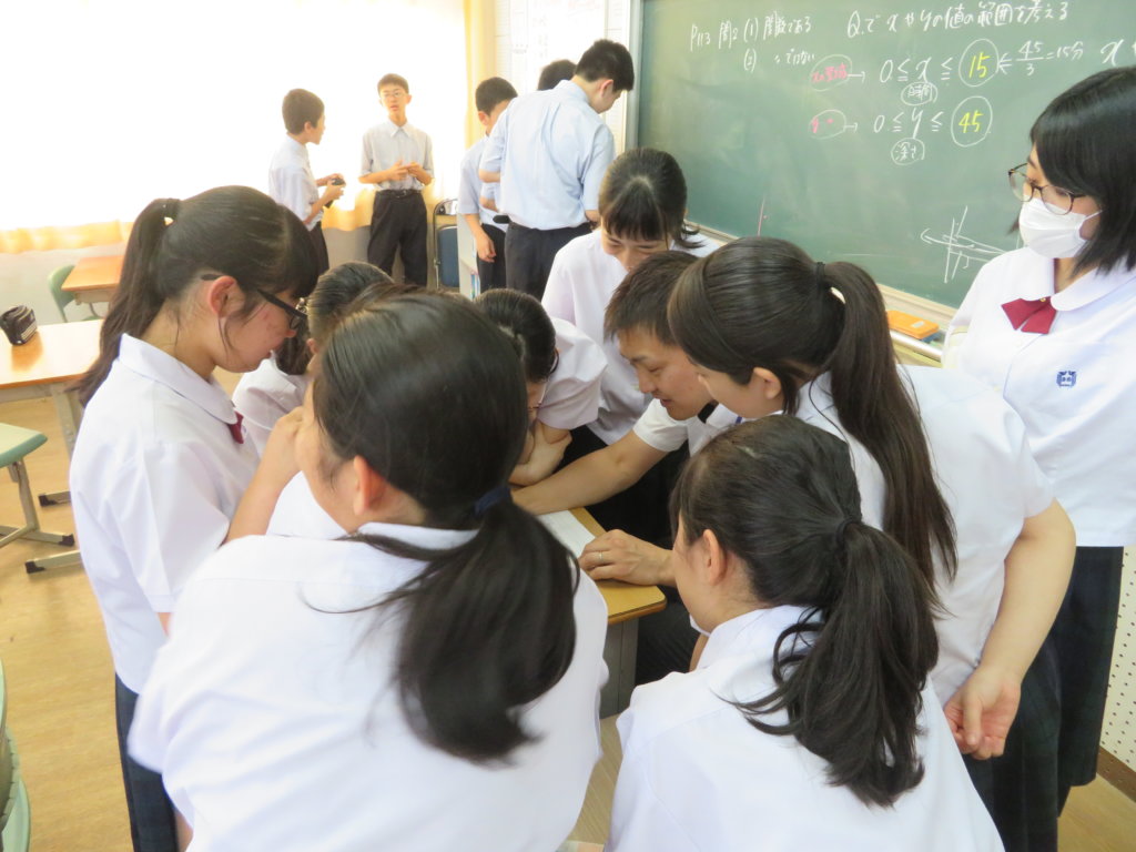 休み時間は教室で先生に質問をしたり、友達と話をする様子がよく見られます。