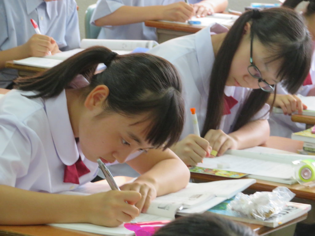 毎日、その日の授業で行ったことの確認や、夏休みの課題をする姿が見られます。