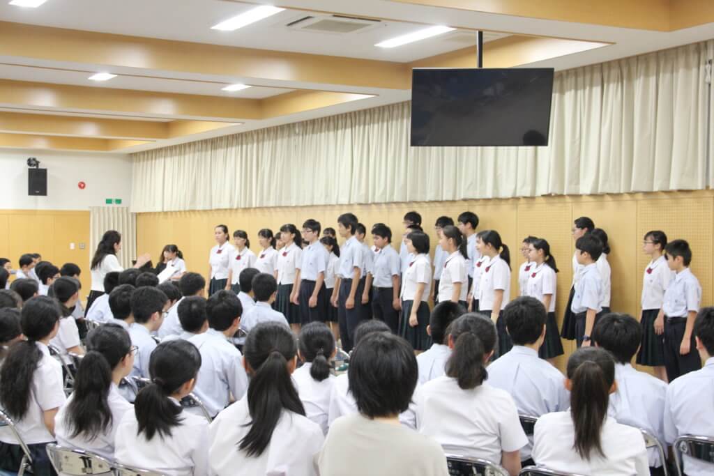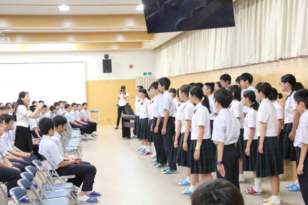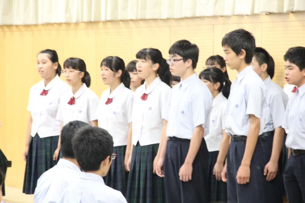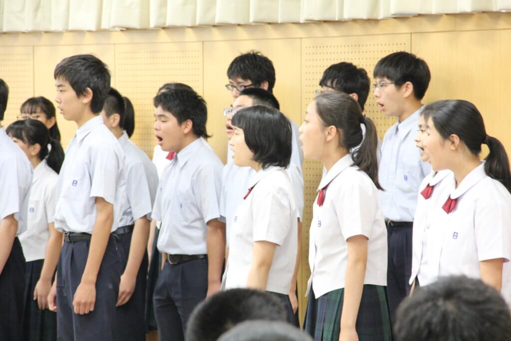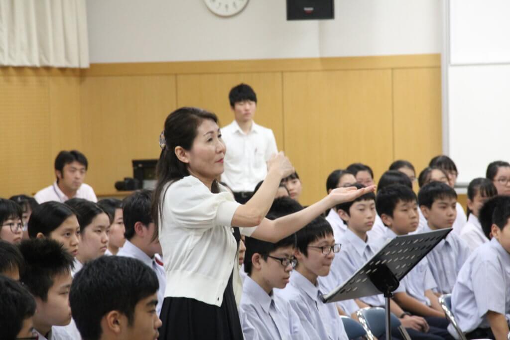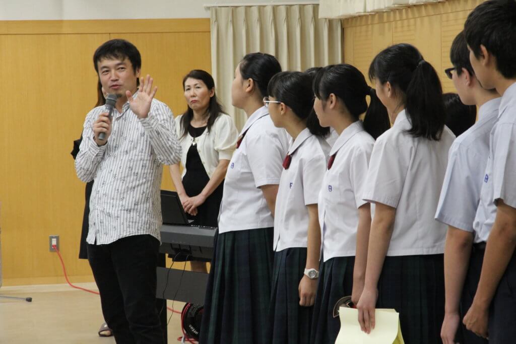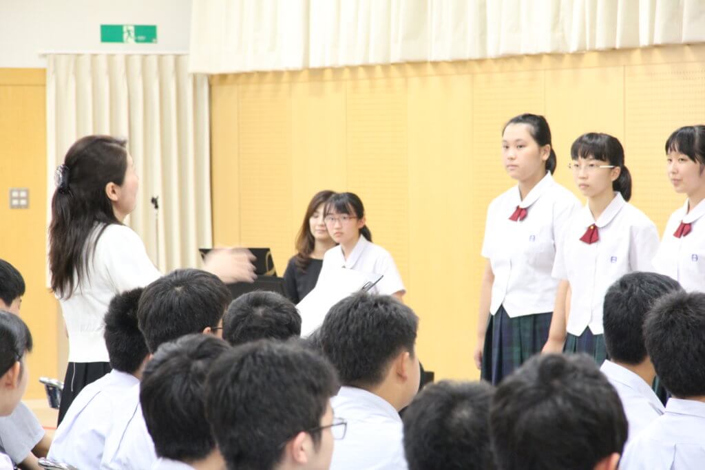 また、先日のNHK合唱コンクールで銅賞を受賞した合唱部が、その歌を披露してくれました。今回の課題曲の編集も加藤さんがされています。合唱部のメンバーから質問も丁寧に答えてくださいました。