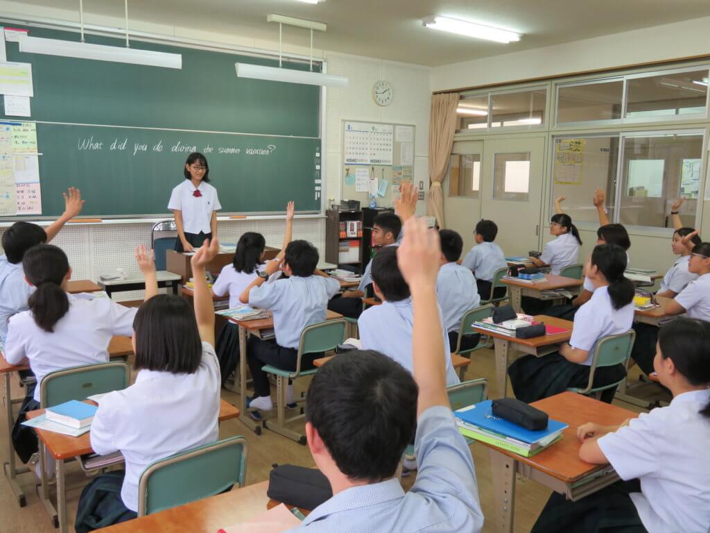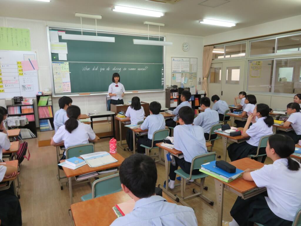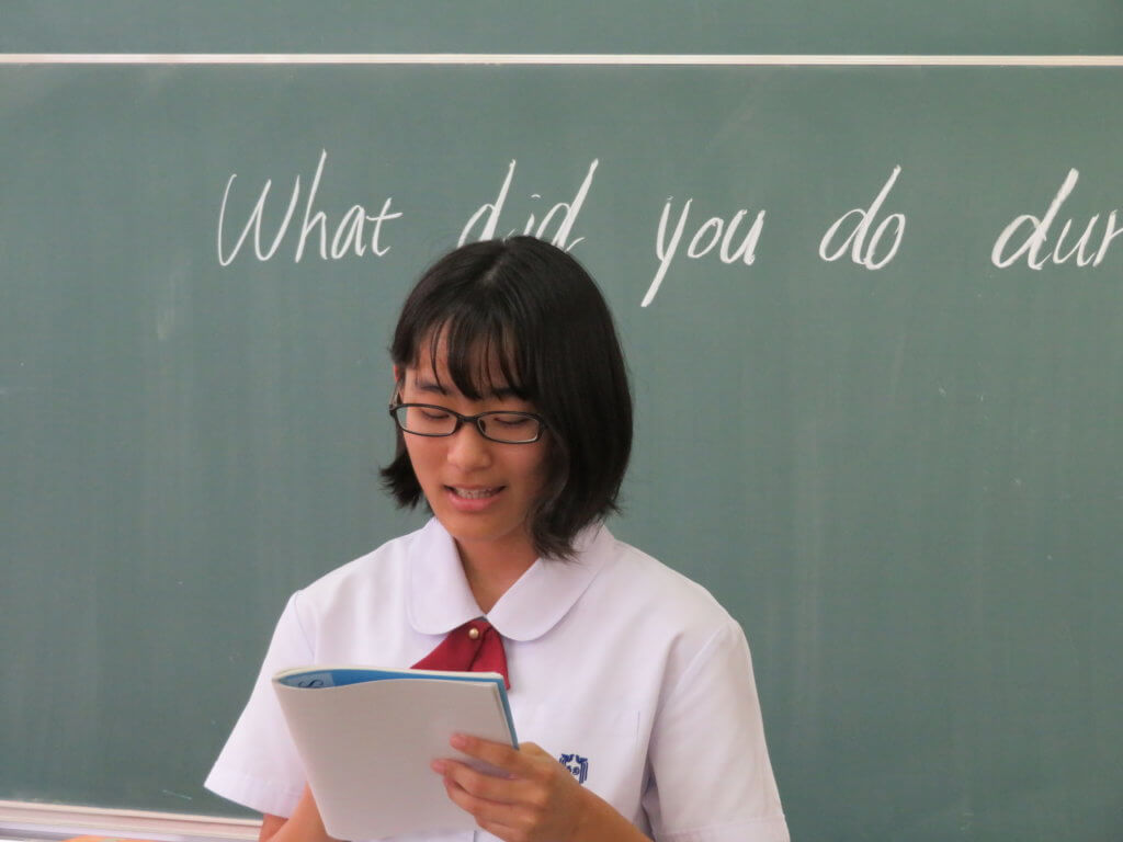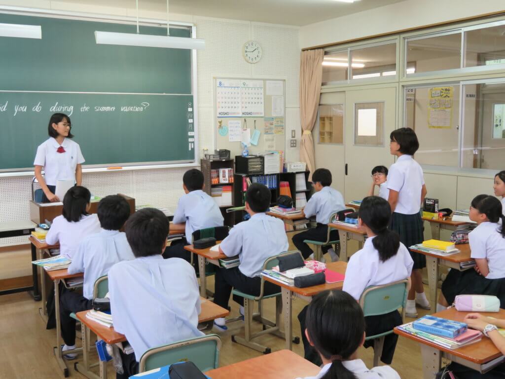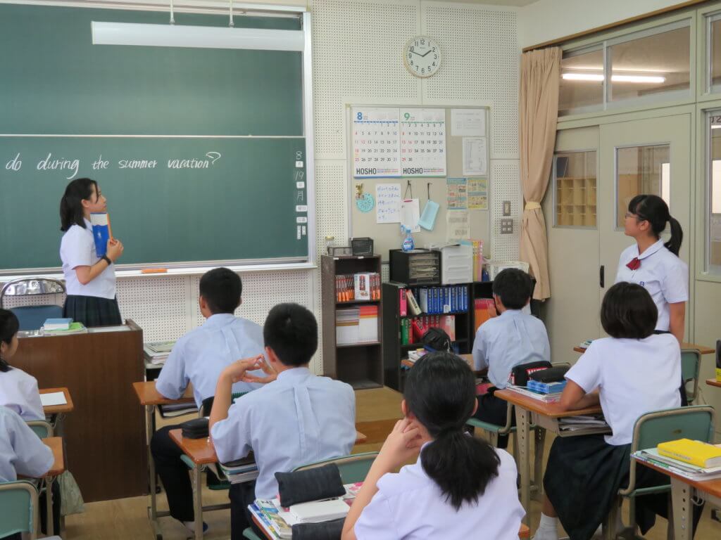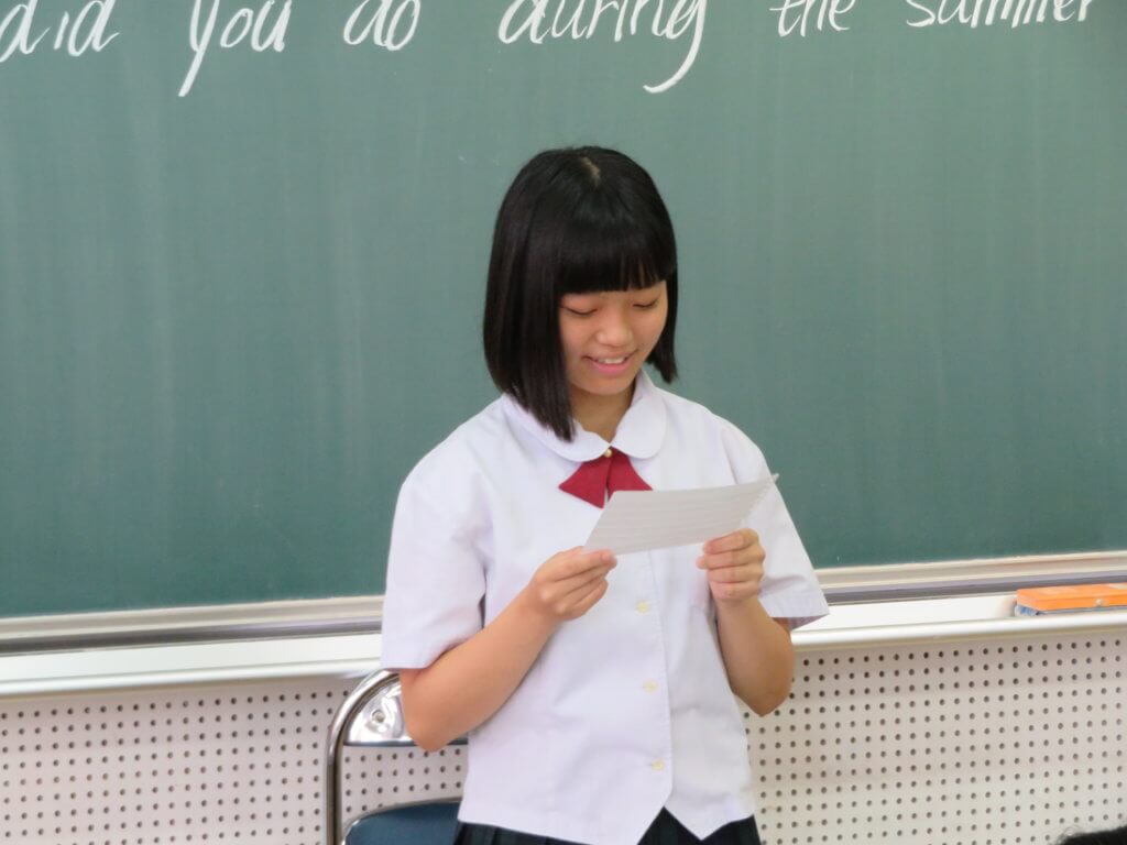 学校の授業では、英語の時間に夏休みの思い出を1分間スピーチをしました。