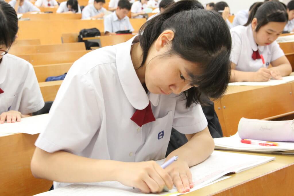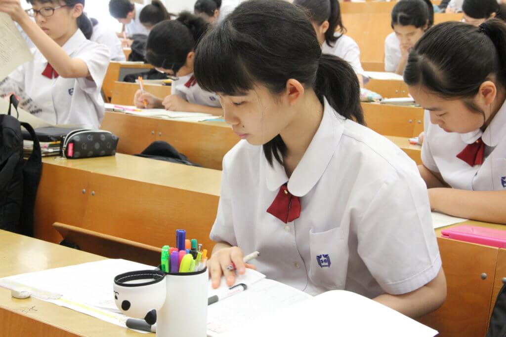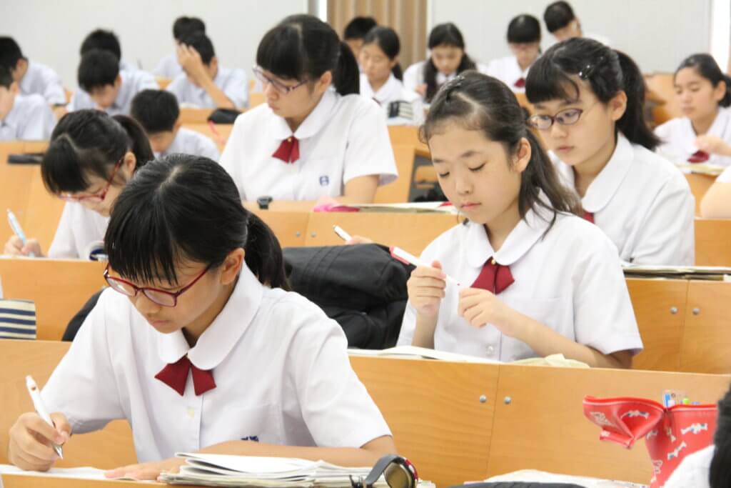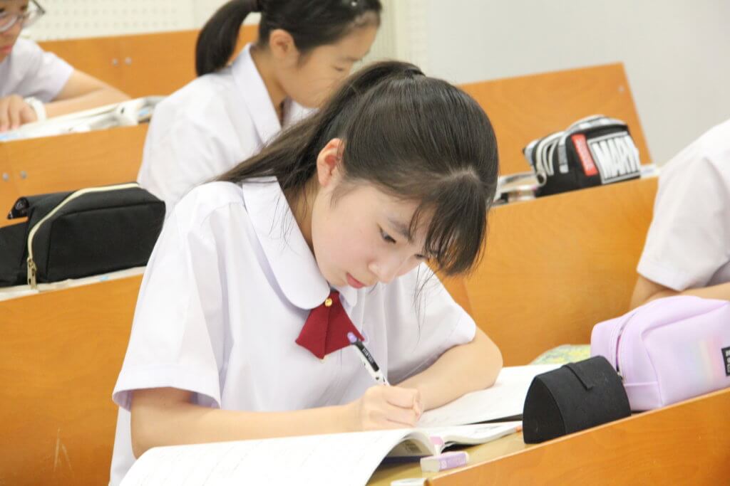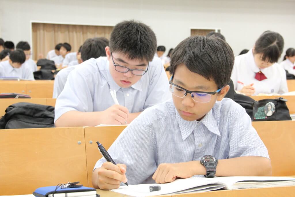 中学校は、一部屋に全員が入室し、学習を行いますが、質問する機会や、個別学習の場も別途展開されているので、この3日間は毎年有意義な時間となっています。座席にも一工夫があり、教室の前方はJ3生のスペースで、その後ろからJ2、J1と続きます。先輩が姿勢で示し、後輩たちが刺激を受け、取り組める形です。